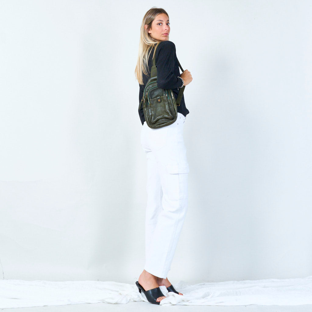 Kompakte Leder -Crossbody -Tasche mit mehreren Taschen Großhandel