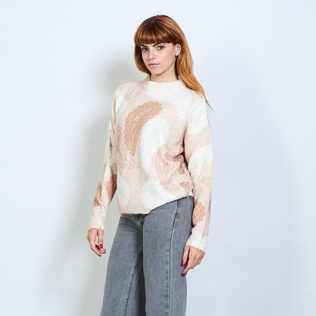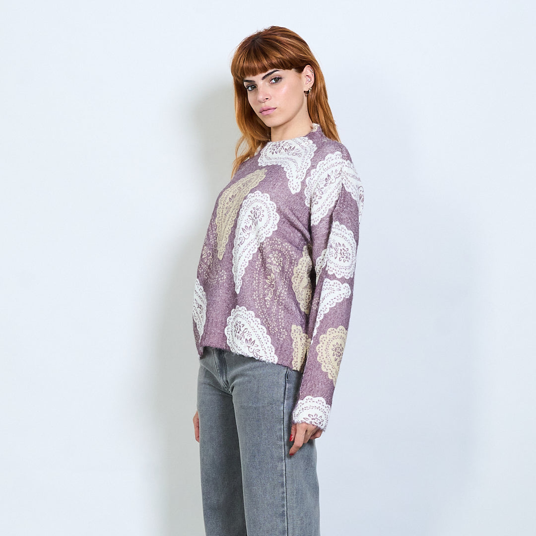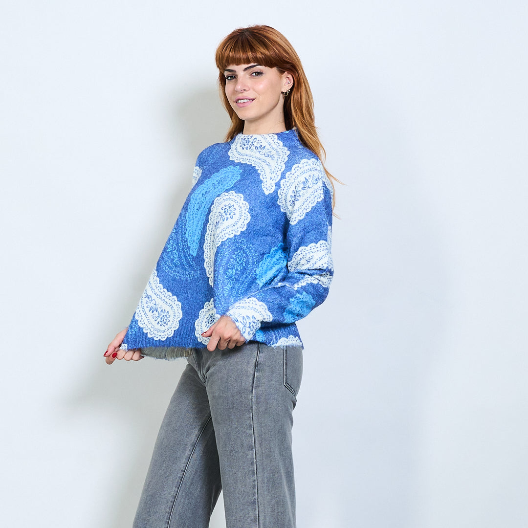 - Eleganter Pullover mit funkelnden Kristallstollen geschmückt