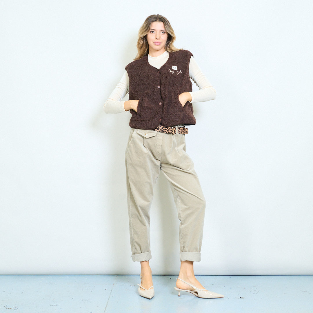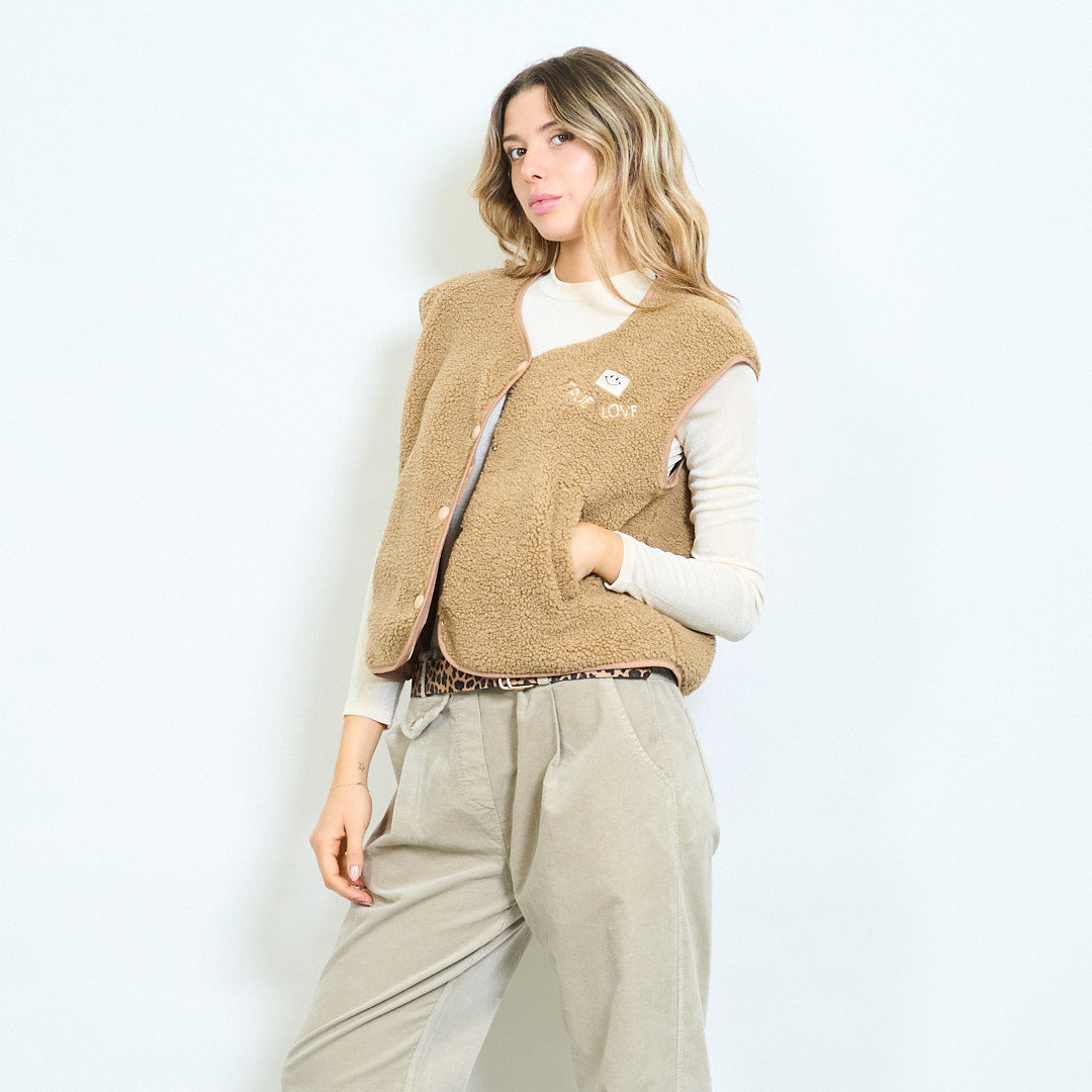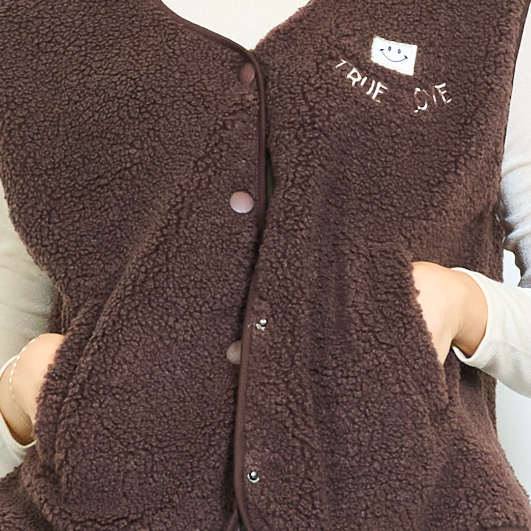 True Love-Stickerei-Fleece-Knopfweste mit Lächeln-Motiv im Großhandel