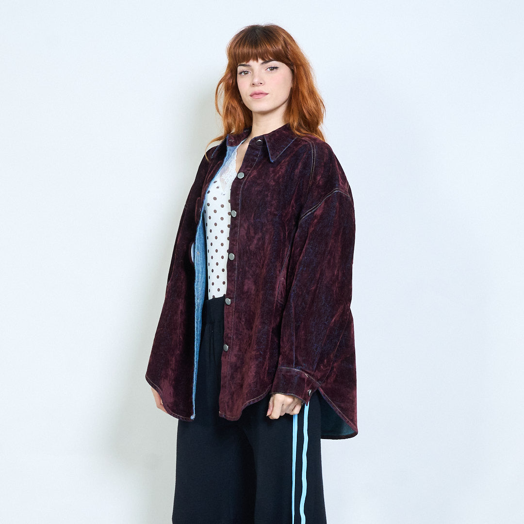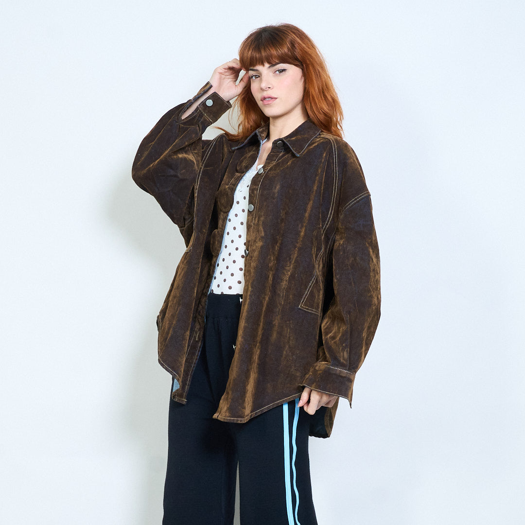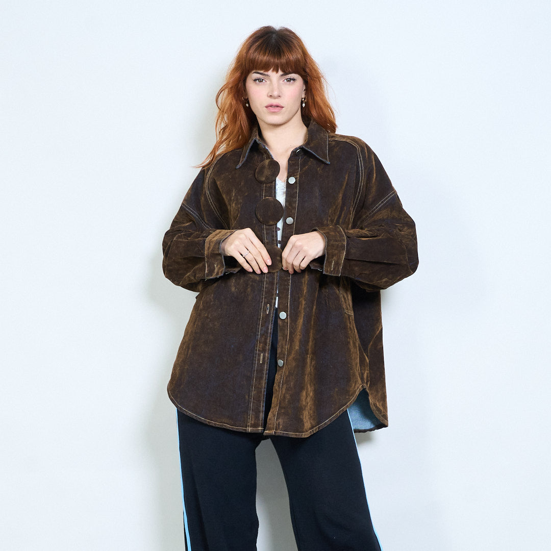 Übergroße Hemdjacke aus strukturiertem Wildleder mit Knopfdetail im Großhandel