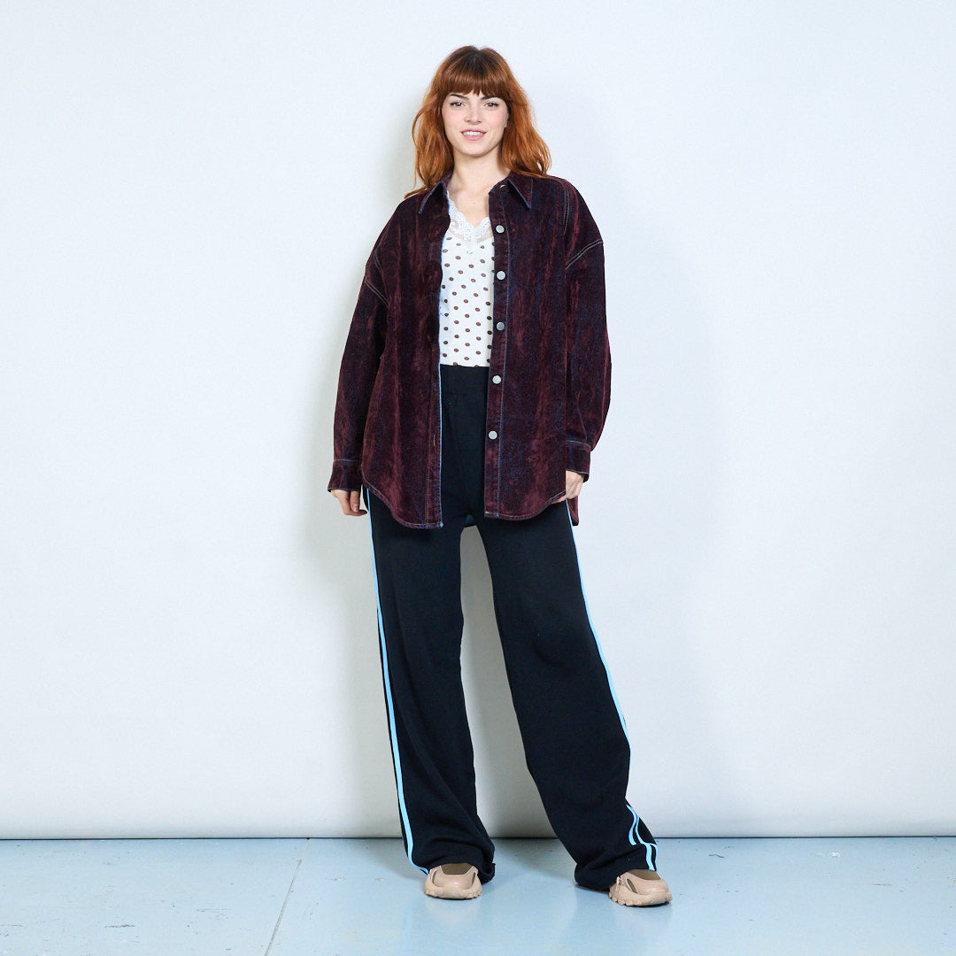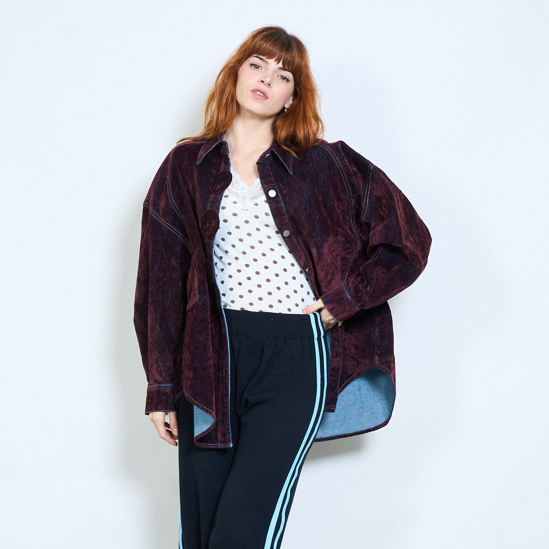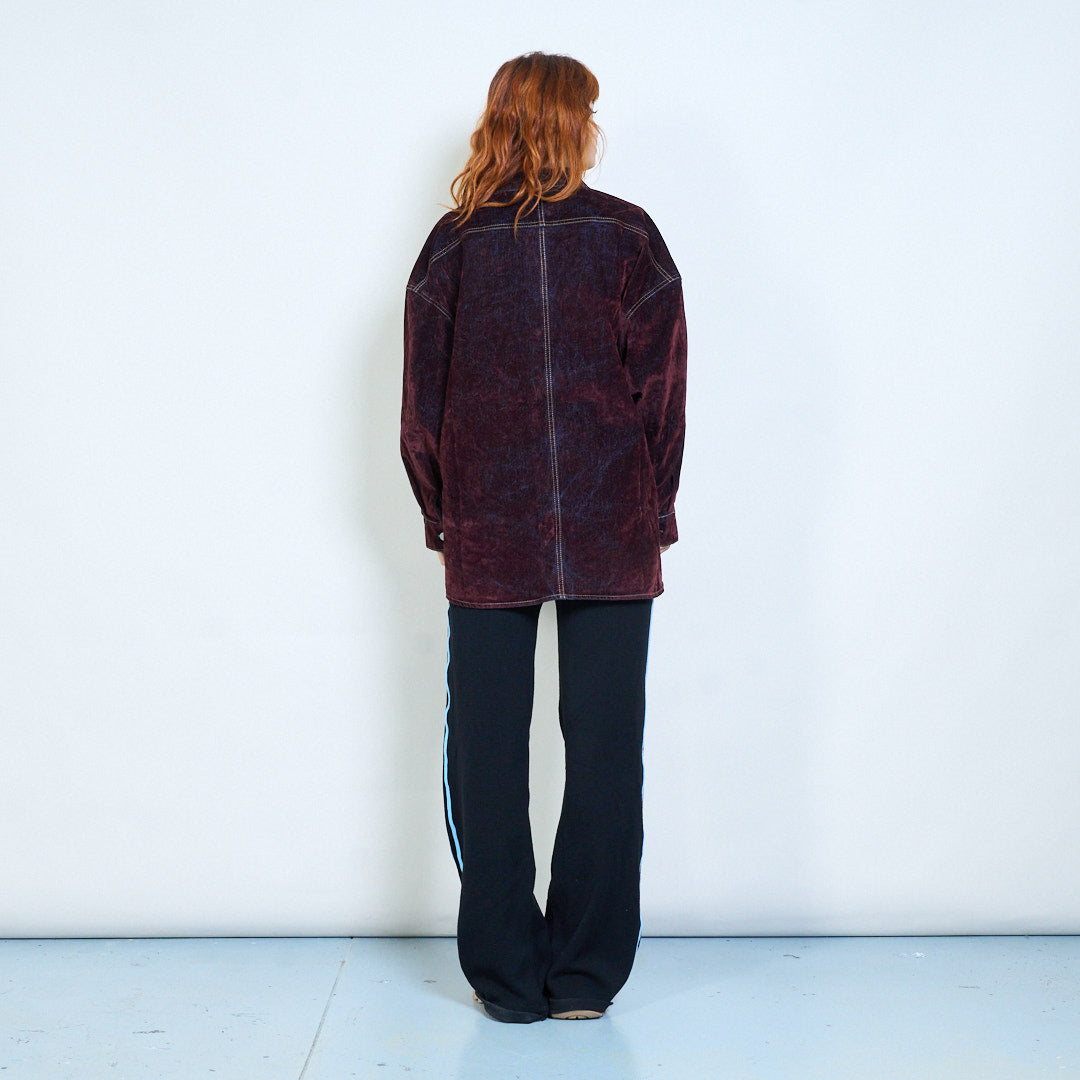 Übergroße Hemdjacke aus strukturiertem Wildleder mit Knopfdetail im Großhandel