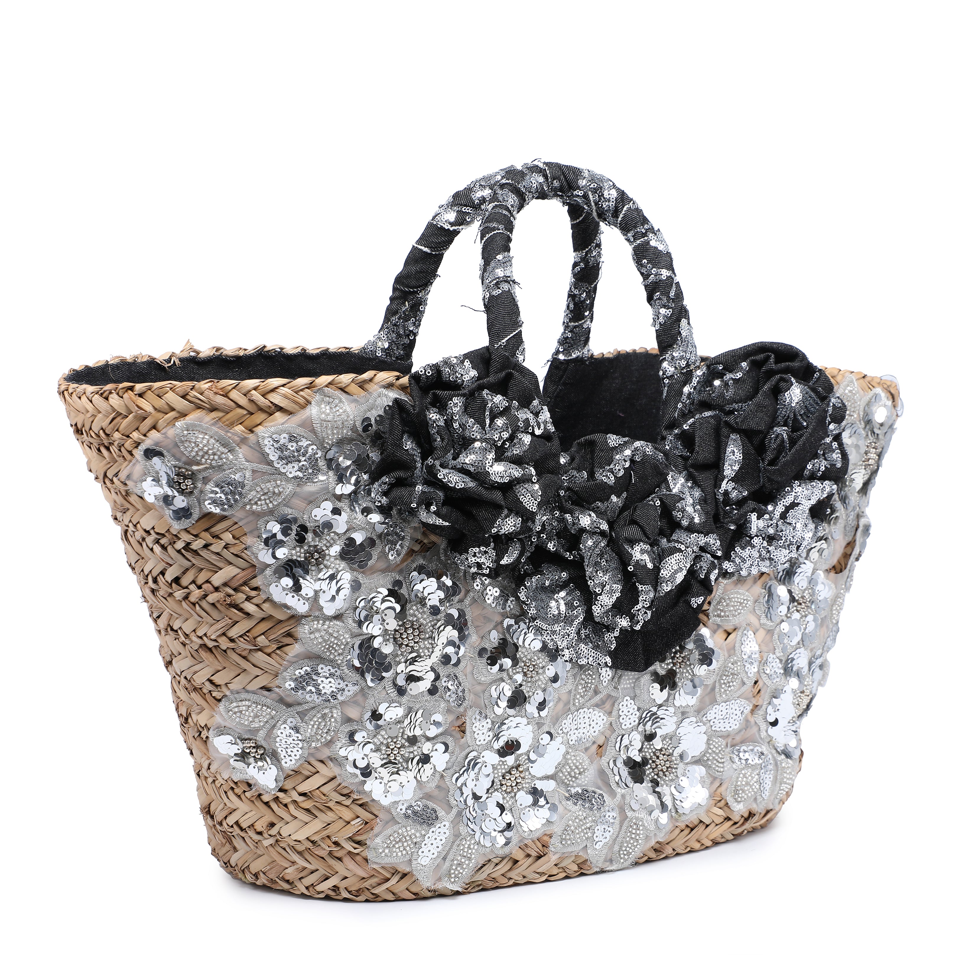 Mini Raffia -Korbbag mit Stoffblumen ...