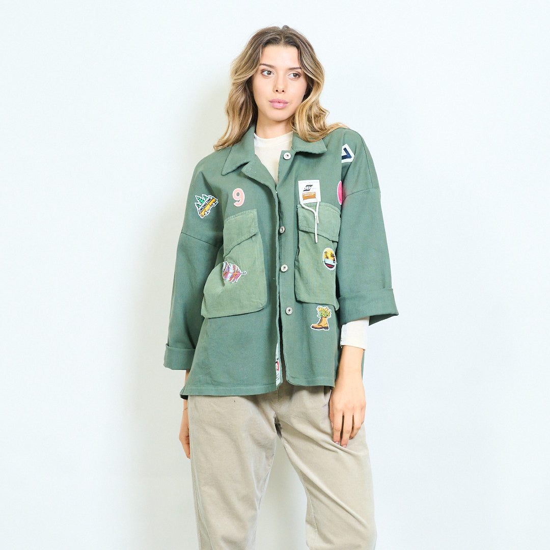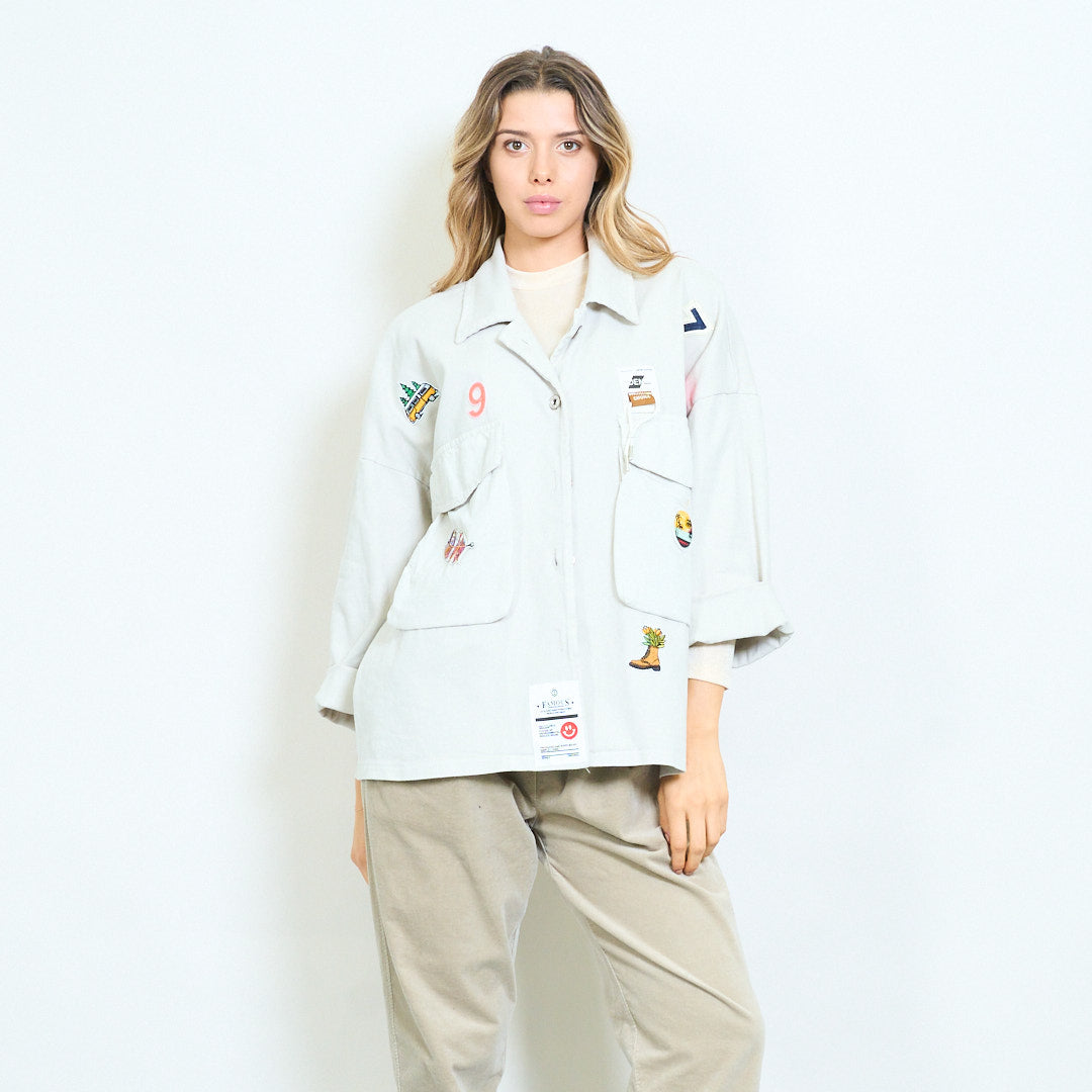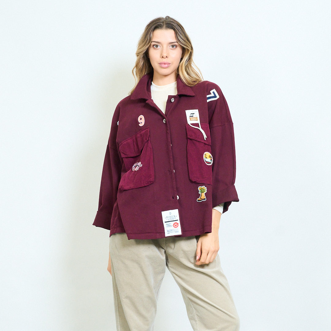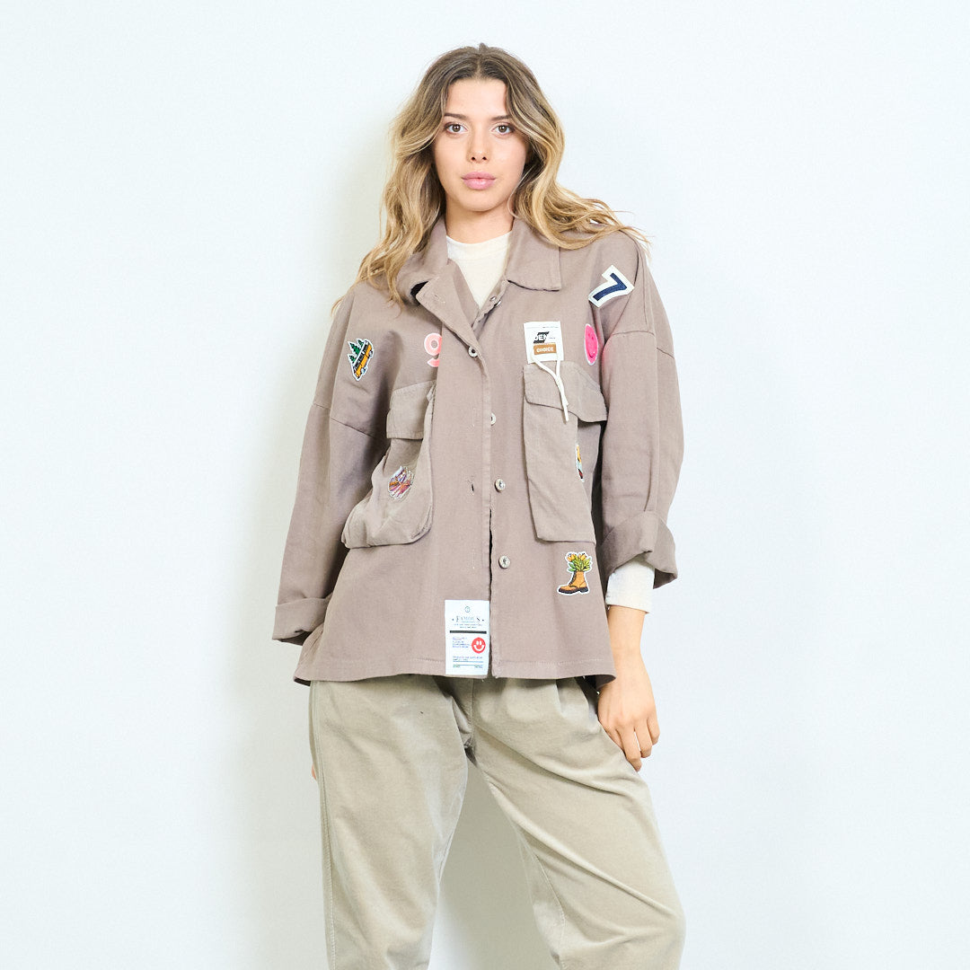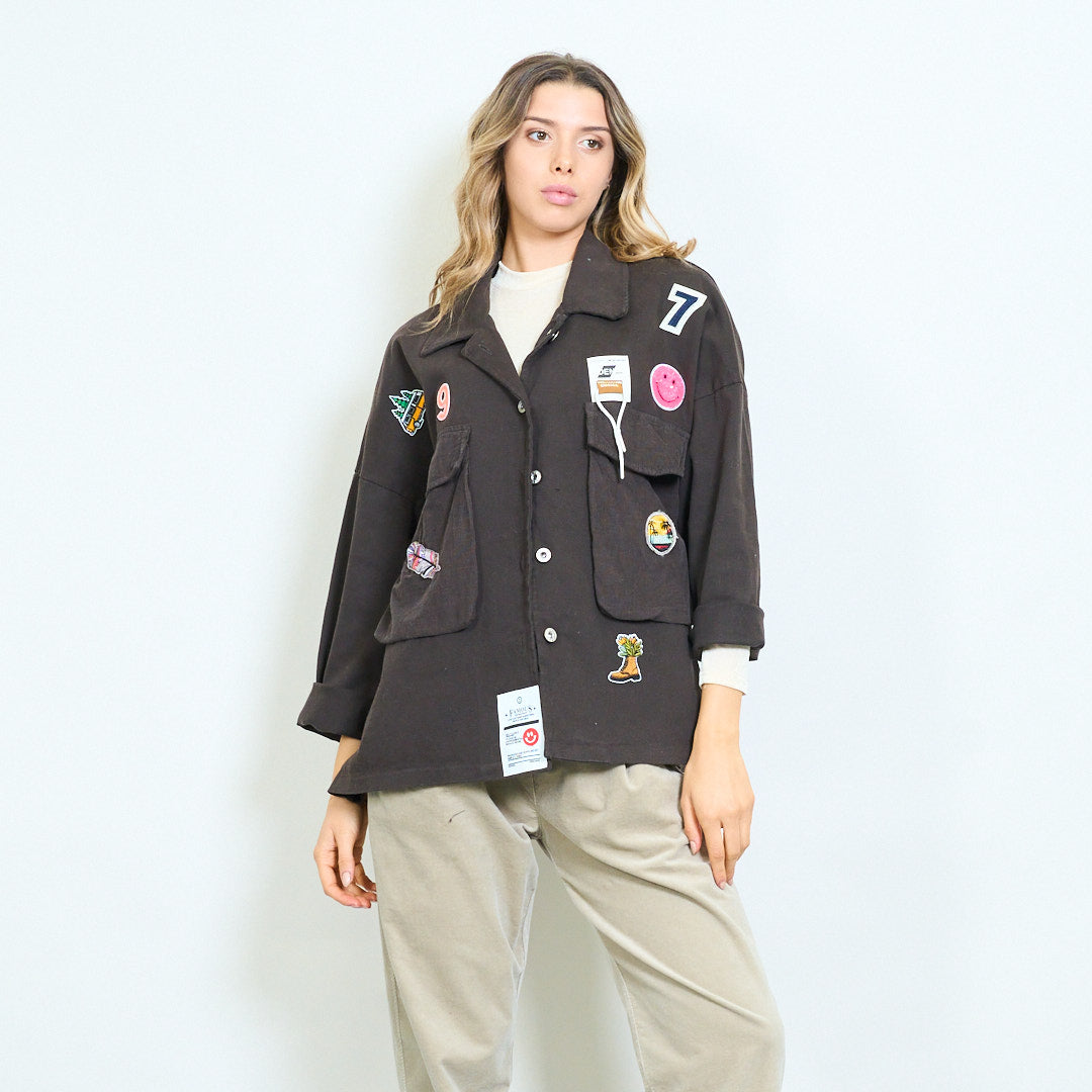 Patchwork-Grafik-Hemdjacke mit Taschen im Großhandel