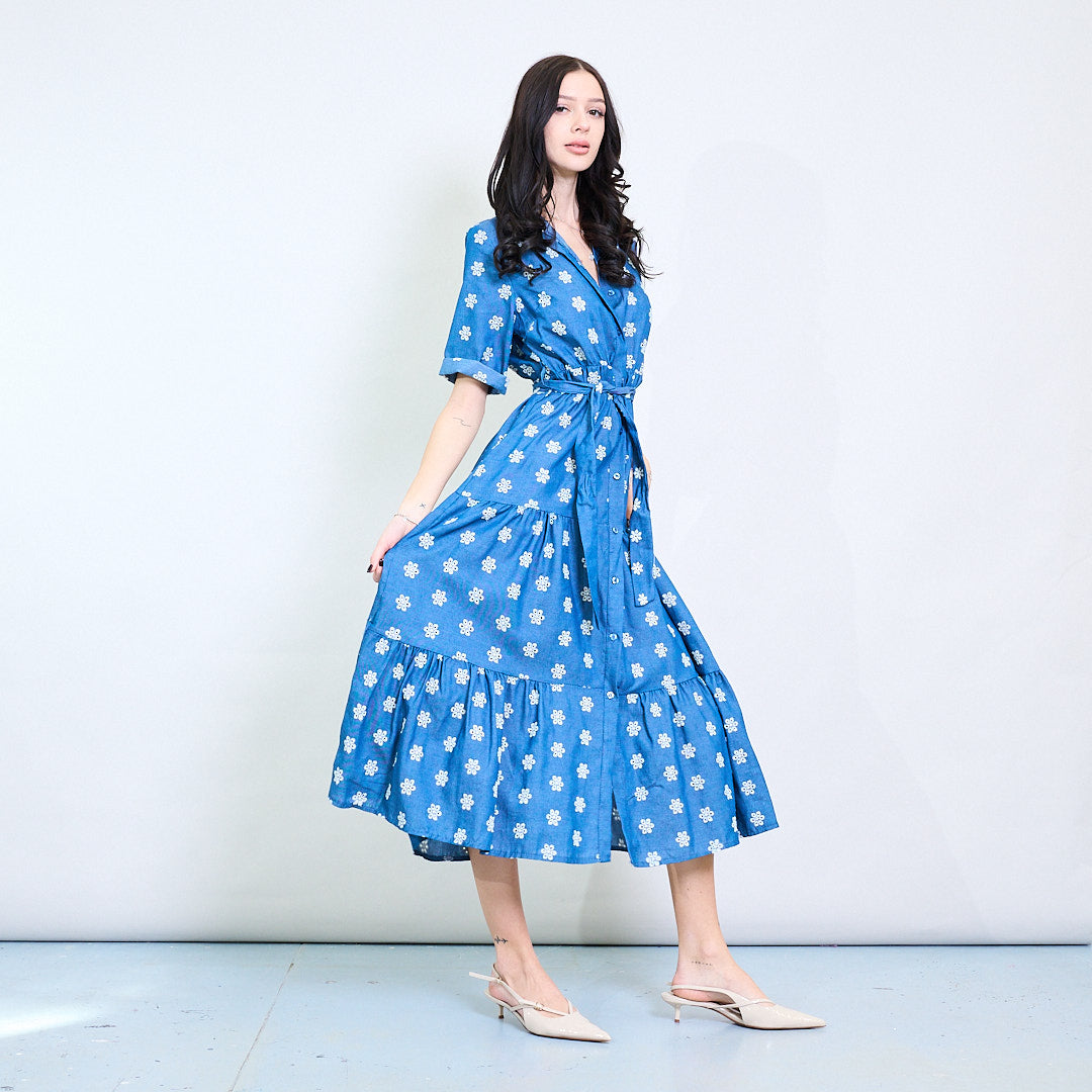 Blumengestickte Stickel -Chambray -Hemdkleid im Großhandel