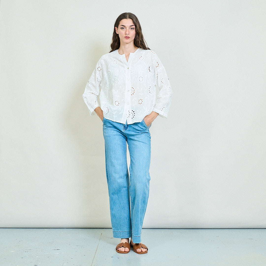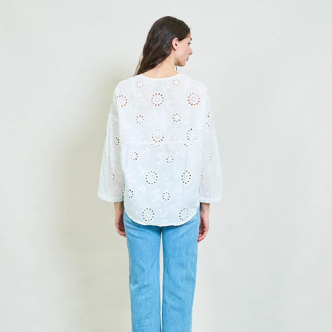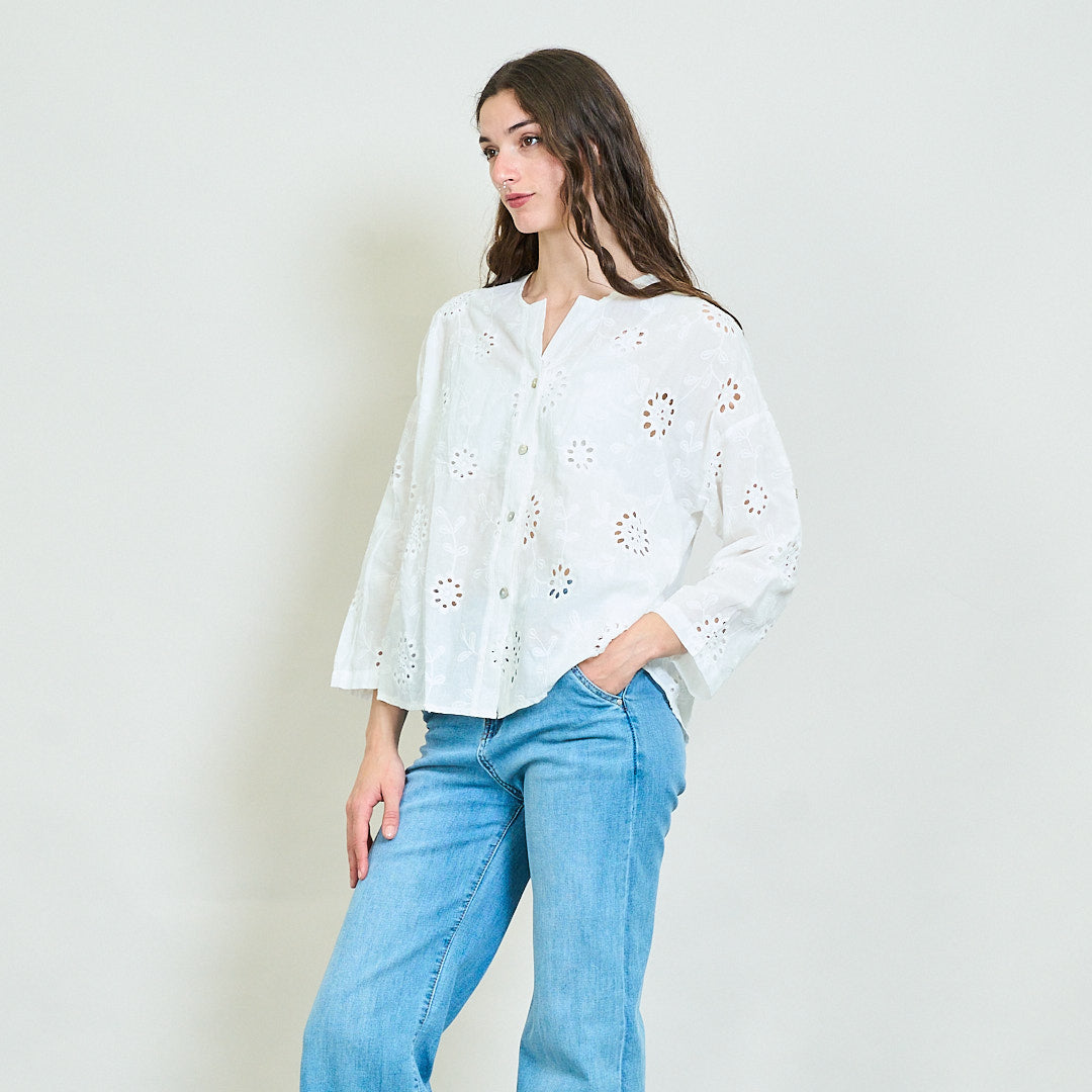 - Hergestellt aus leichter Baumwolle mit zart Blumen Ösenstickerei
