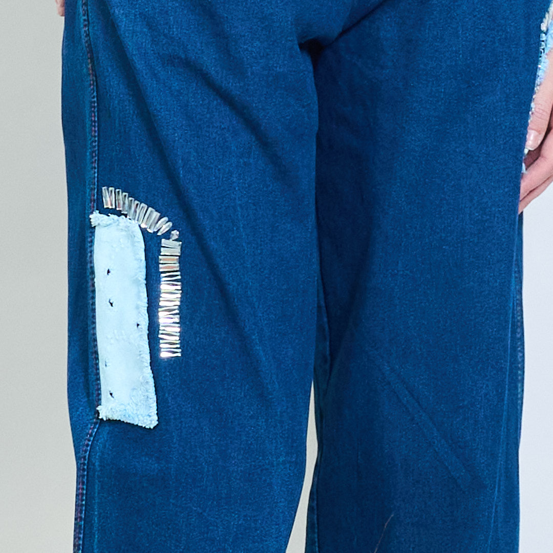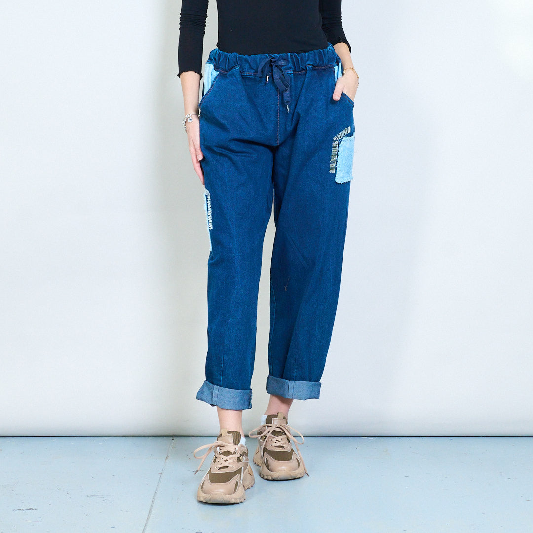 Denim-Kordelzughose mit Patchwork-Details im Großhandel