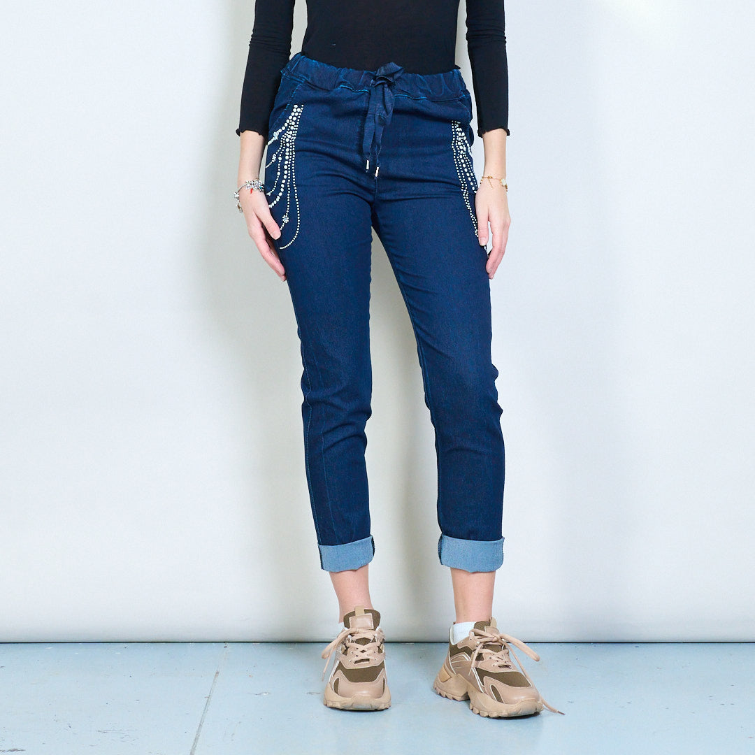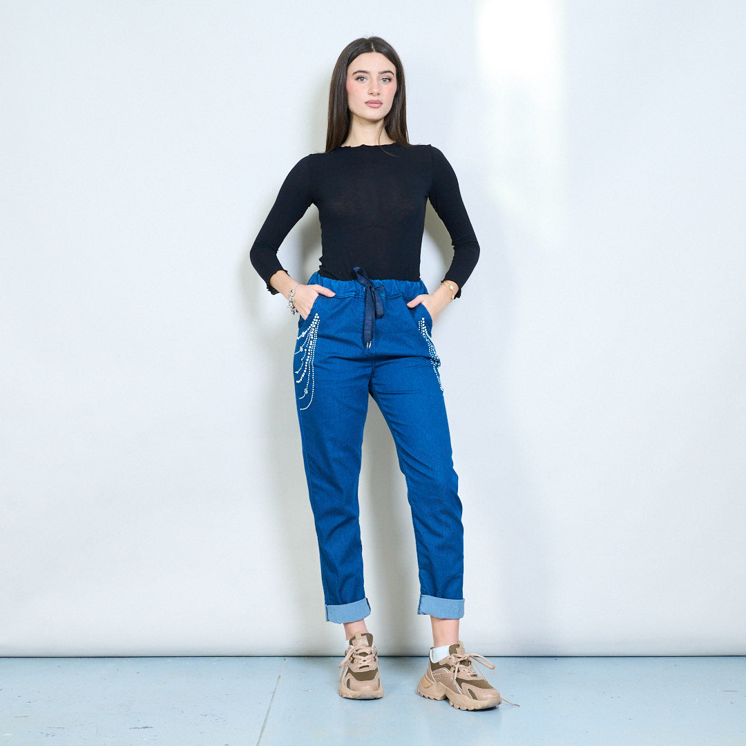 Jeanshosen mit Nietenverzierung und elastischem Bund im Großhandel