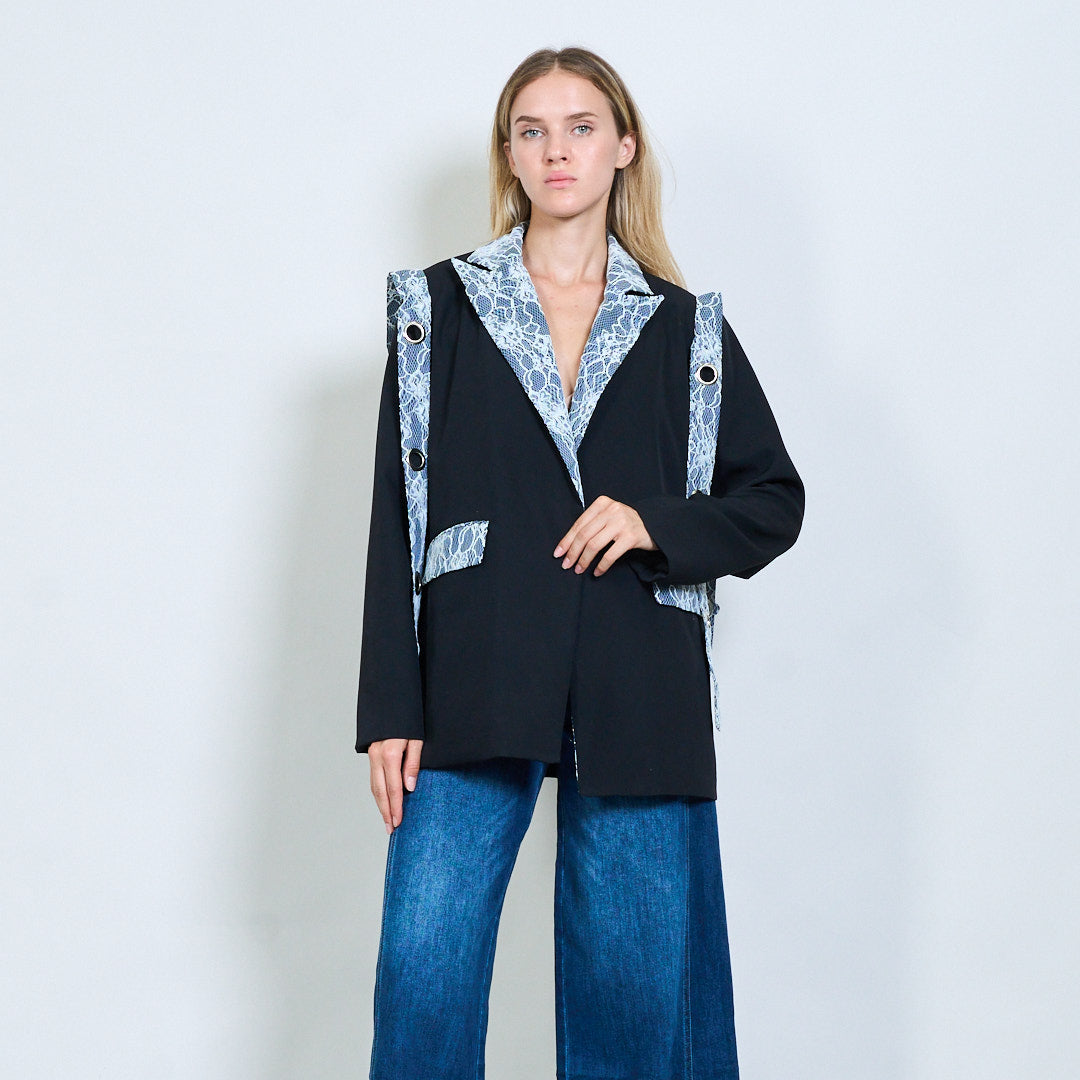 Kontrast Spitzenverkleidungs -Blazer mit DETTION -DETALION -Großhandel