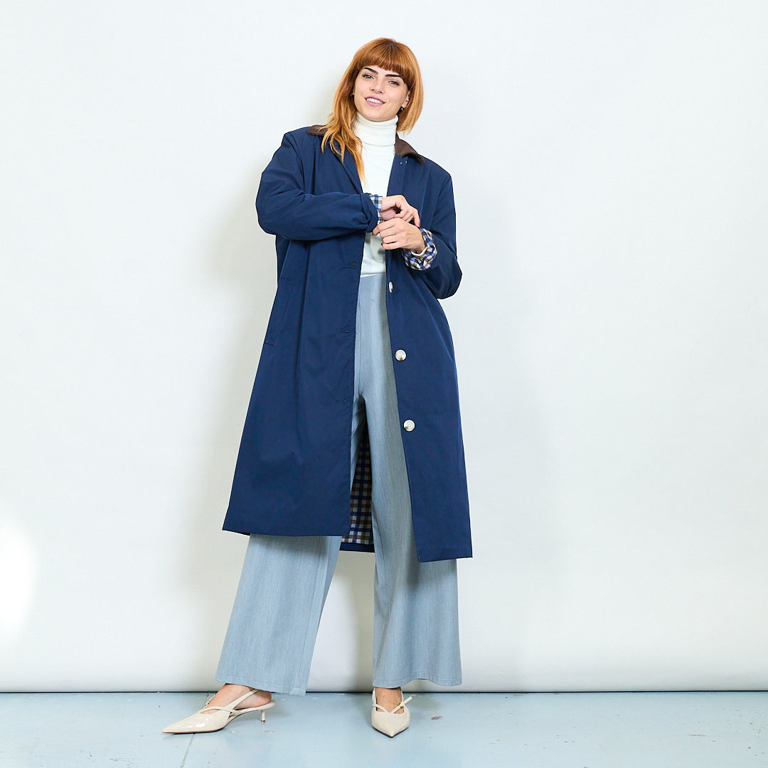 Langer Button-Down-Mantel mit Cordkragen und Überprüfen