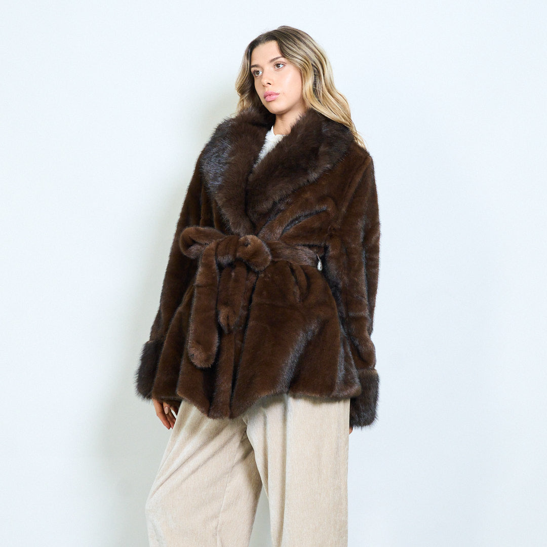 Plüsch-Wickelmantel aus Kunstfell mit Gürtel und breitem Revers im Großhandel
