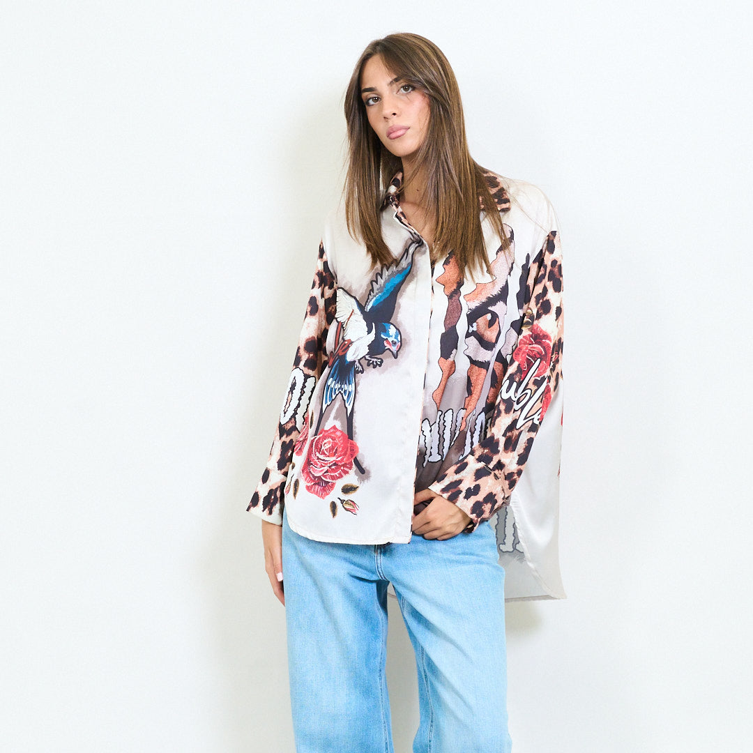 - Fettsäure Satinbluse mit gemischten Details zur Grafik und Tierdruck