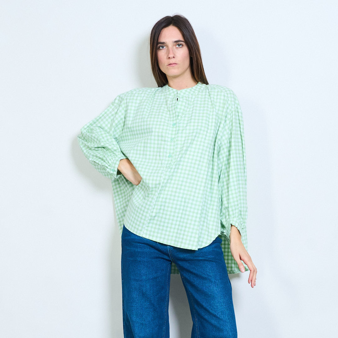 Karierte übergroße Bluse mit Knopfleiste vorne im Großhandel