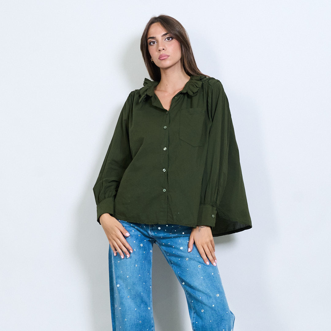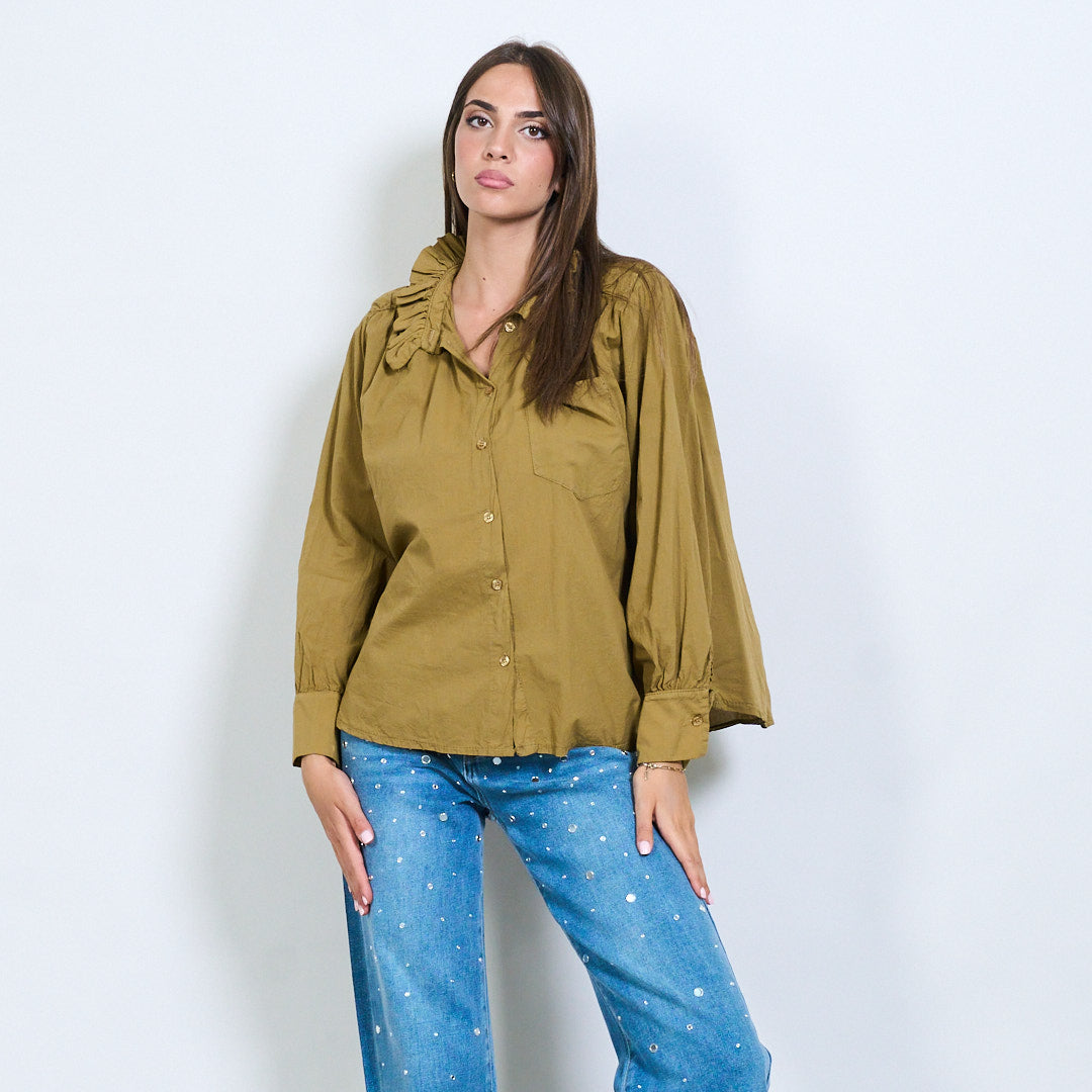 Ruffenkragen versammelte Schulterbluse Großhandel