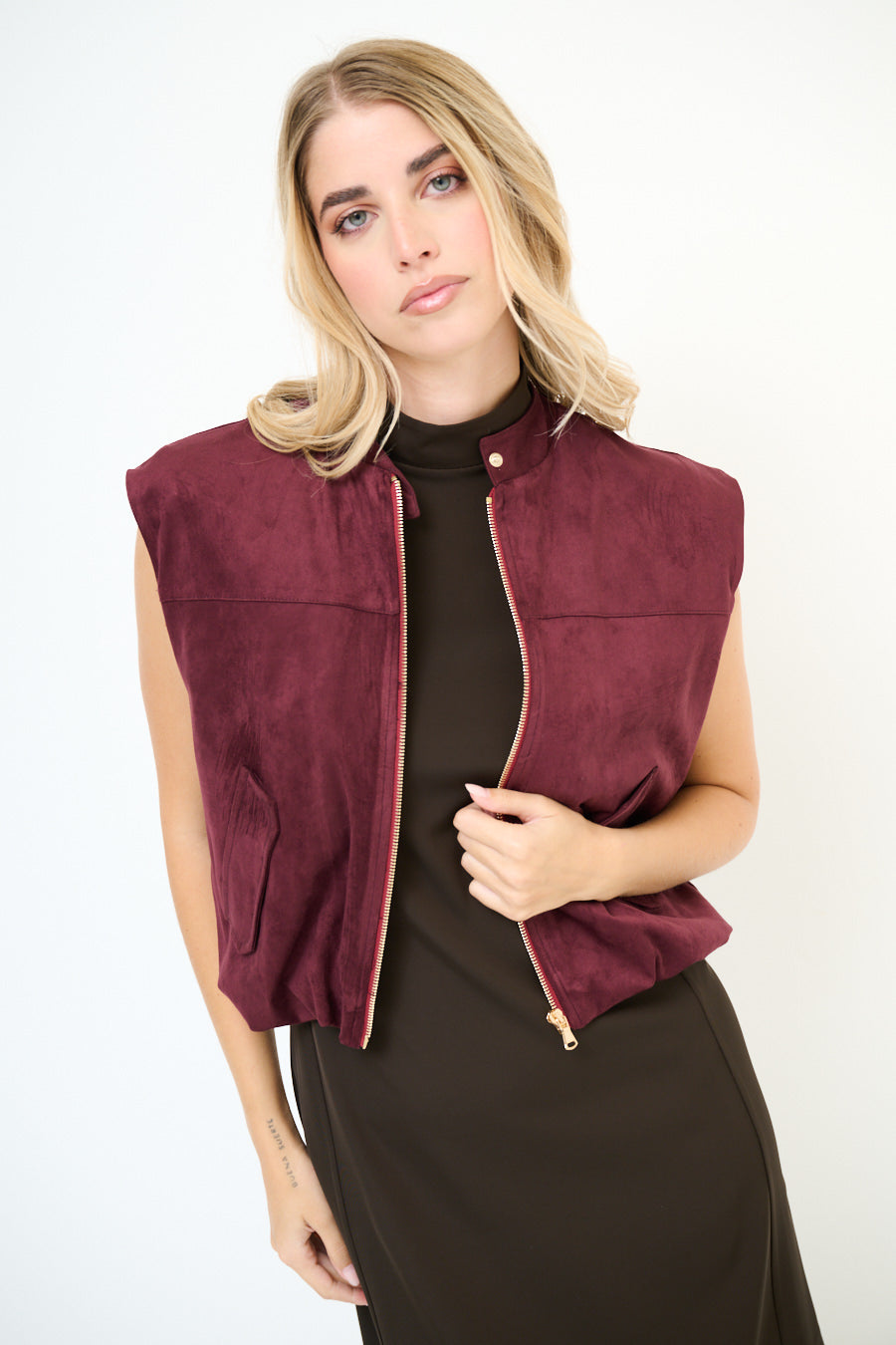 Ärmellose Weste mit Wildledereffekt vorne und Reißverschluss im Großhandel