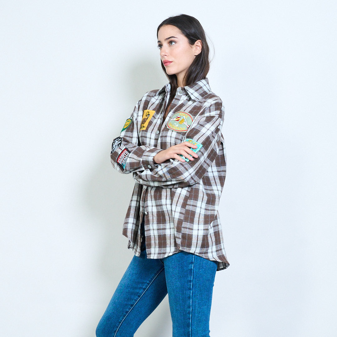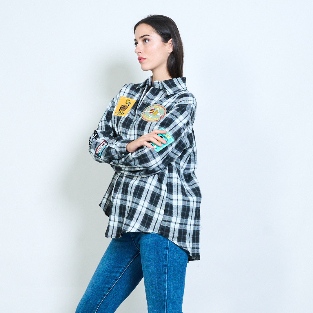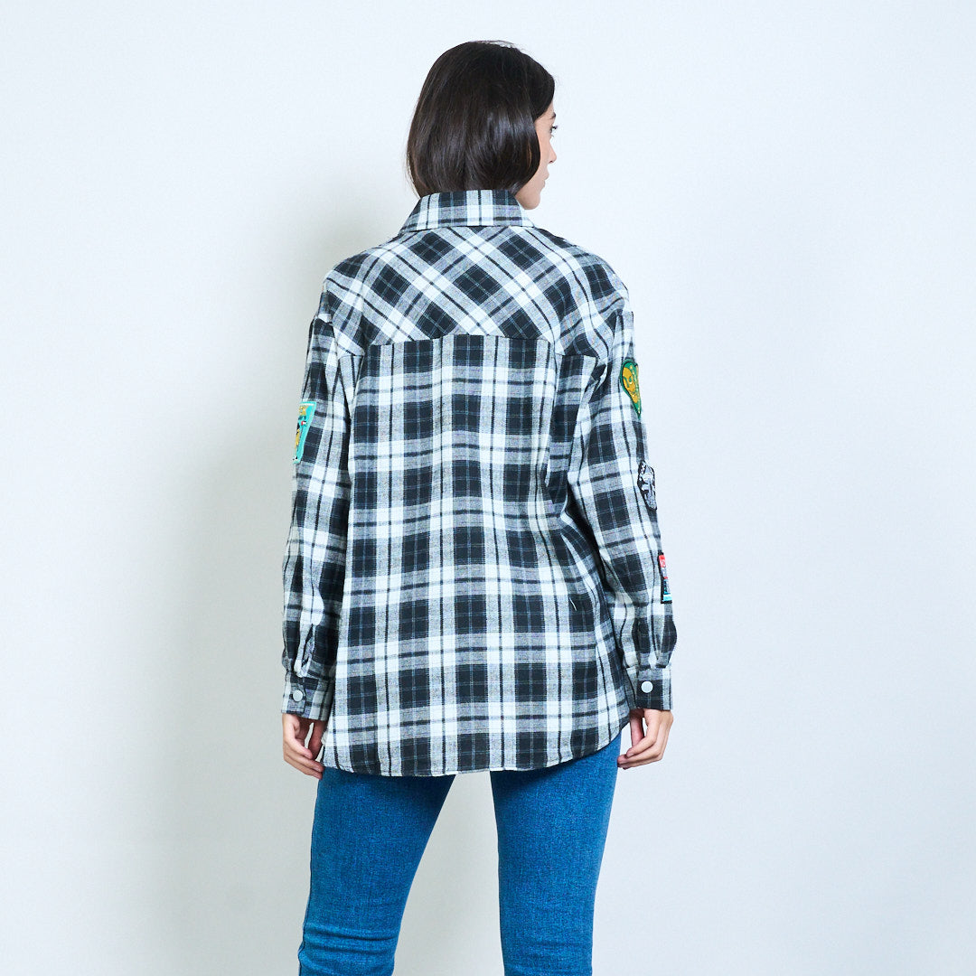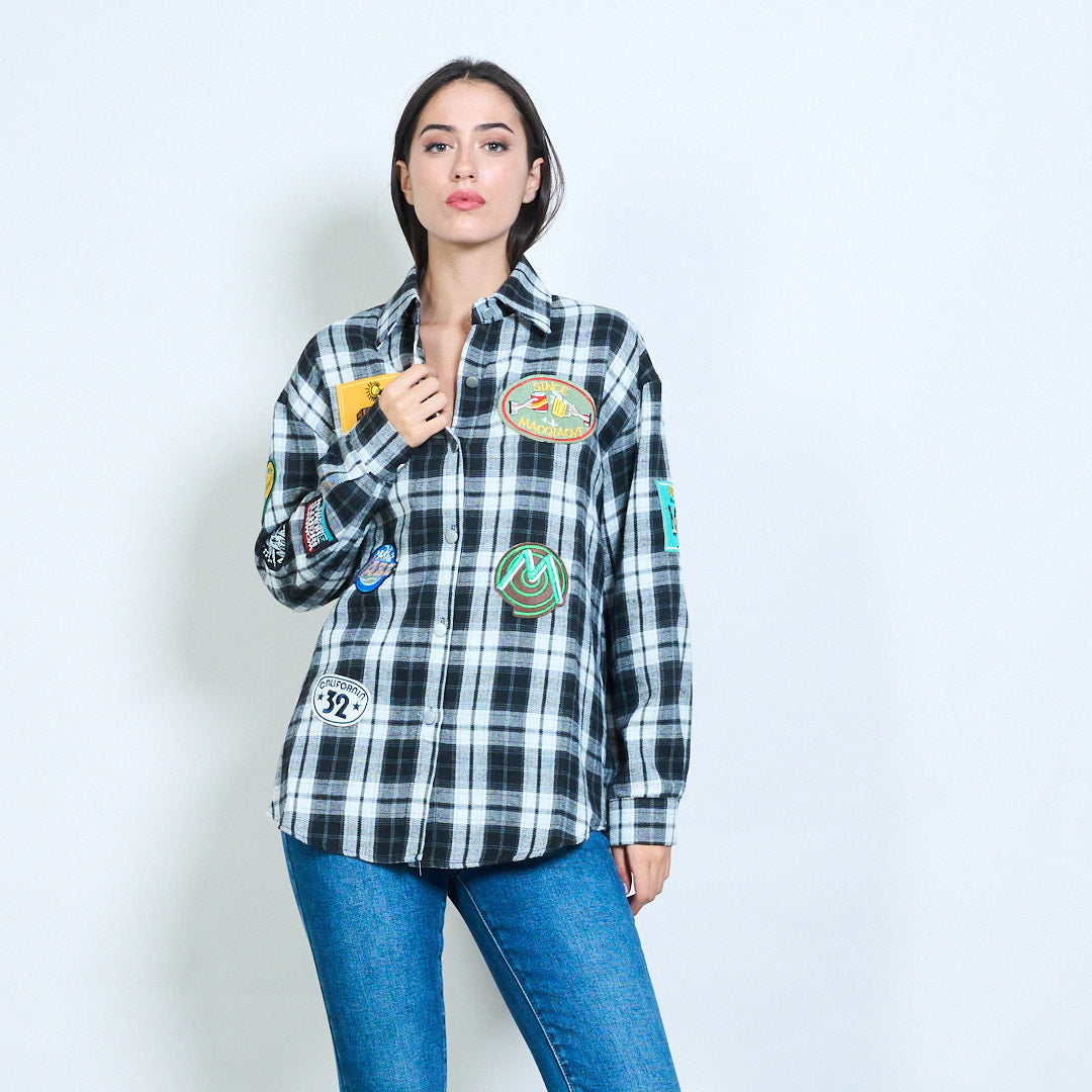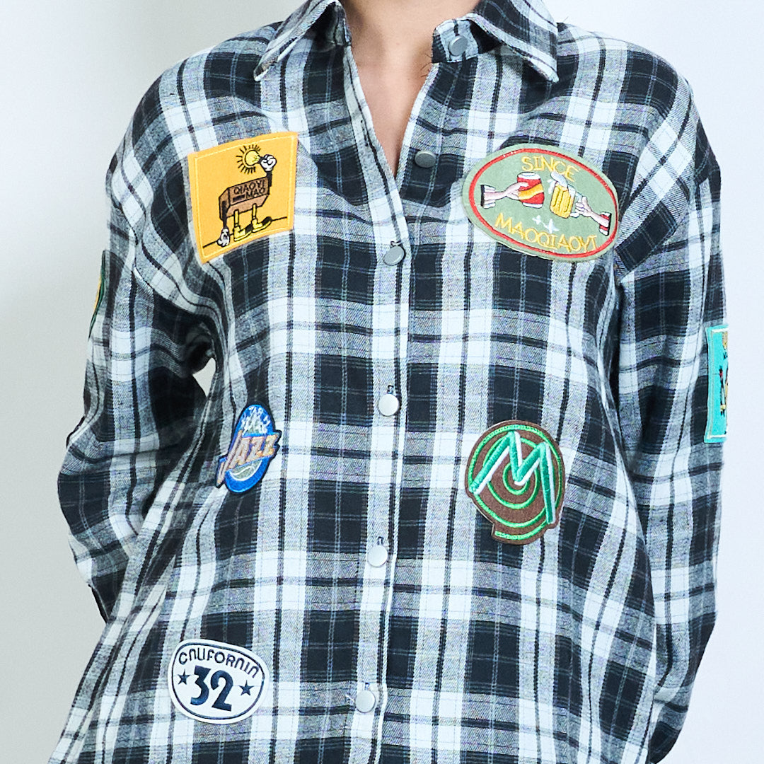 Kariertes Hemd mit Knopfleiste und Patchwork-Abzeichen im Großhandel