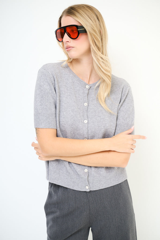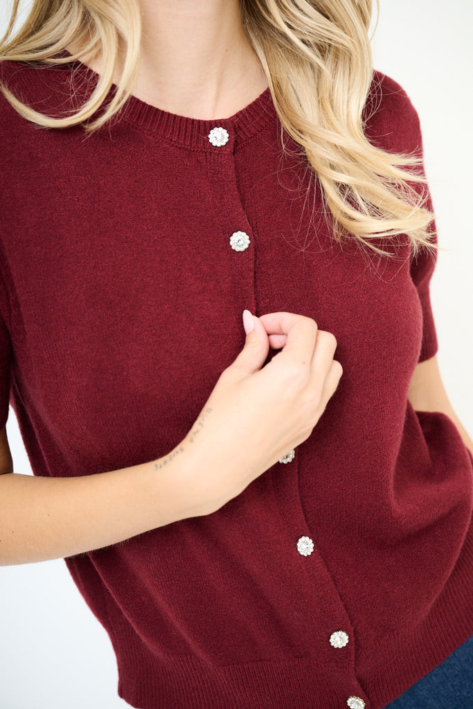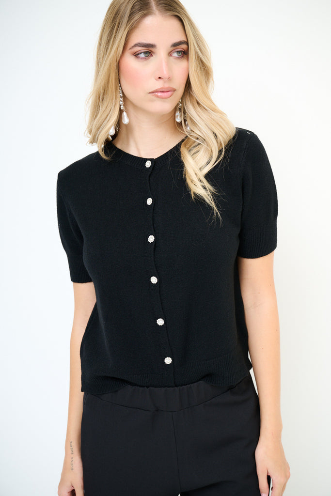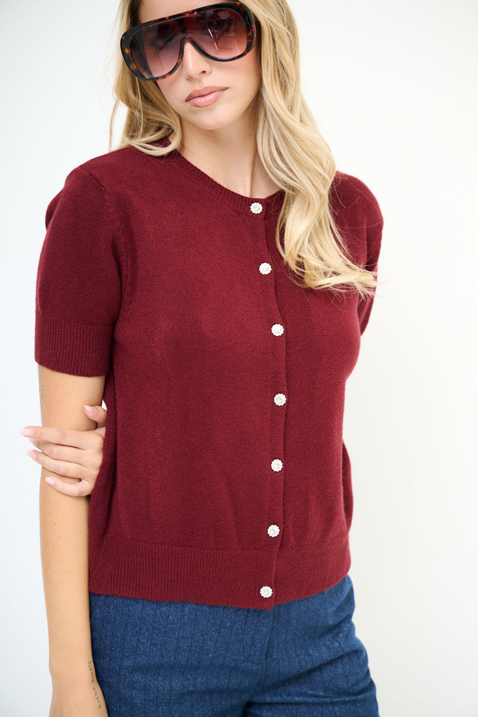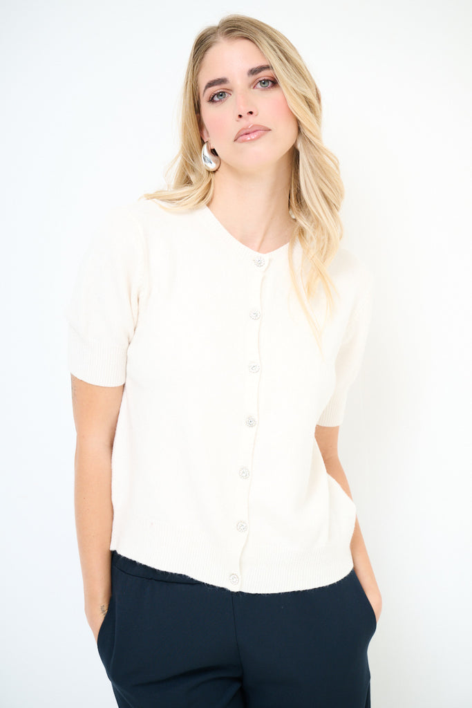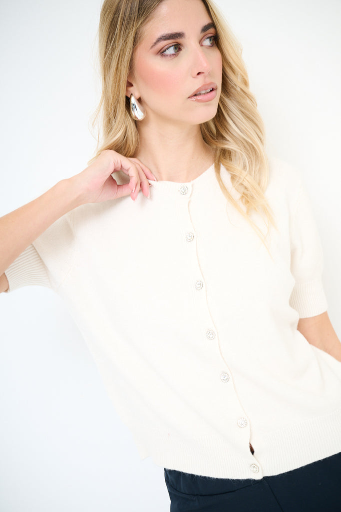 - Klassischer Cardigan-Stil mit kurzen Ärmeln für einen modernen Touch