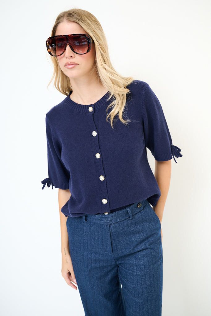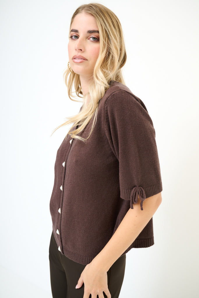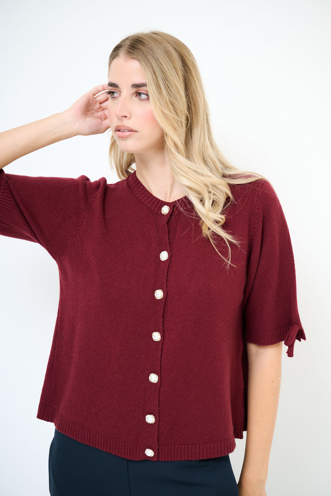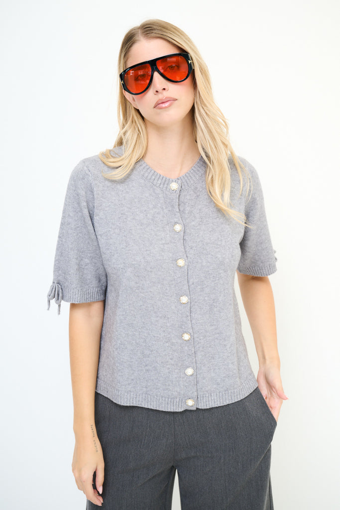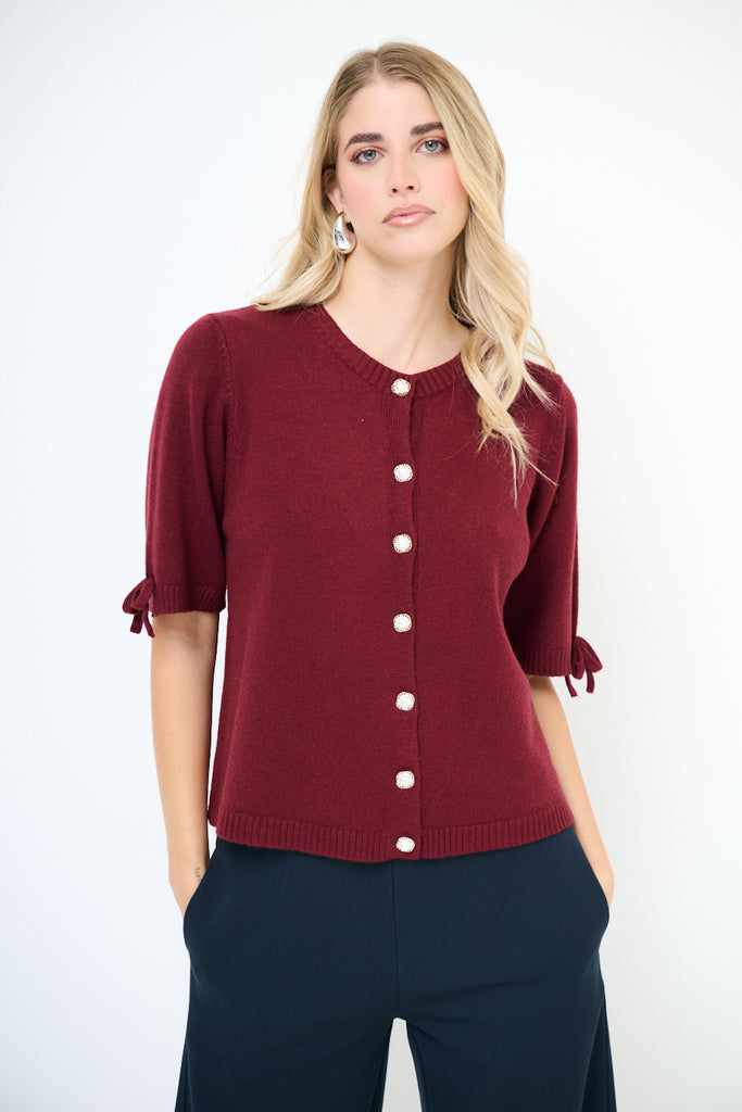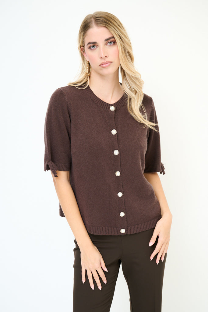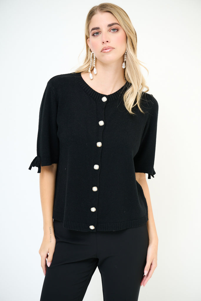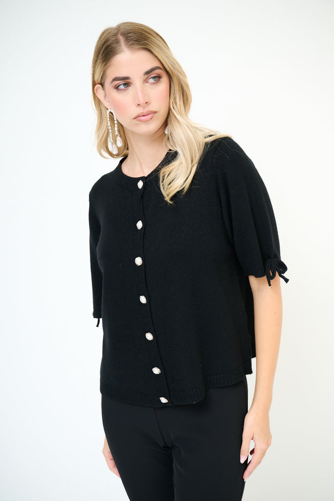 Kurzärmliger Cardigan mit Perlenknöpfen und Schleifendetail im Großhandel