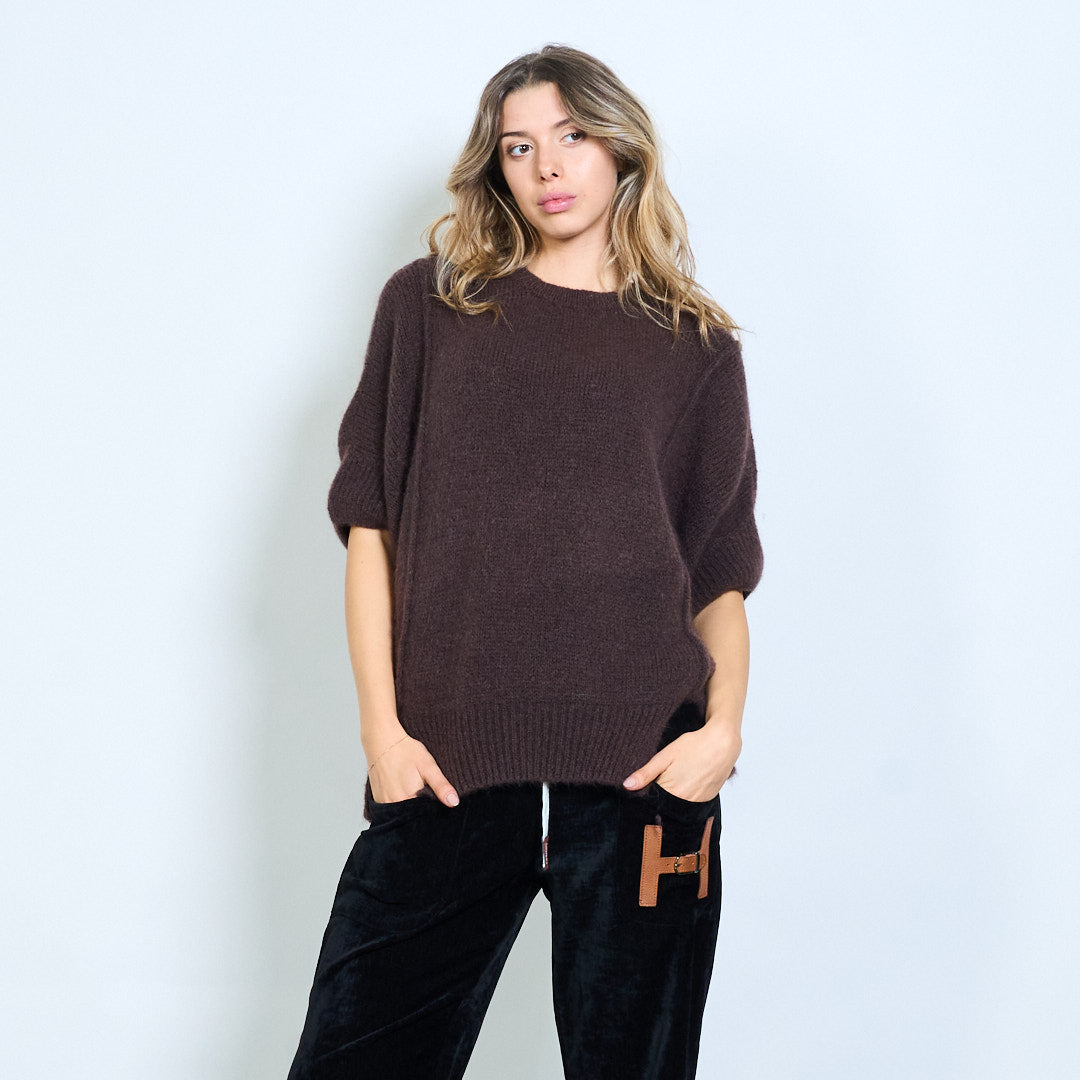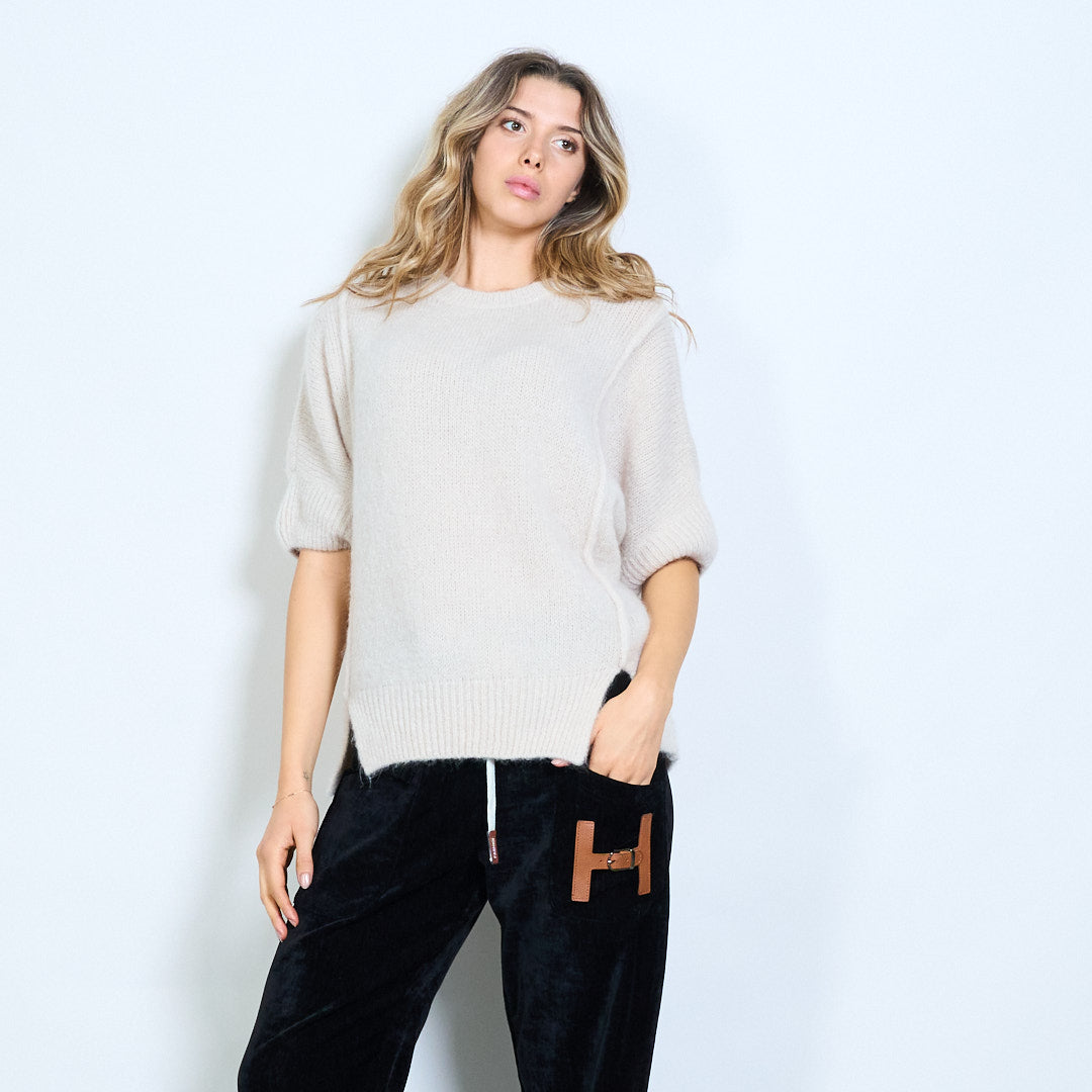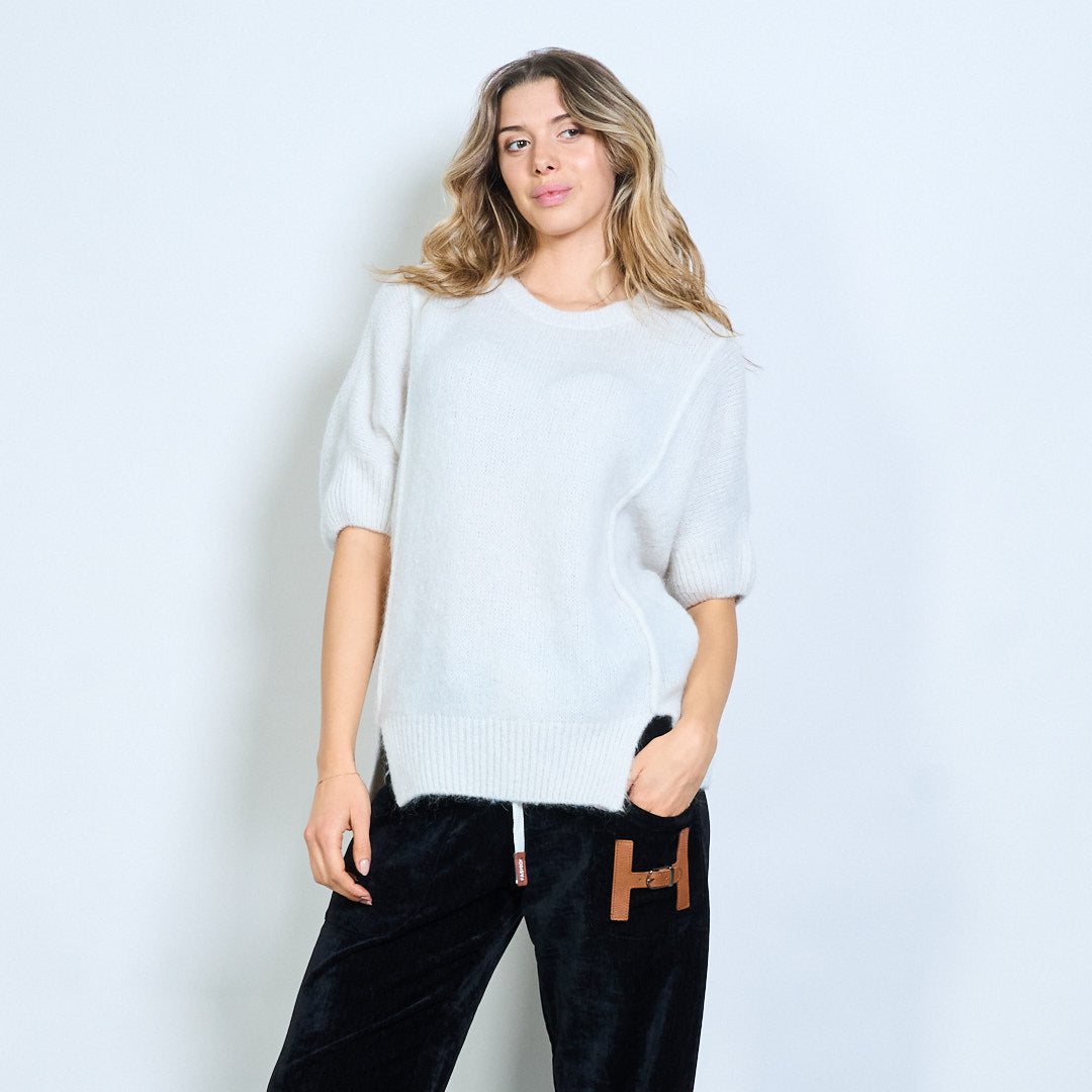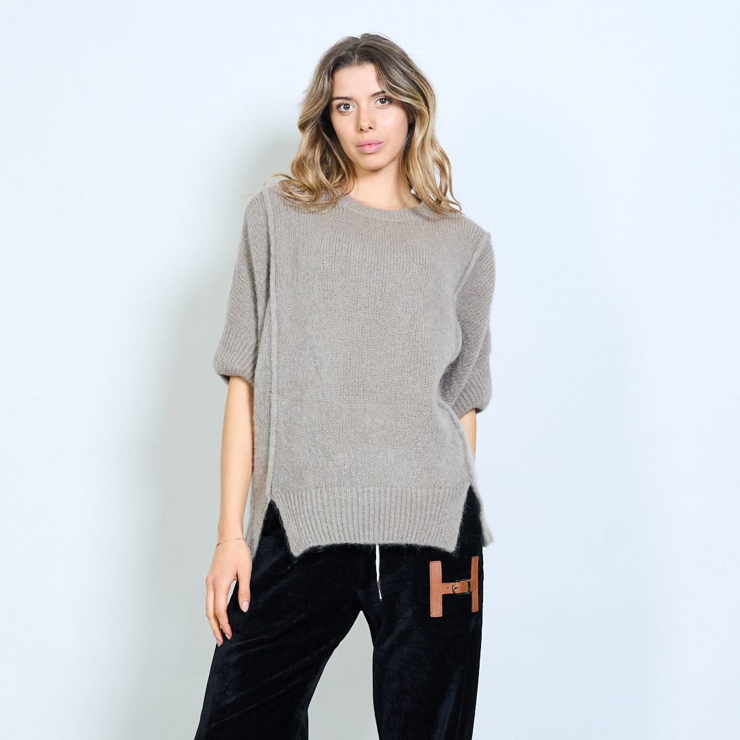 Kurzärmliger, locker sitzender Strickpullover mit Seitenschlitz im Großhandel