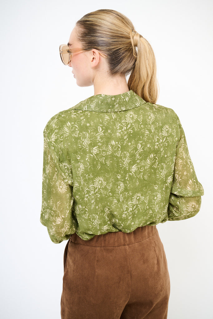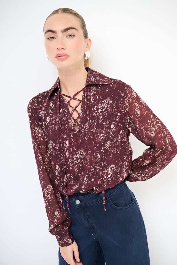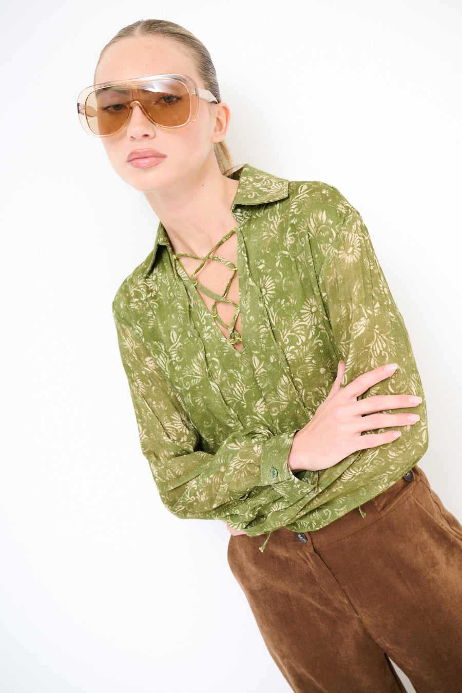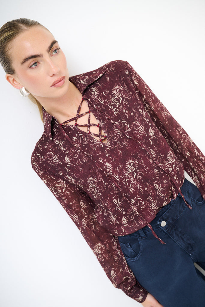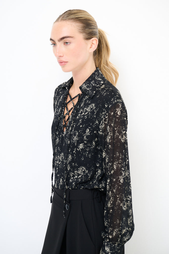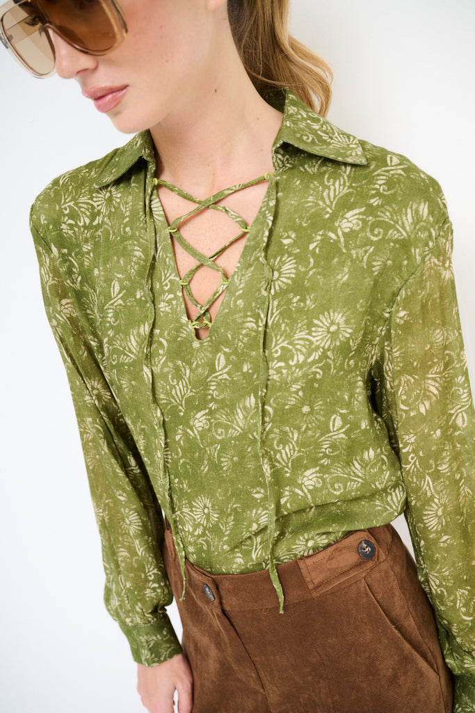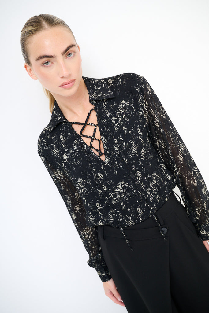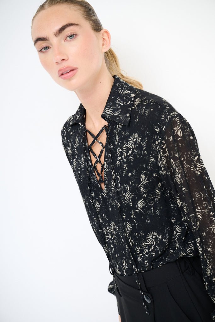 Langärmlige Chiffonbluse mit Blumen-Schnürkragen im Großhandel