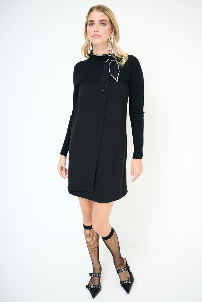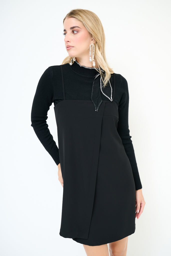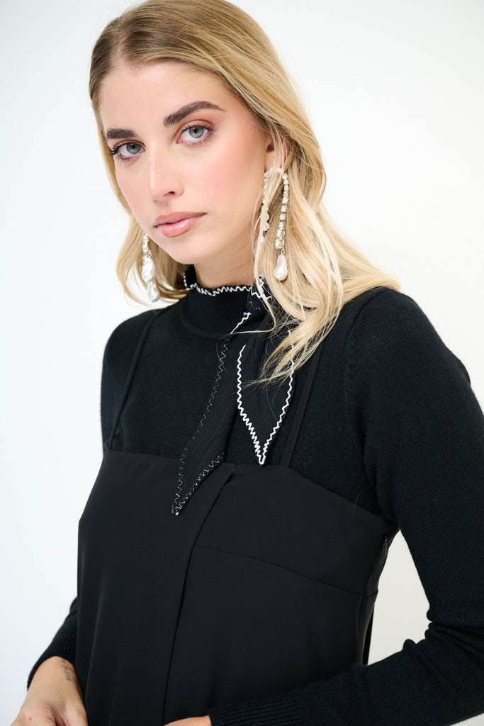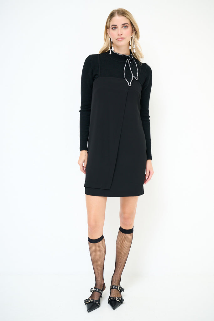 - Modernes Etuikleid im Lagenlook mit langen Ärmeln und ärmellosem Overlay