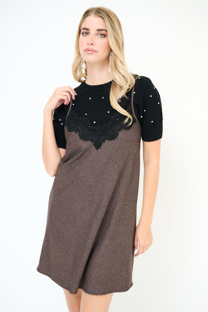 Mini-Slipkleid mit Spaghettiträgern und Spitzenausschnitt im Großhandel