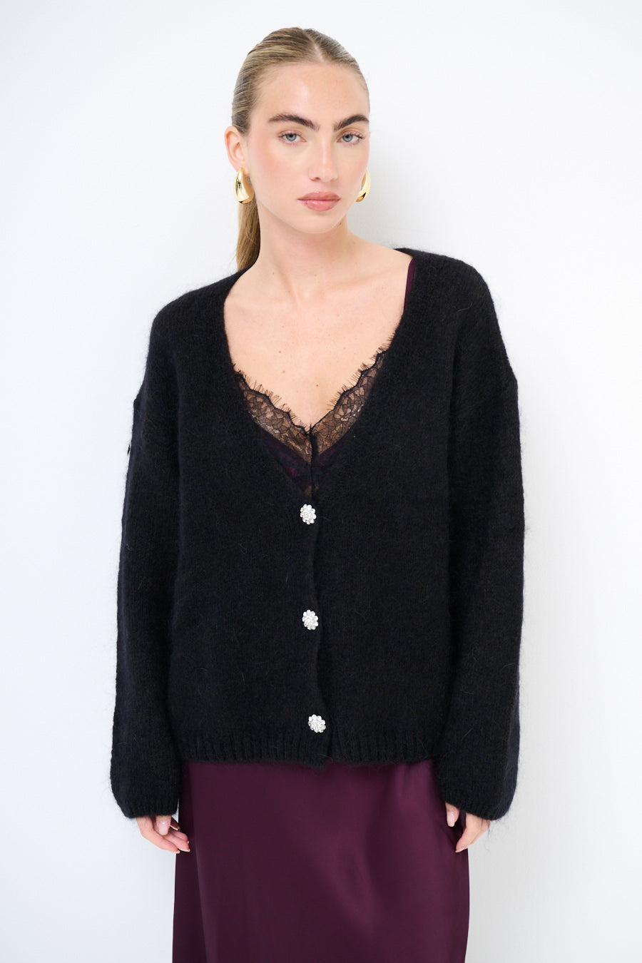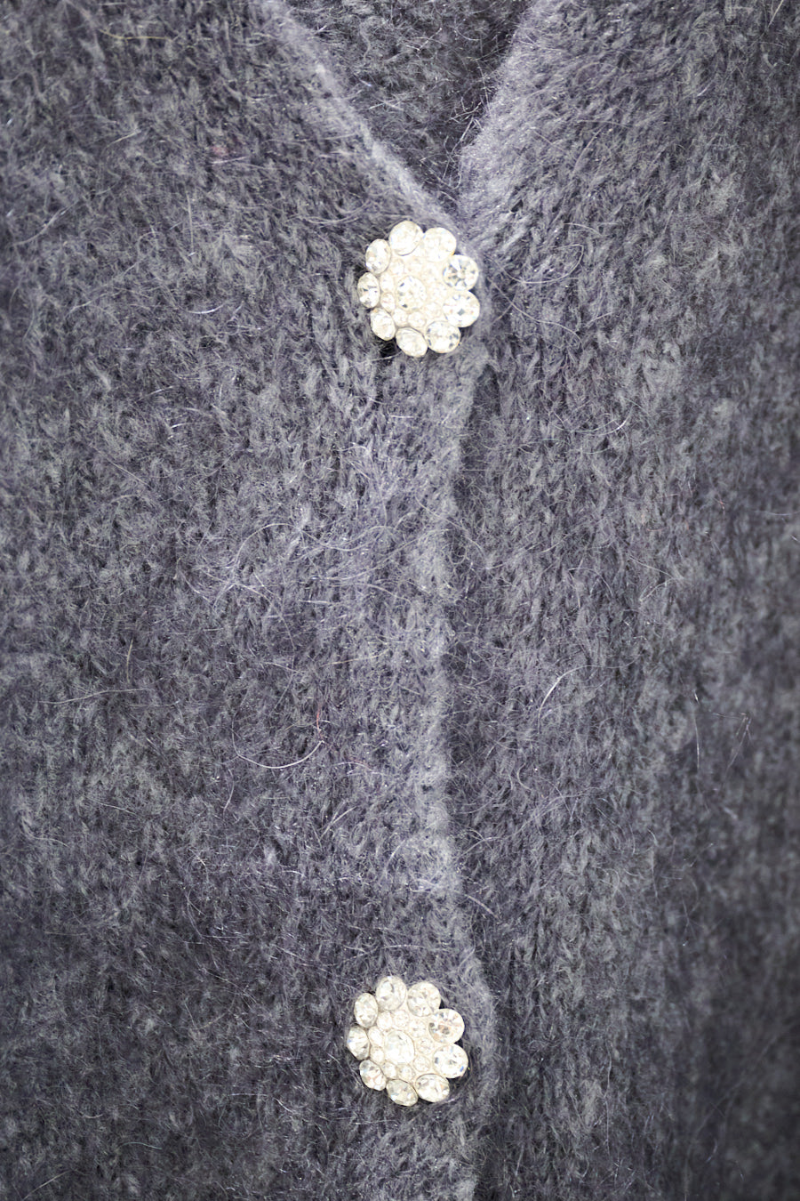 Fuzzy-Strickjacke mit V-Ausschnitt und Juwelenknöpfen im Großhandel