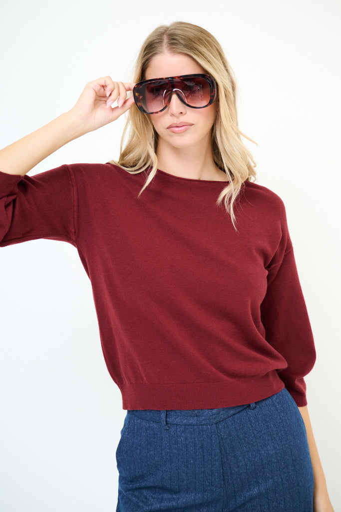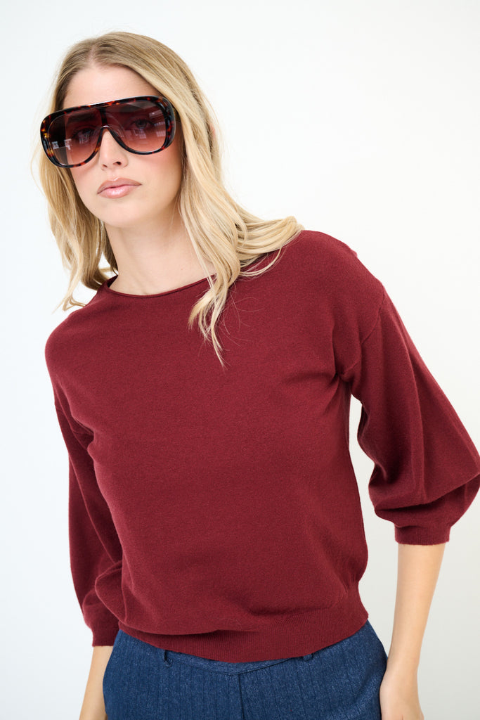 Strickpullover mit U-Boot-Ausschnitt und Ballonärmeln im Großhandel
