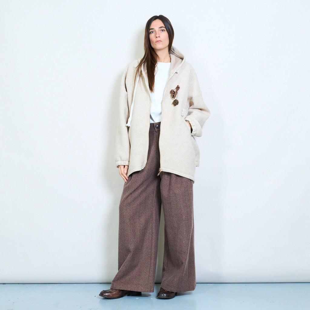 Verschönerte Zip-up-Hoodie mit Bogendetail Großhandel