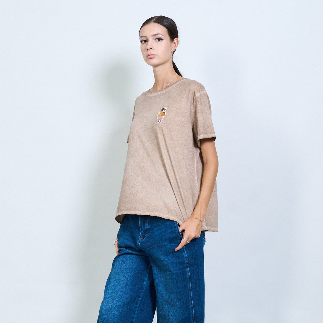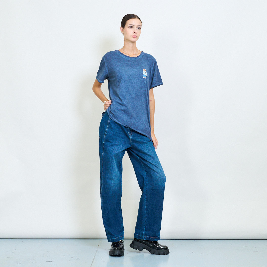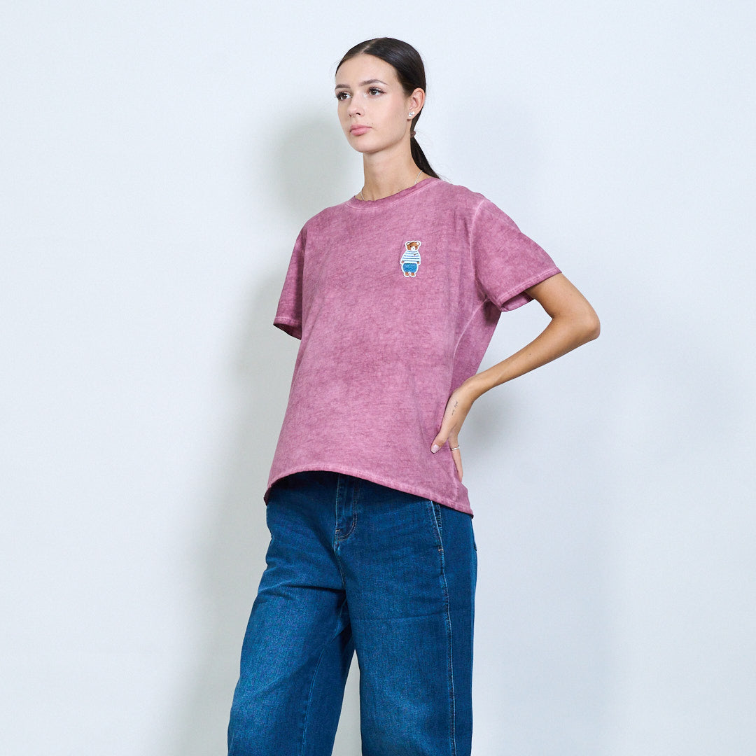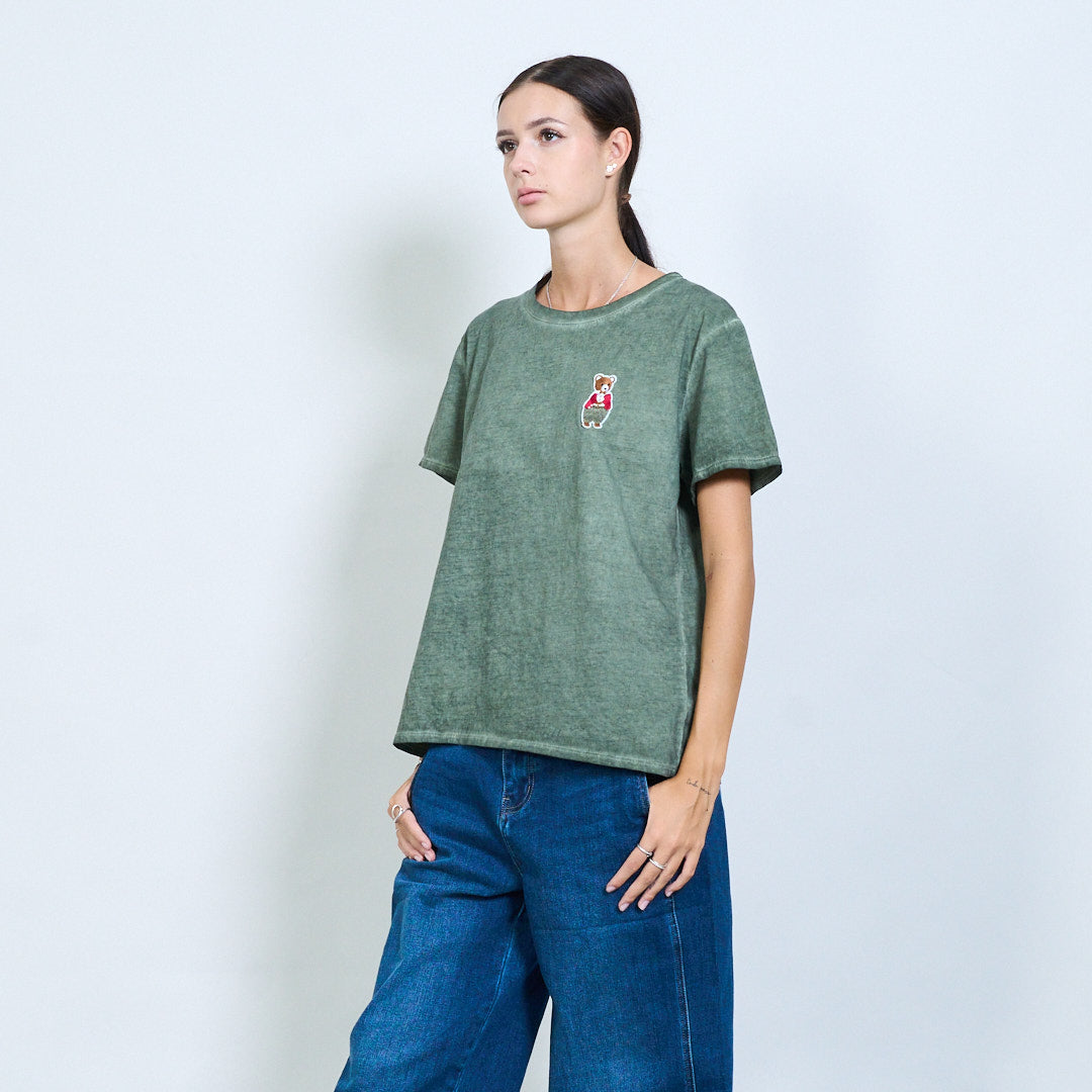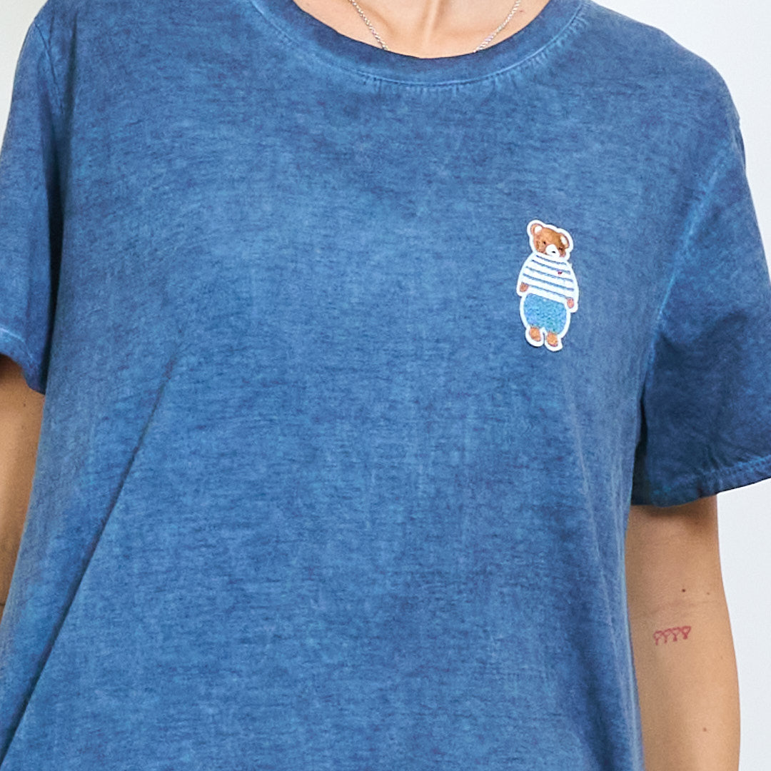 Teddybär Stickerei gewaschener Effekt T-Shirt Großhandel