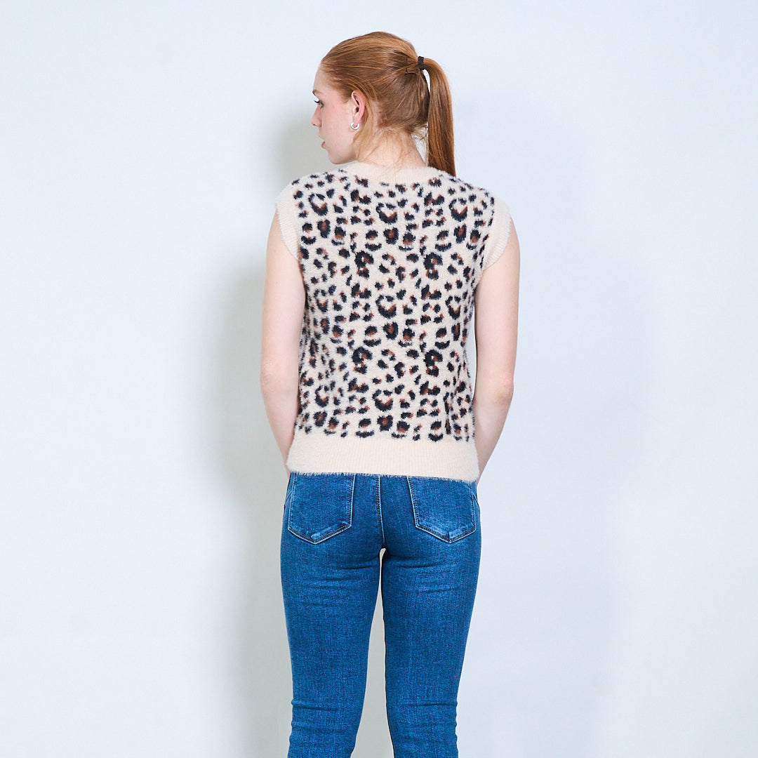 Animalia ärmellose Strickweste mit Leopardenmuster im Großhandel