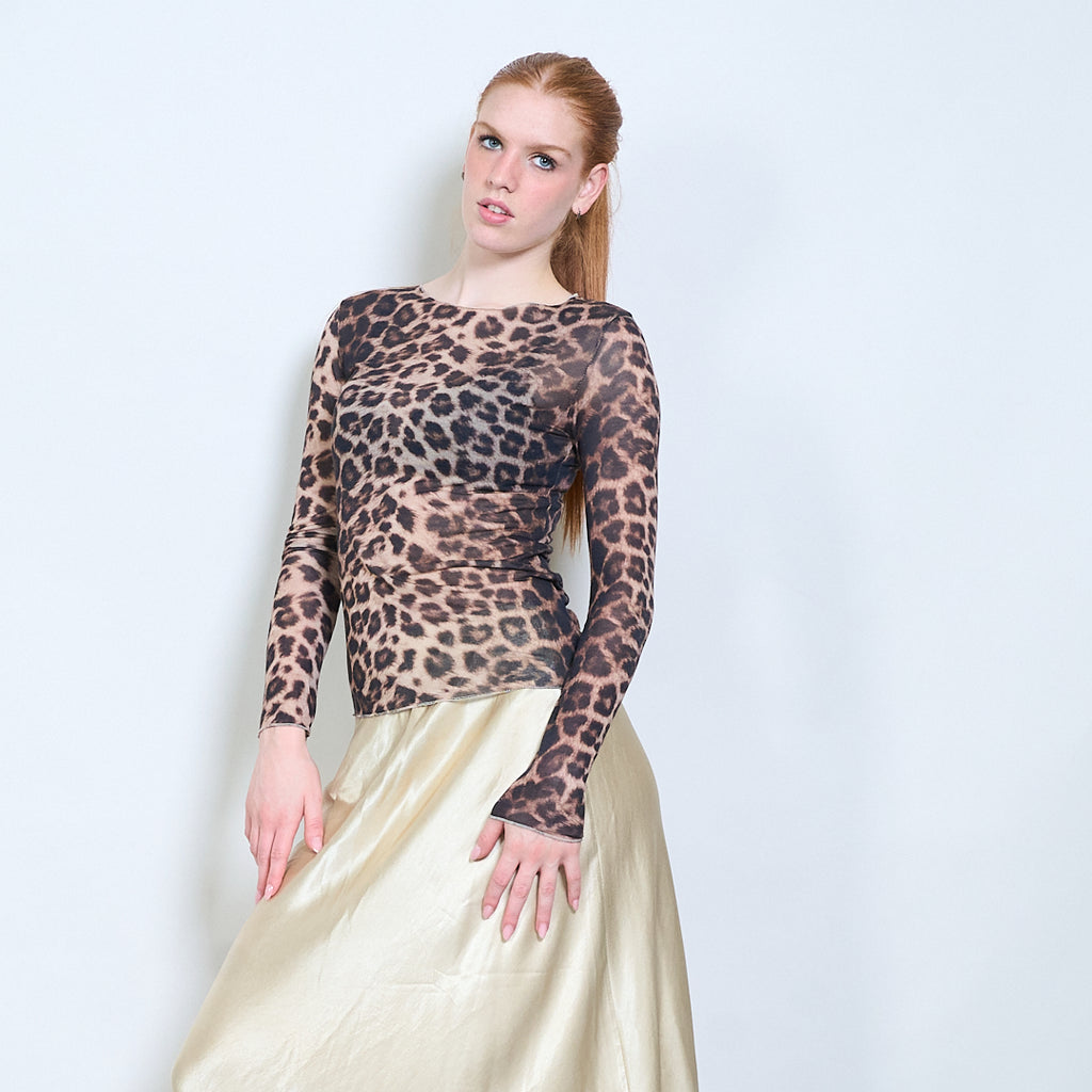 Animalia, durchsichtiges, langärmliges, tailliertes Oberteil mit Leopardenmuster im Großhandel