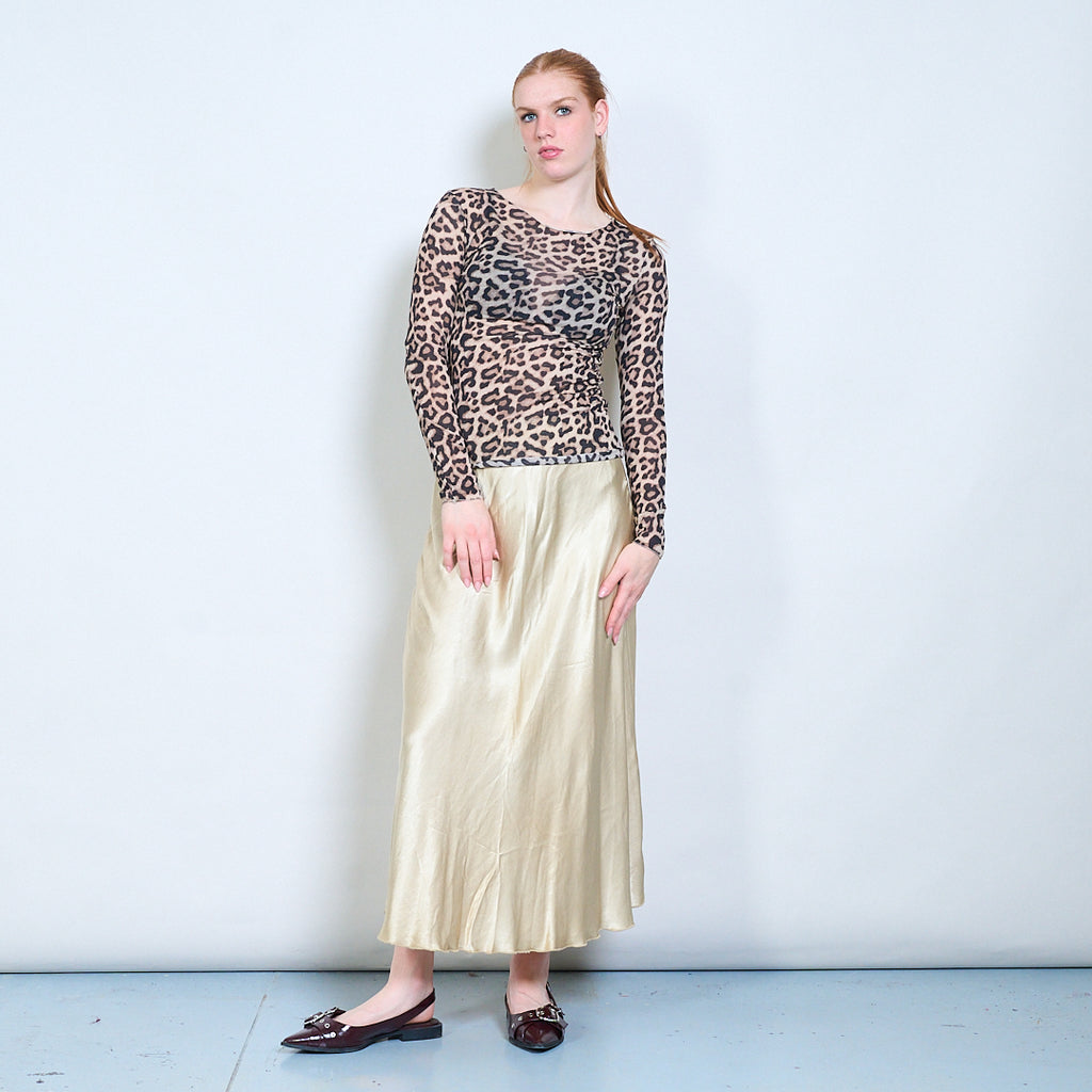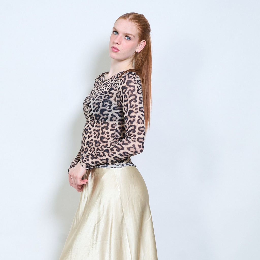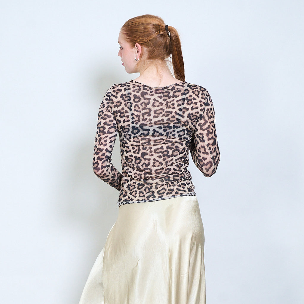 Animalia Langarm-Oberteil mit wildem Leopardenmuster und eng anliegendem Netzstoff im Großhandel