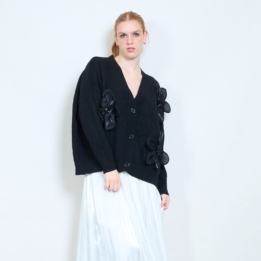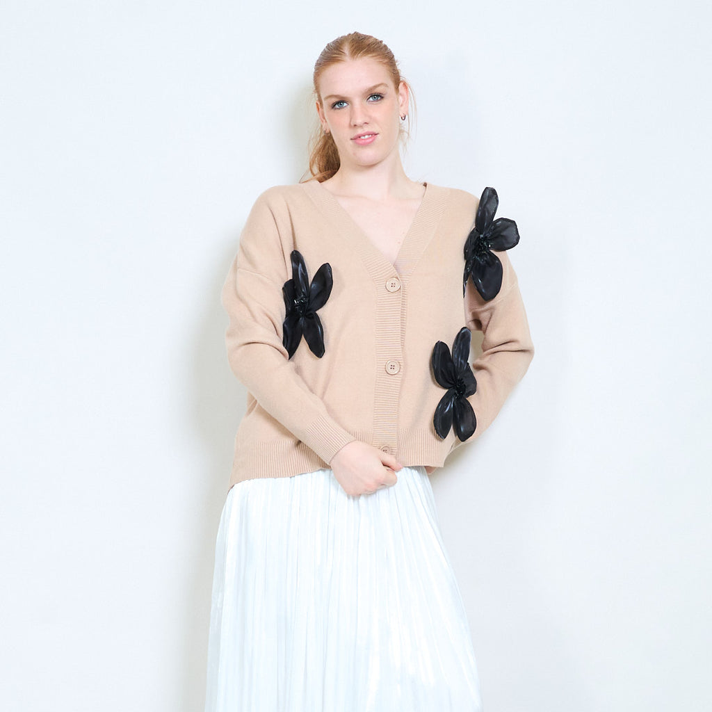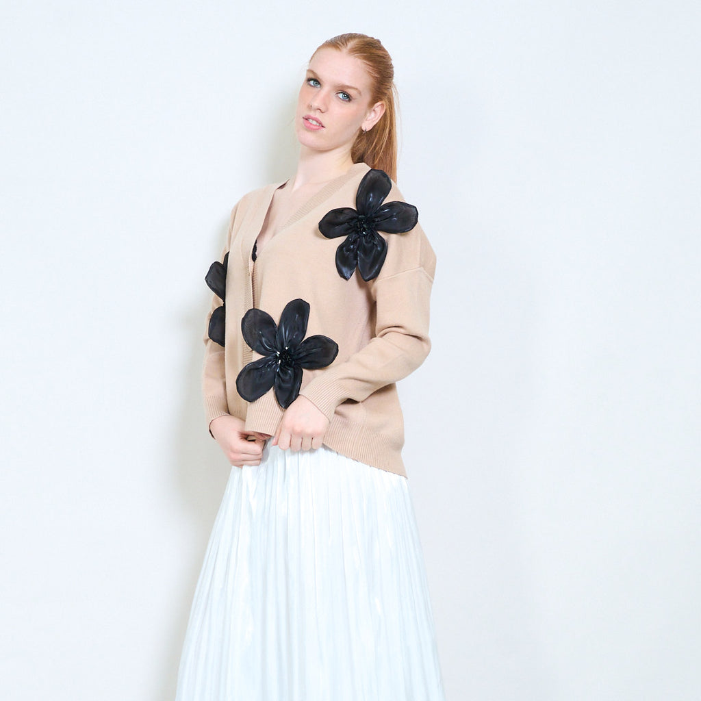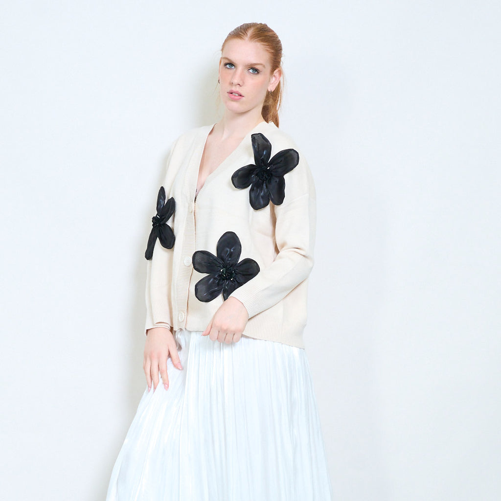 Strickjacke mit Blumenapplikation und Knöpfen und V-Ausschnitt im Großhandel