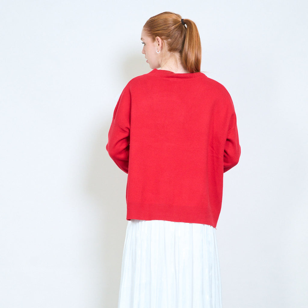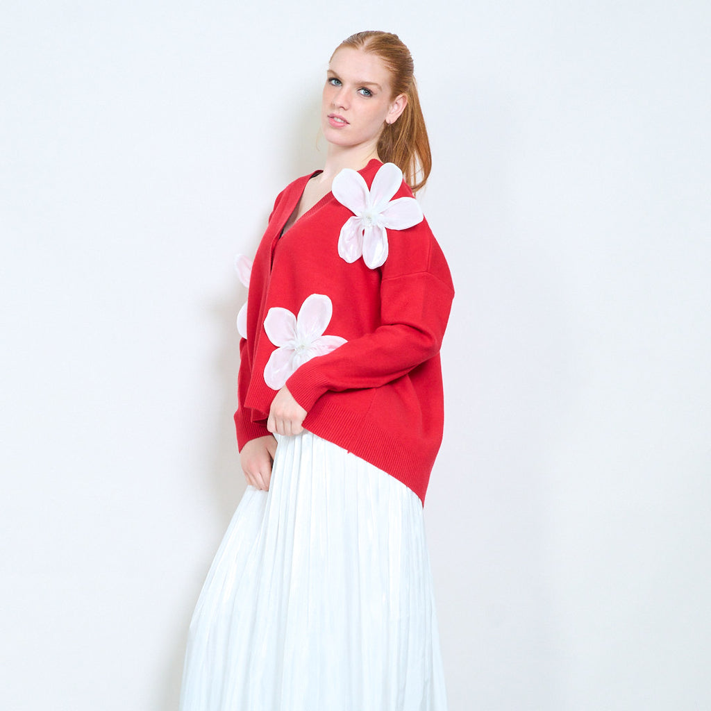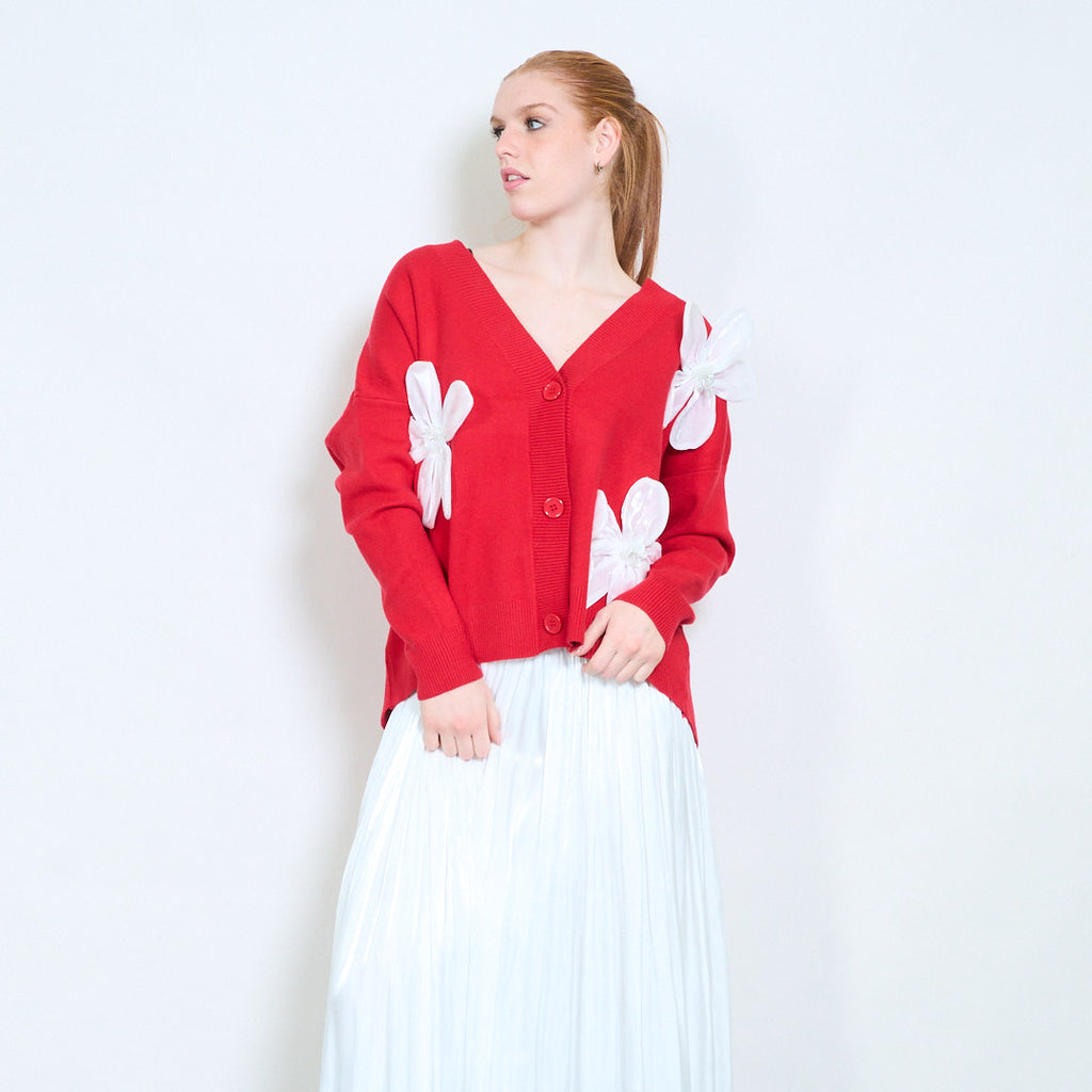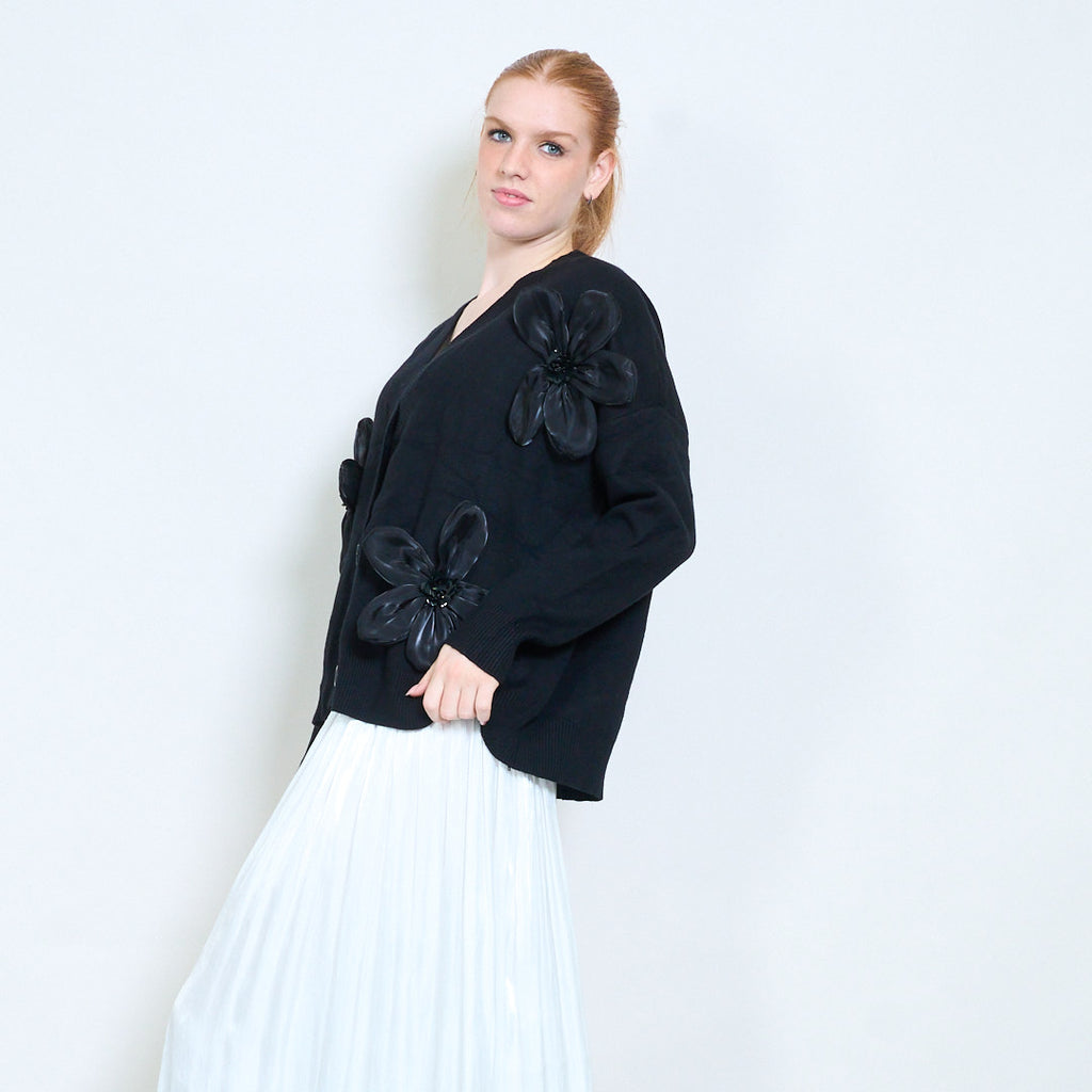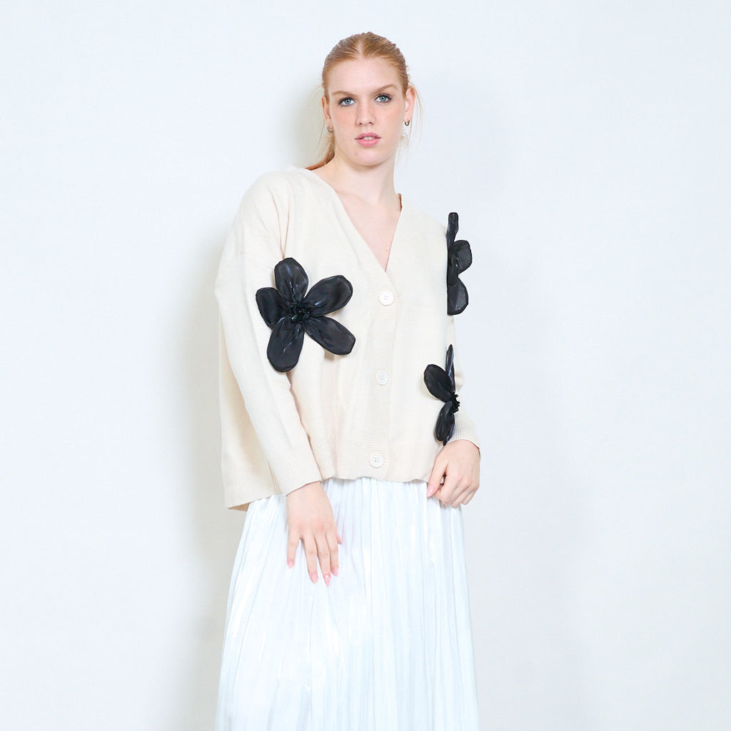 Strickjacke mit Blumenapplikation und Knöpfen und V-Ausschnitt im Großhandel