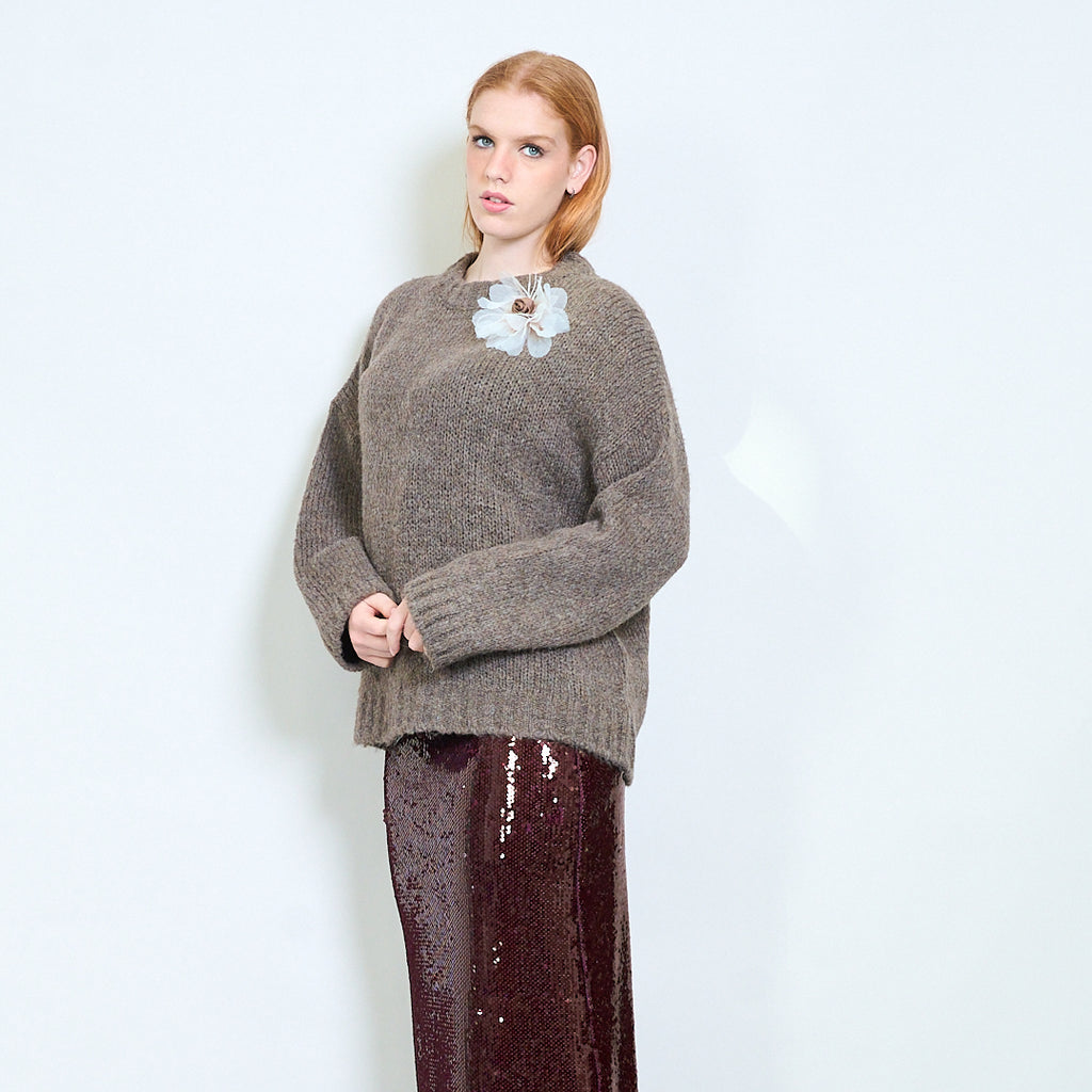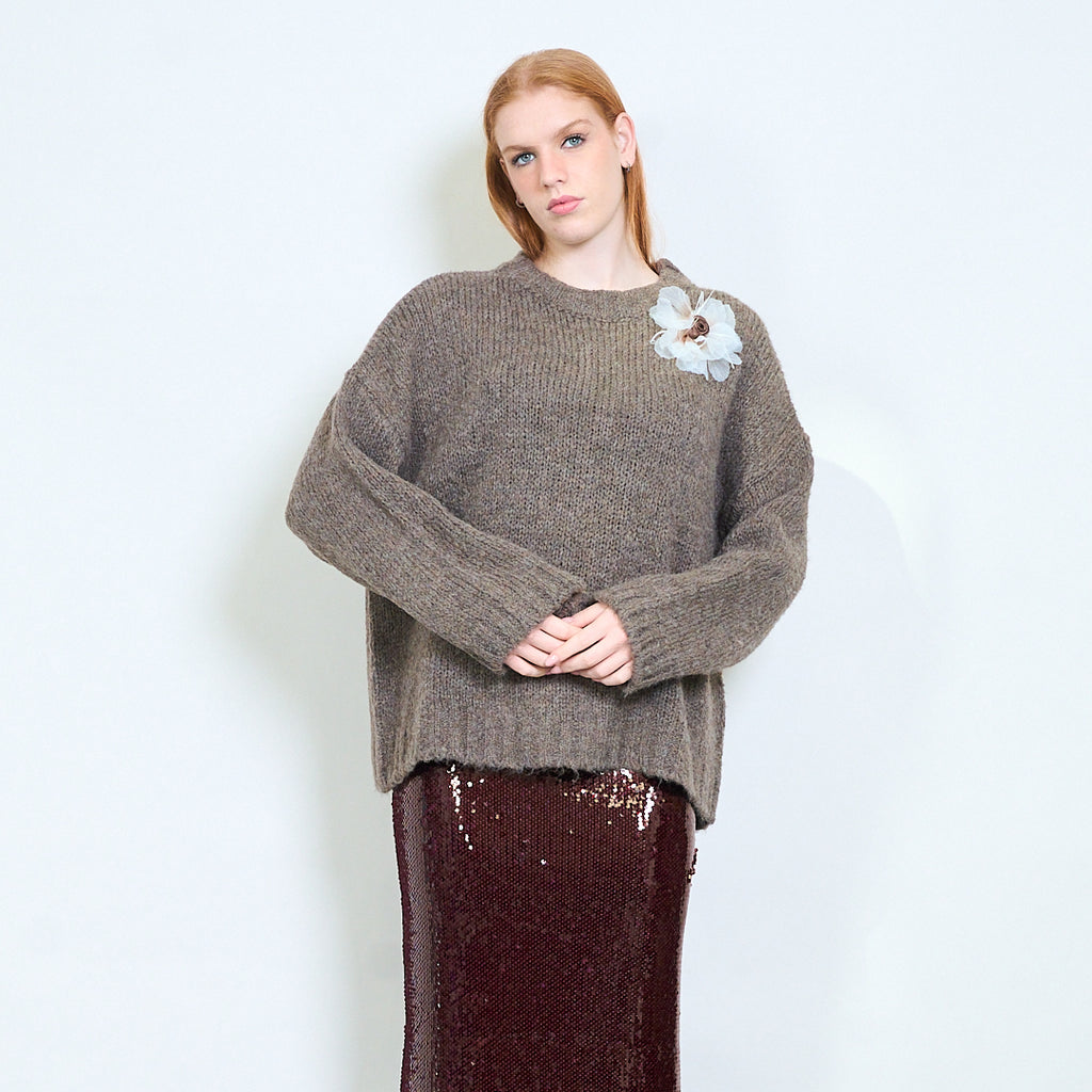 Weicher Strickpullover mit Blumenapplikation im Großhandel