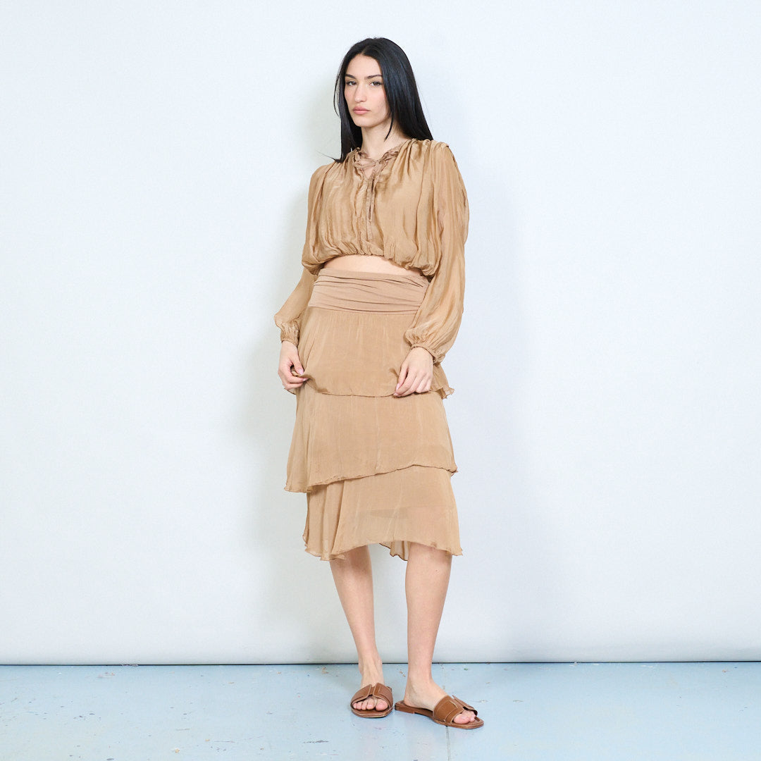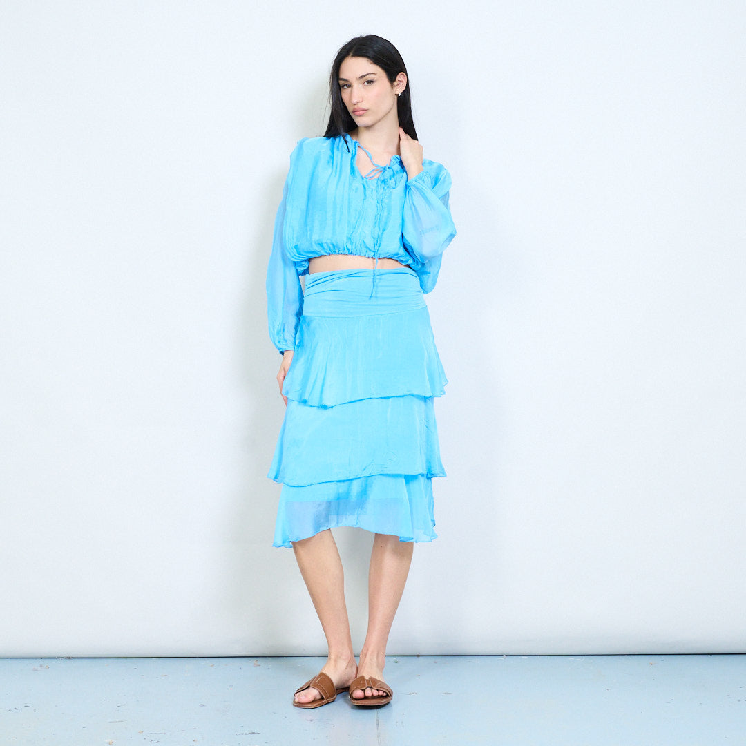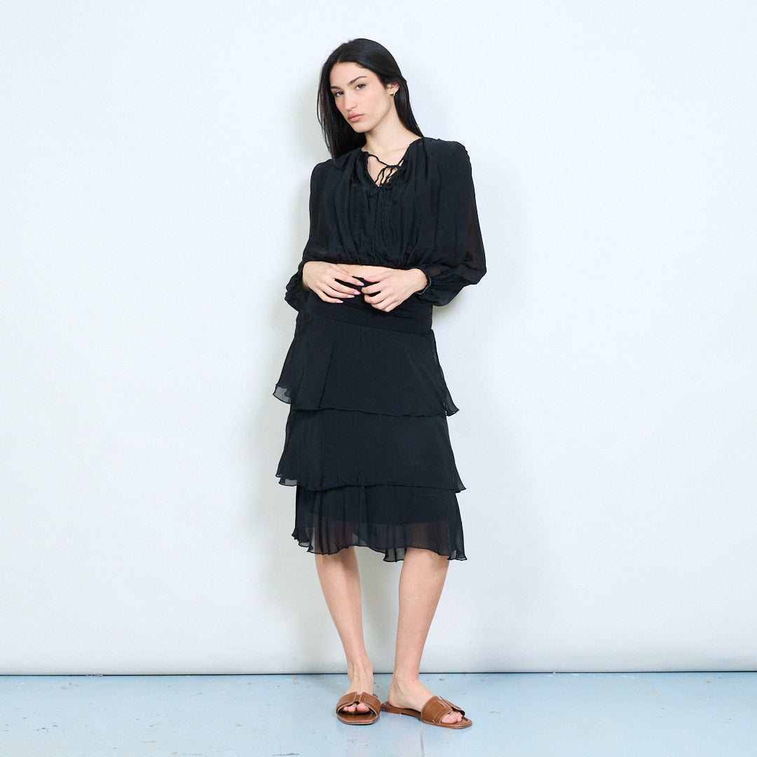 - Abgestuftes Saumdetail sorgt für Volumen und Eleganz