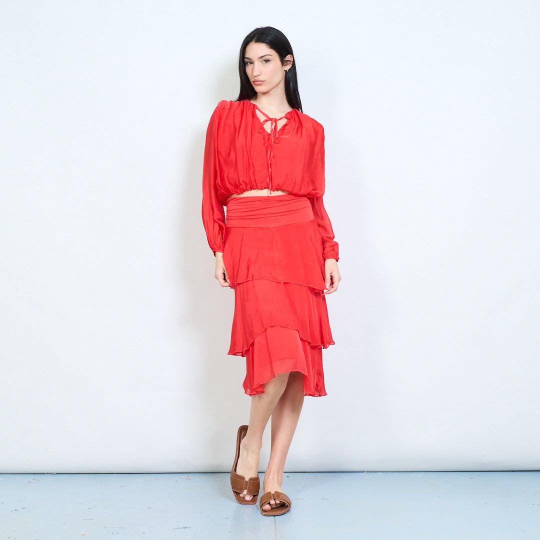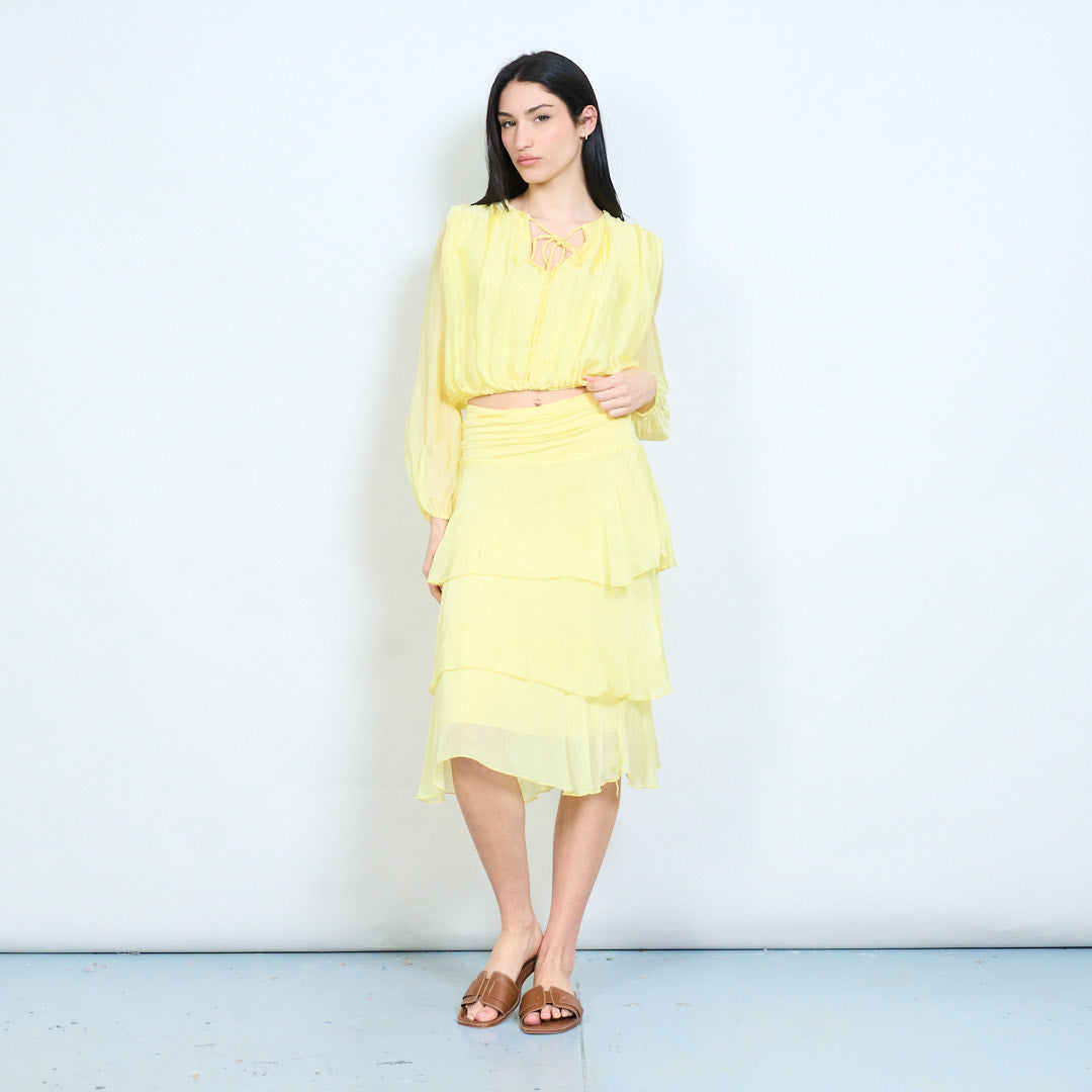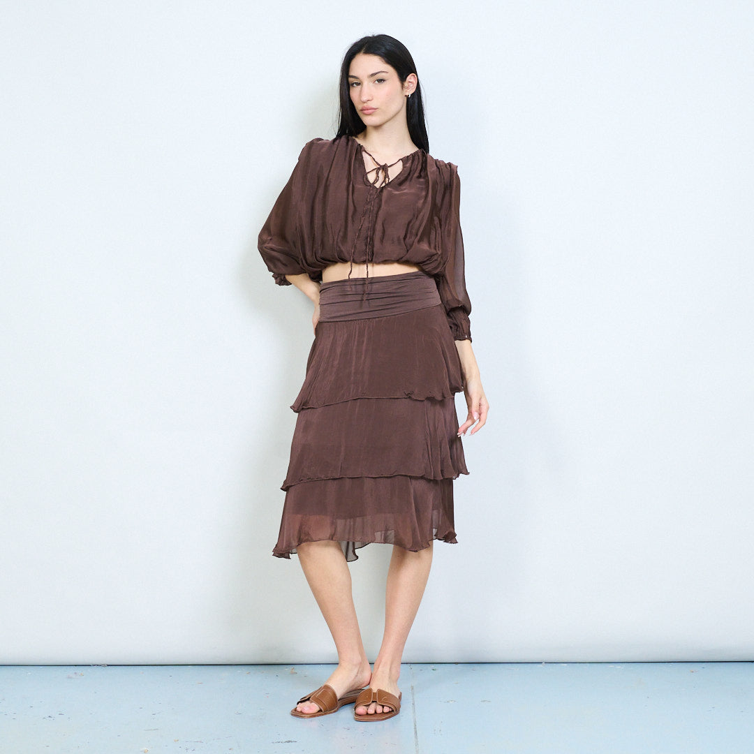 - Abgestuftes Saumdetail sorgt für Volumen und Eleganz