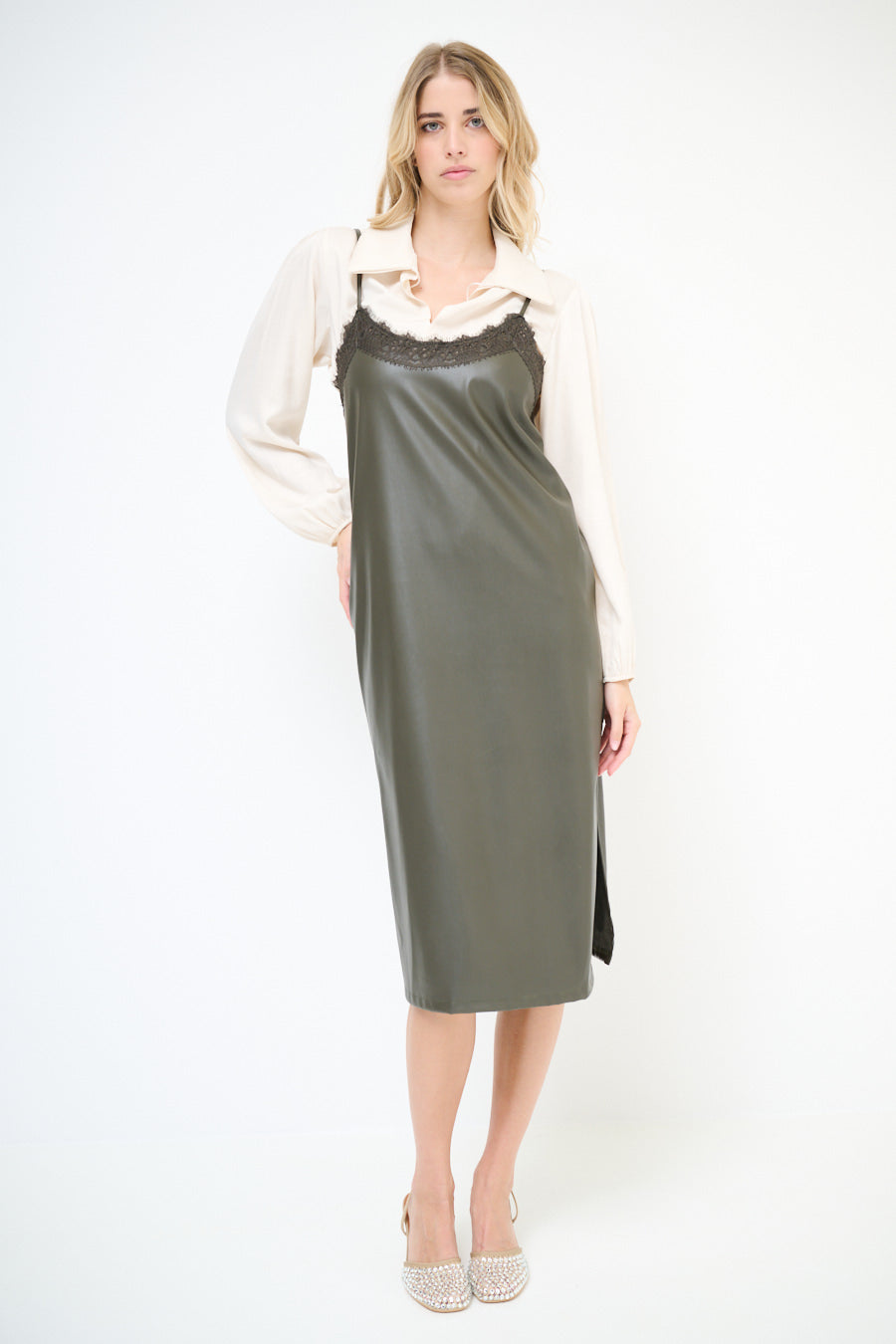 Slip-Midikleid aus Satin mit Spitzenbesatz im Großhandel
