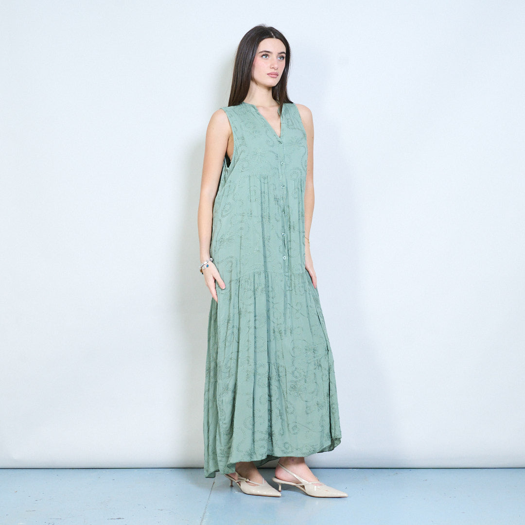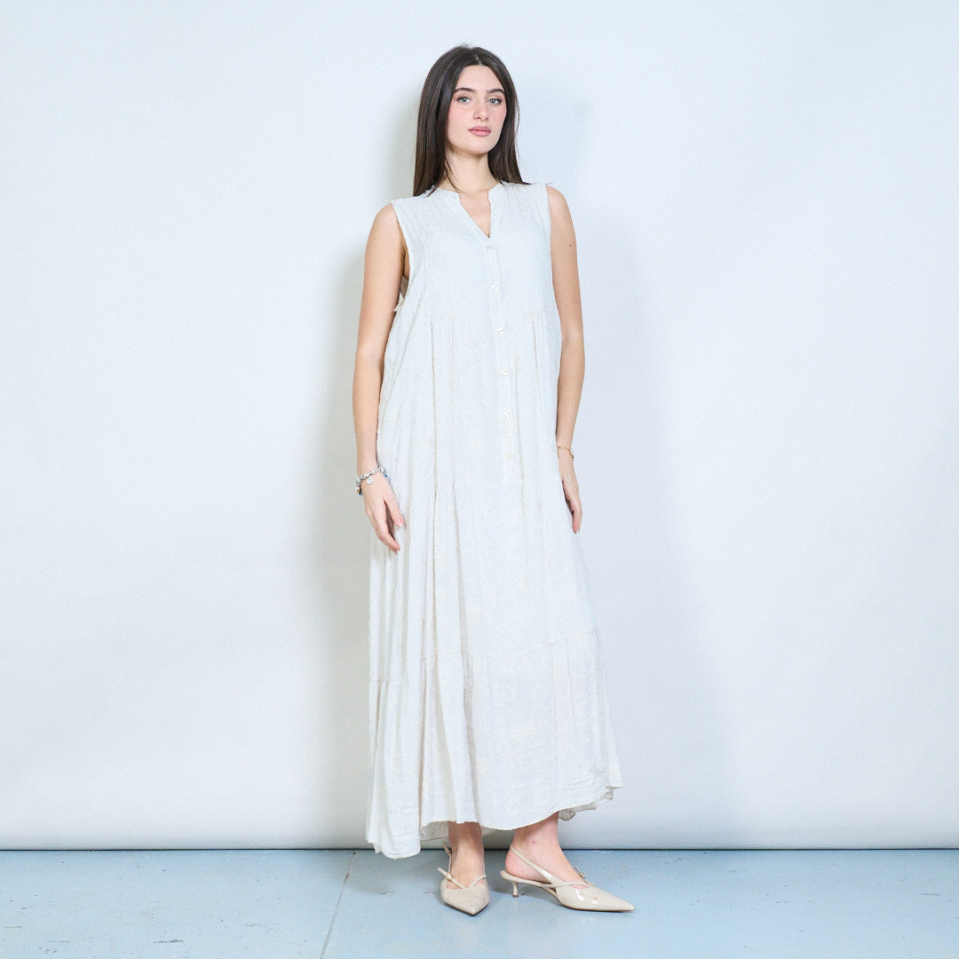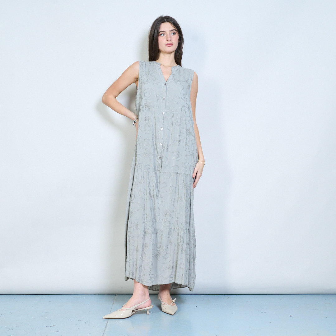 Ärmelloses Midikleid mit bestickter Knopfleiste vorne im Großhandel