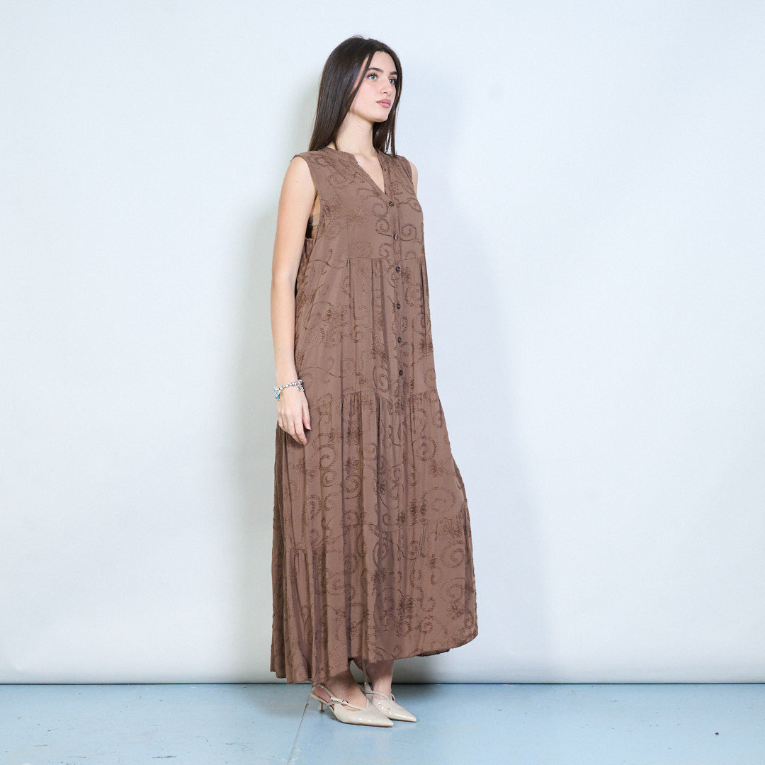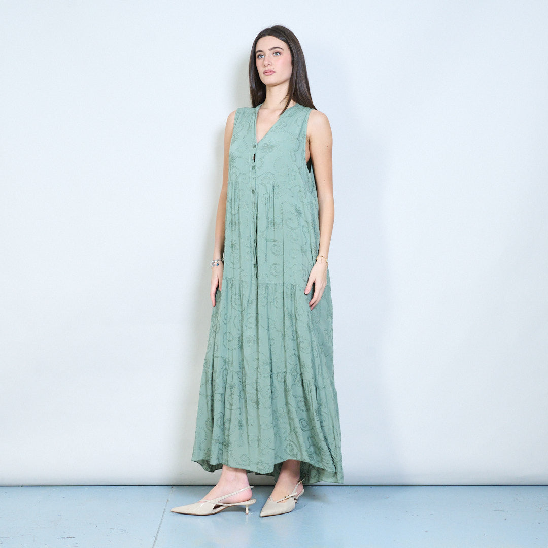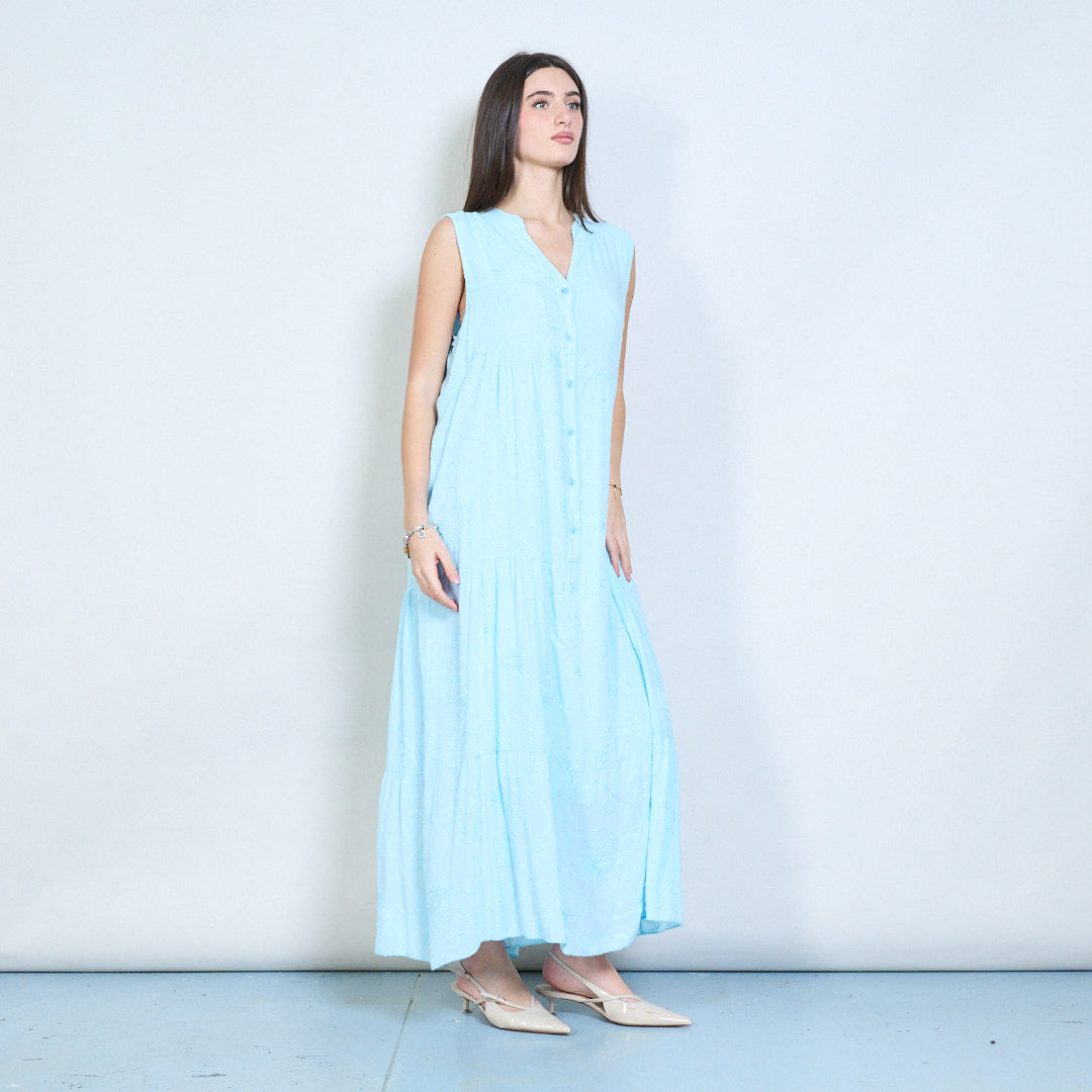 Ärmelloses Midikleid mit bestickter Knopfleiste vorne im Großhandel