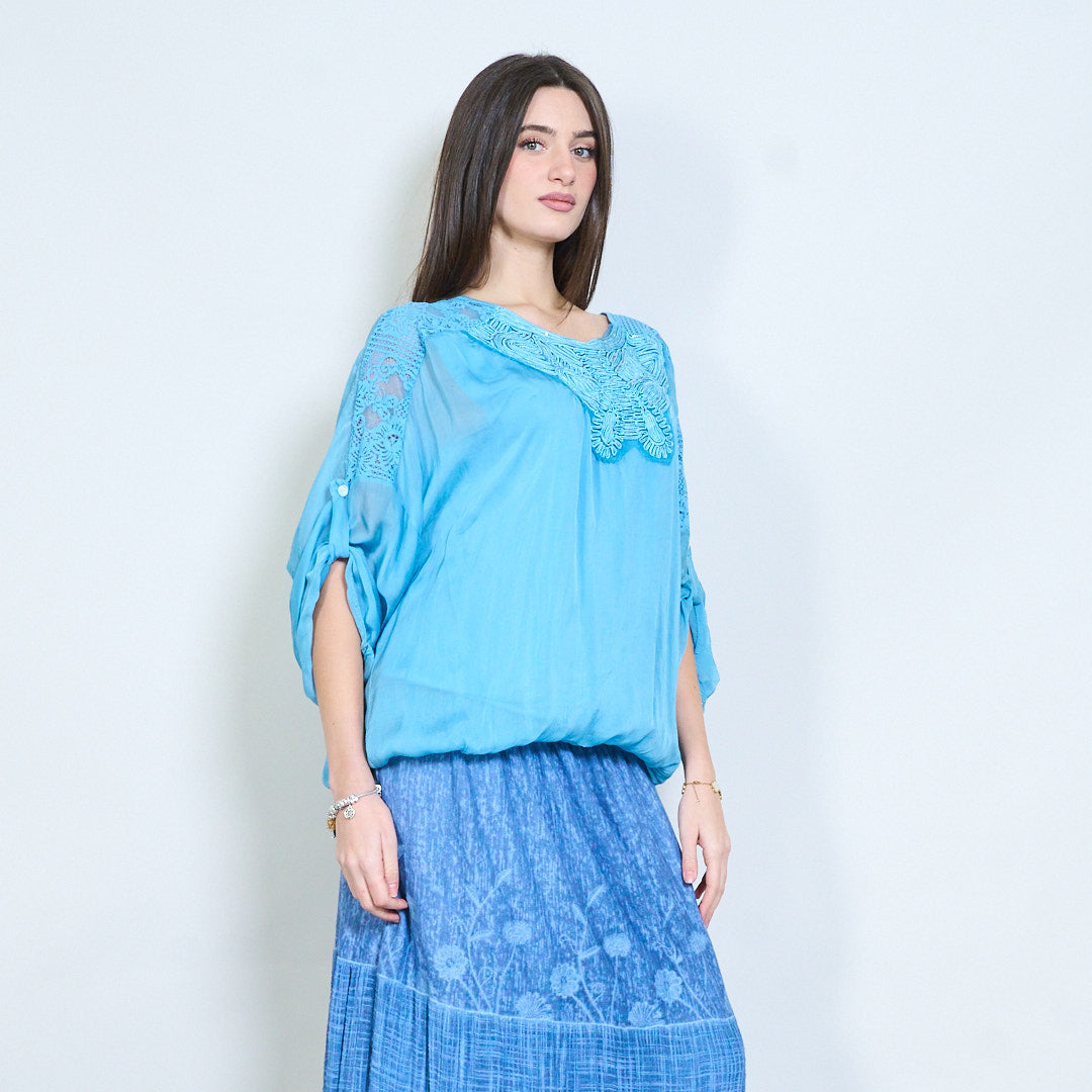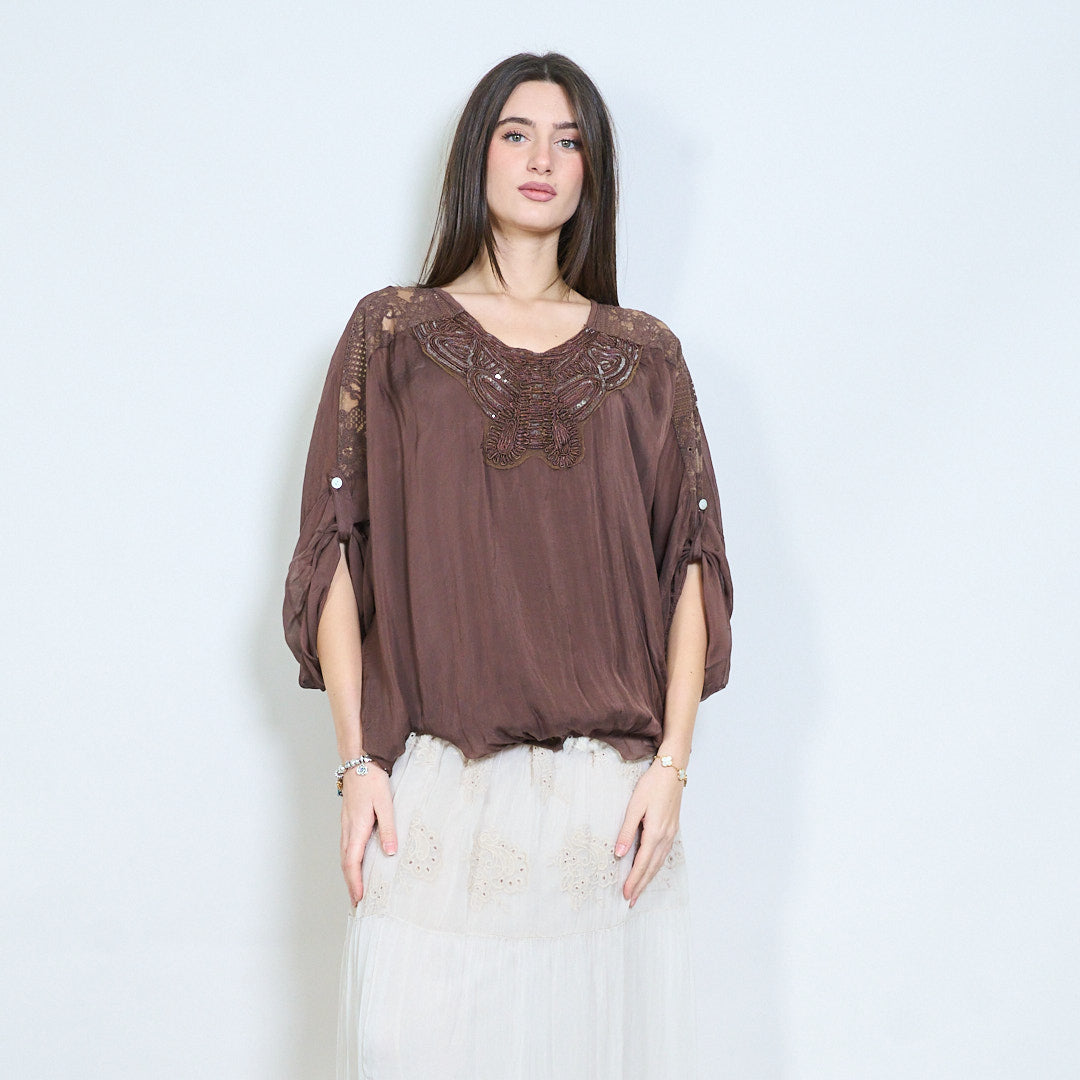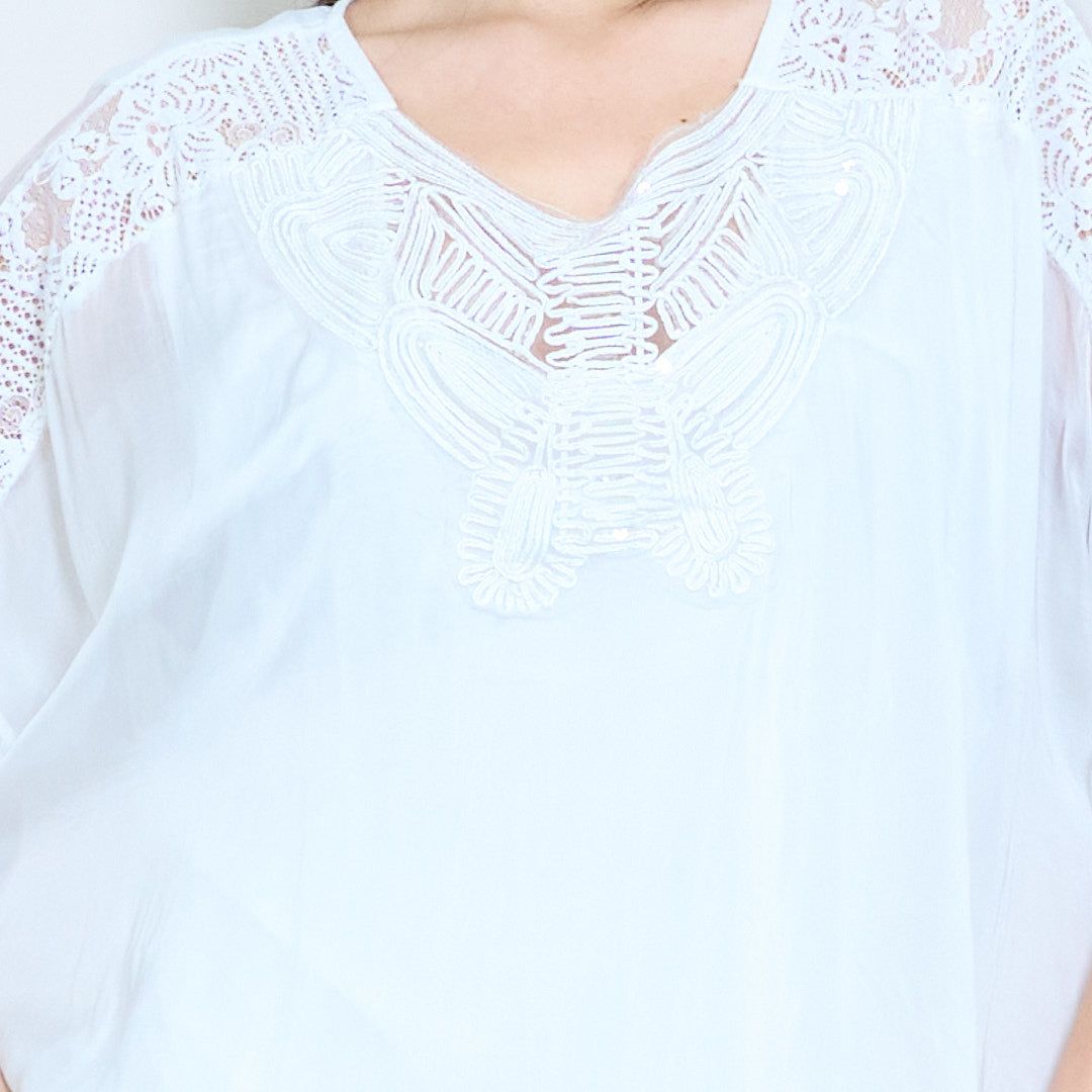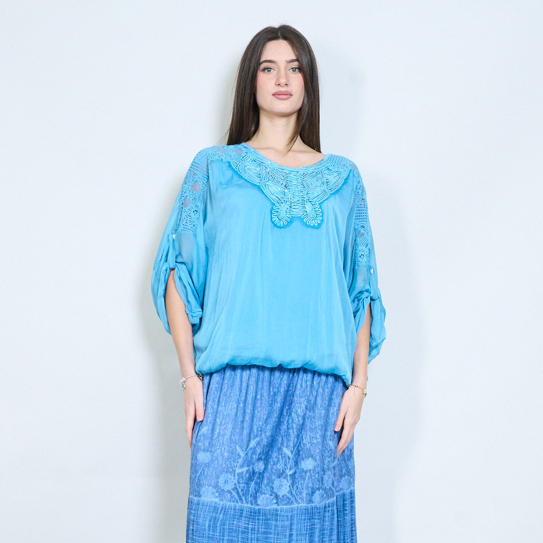 Langarmbluse mit bestickter Schmetterlings-Spitzenpasse im Großhandel