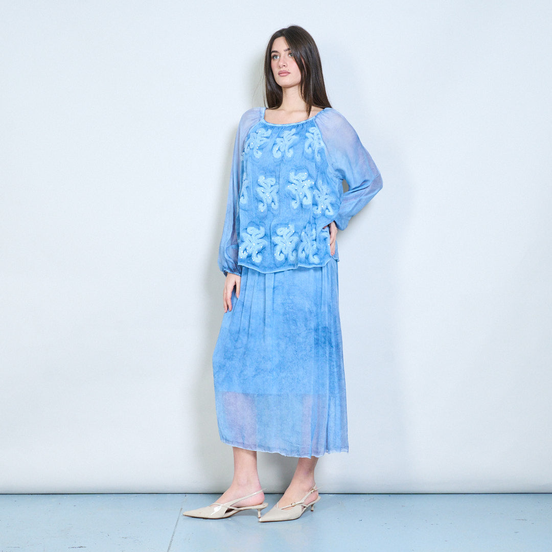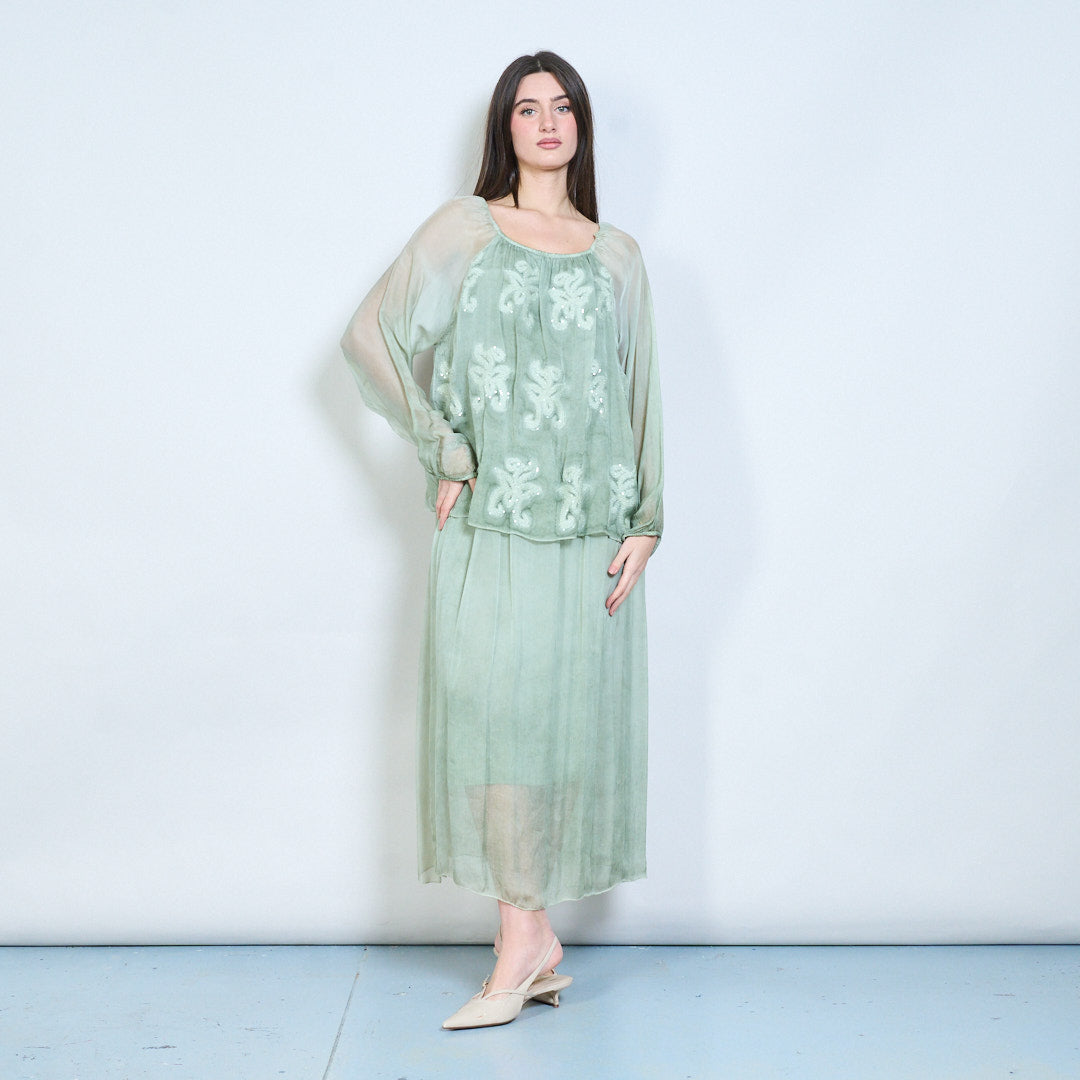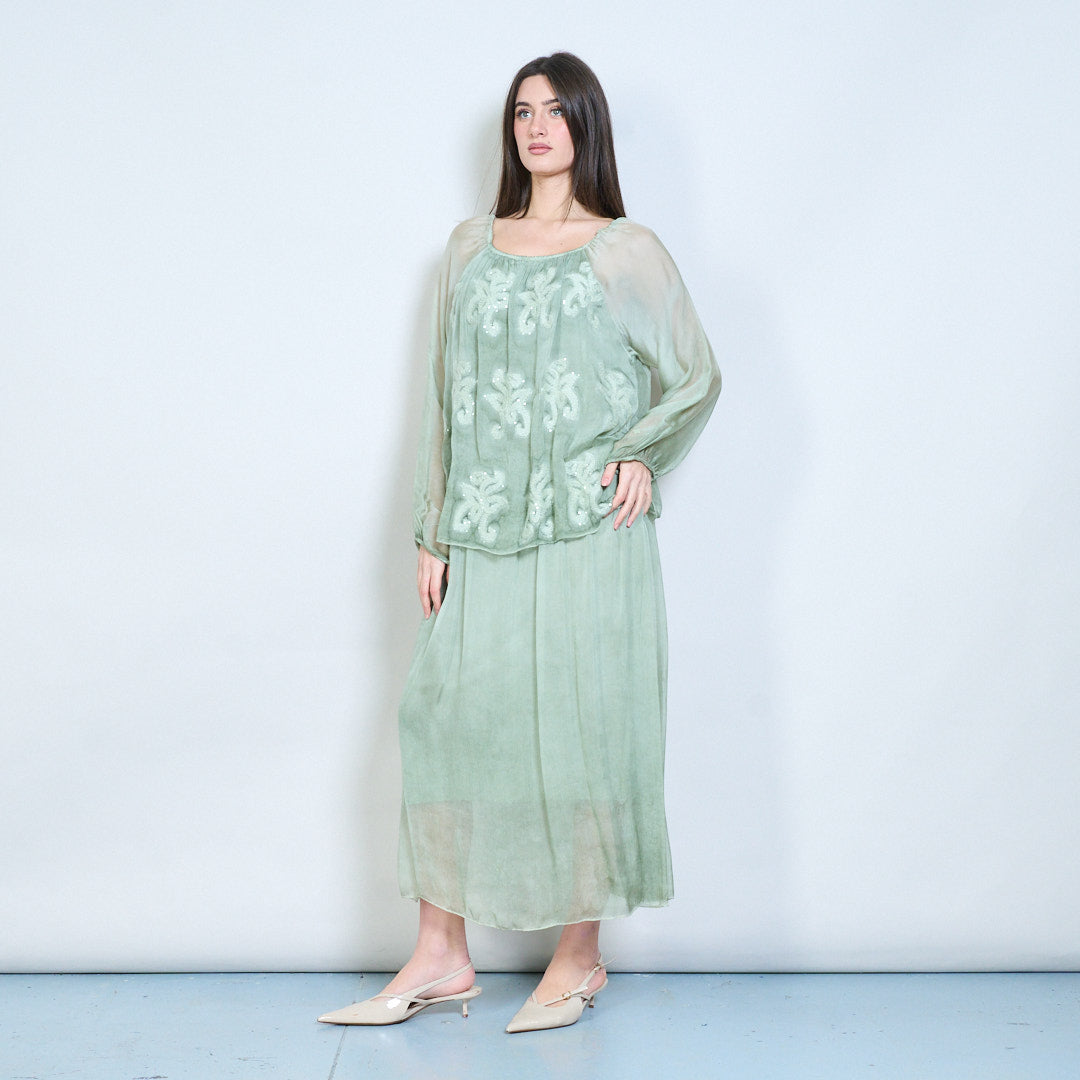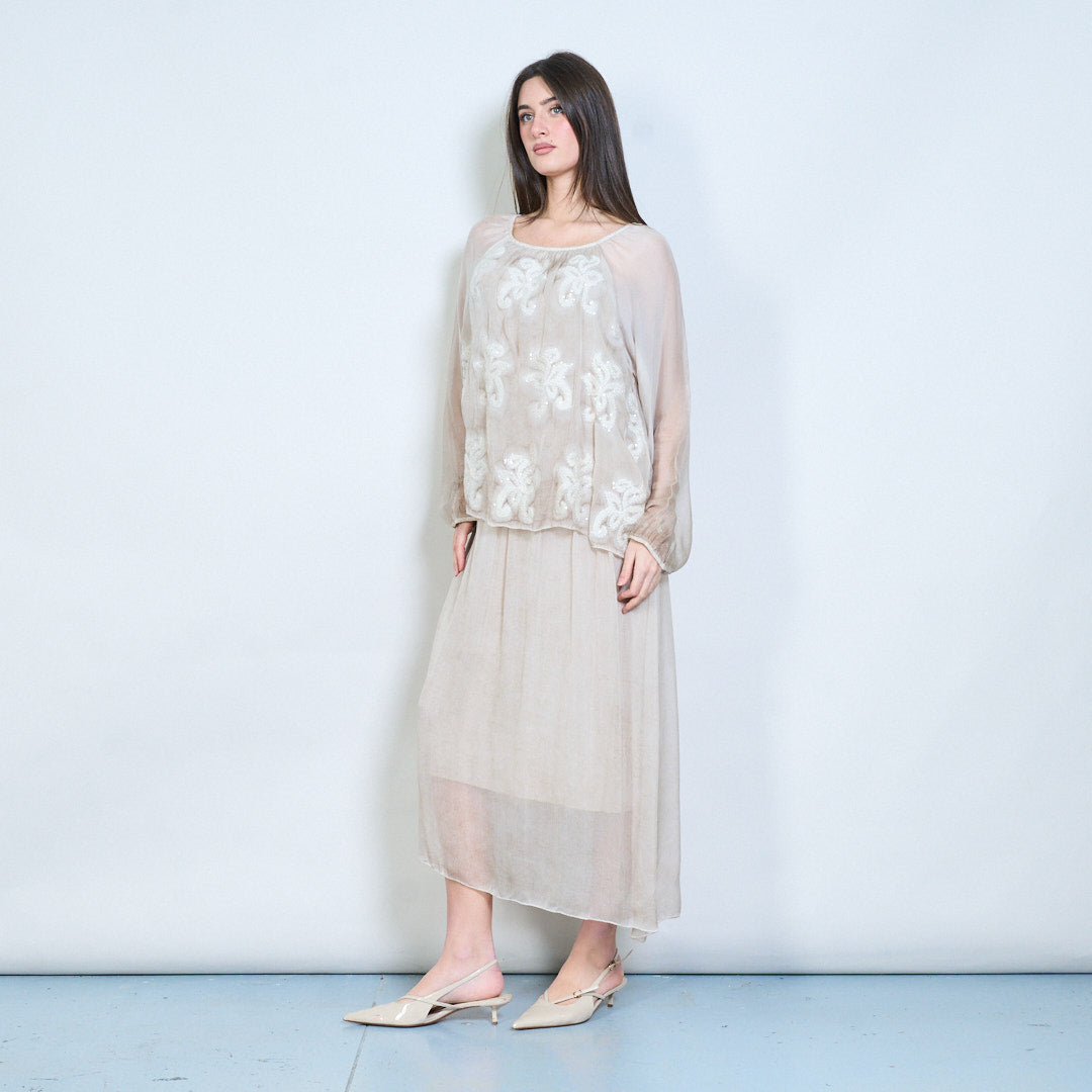 Midikleid mit besticktem mehrlagigem Oberteil und transparenten Ärmeln im Großhandel