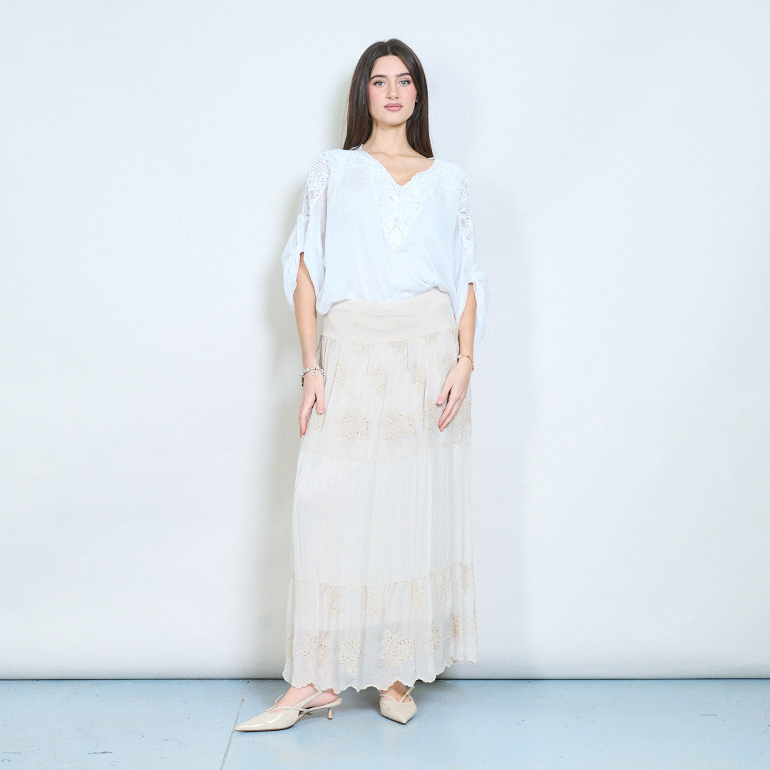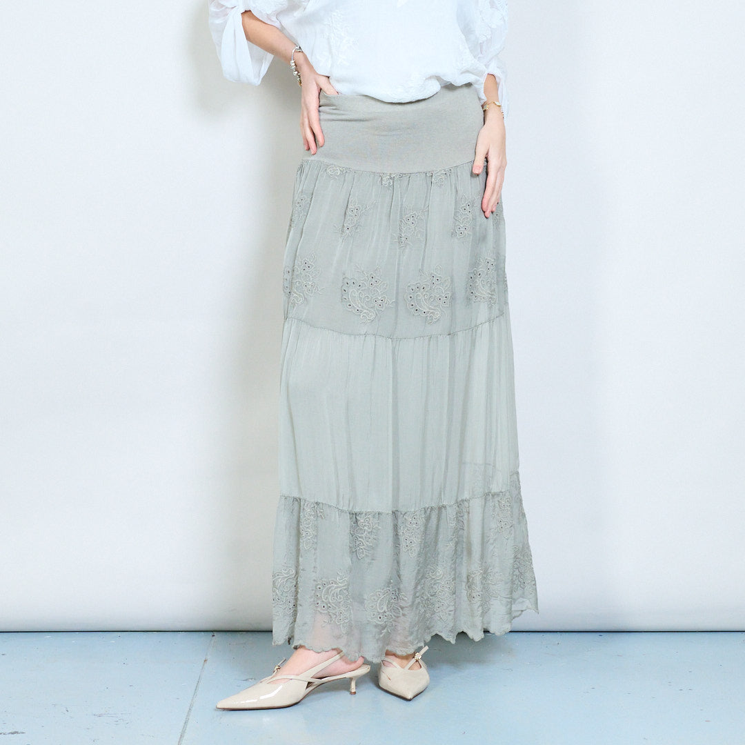 - Gestickte Details verstärken die Textur mit einem zarten Finish