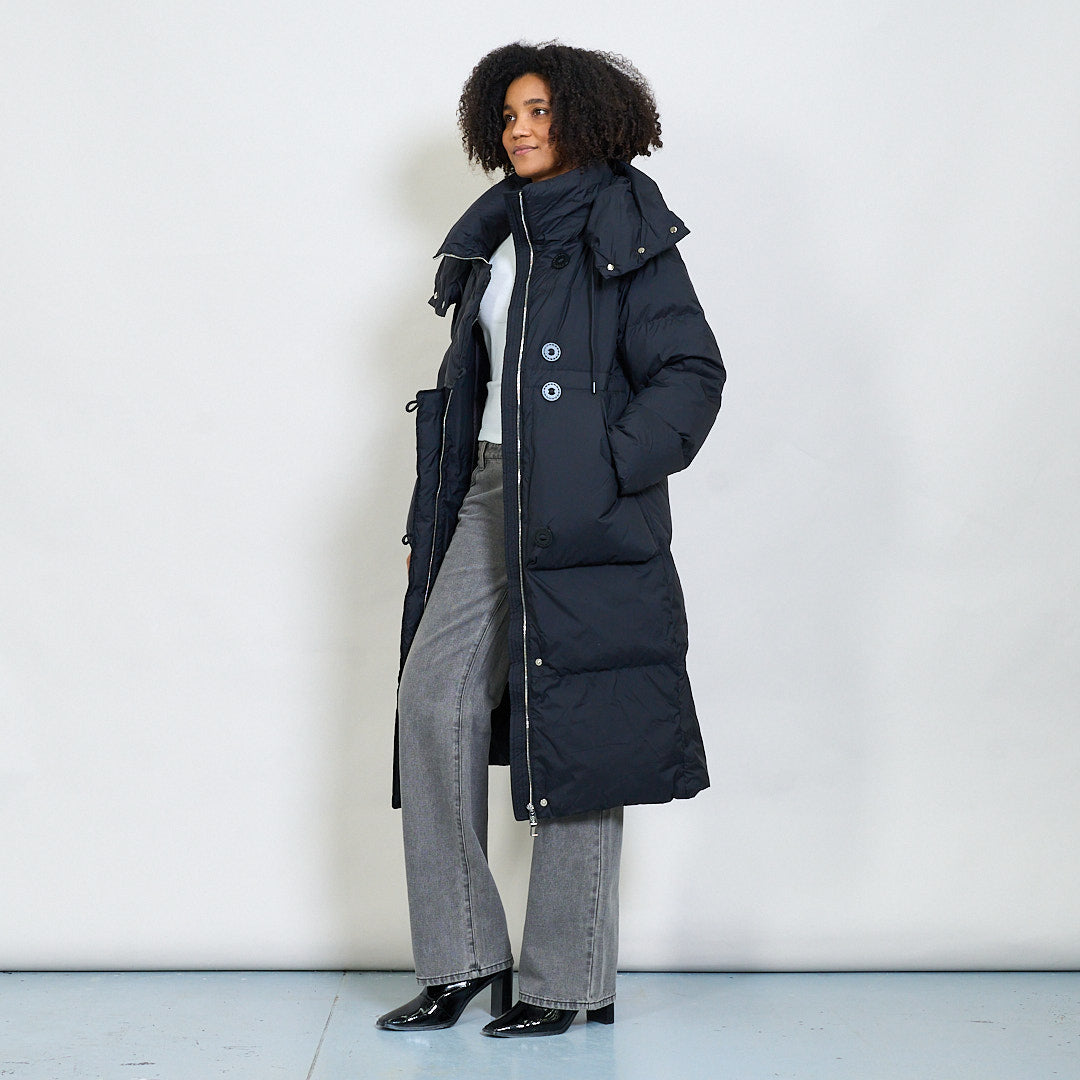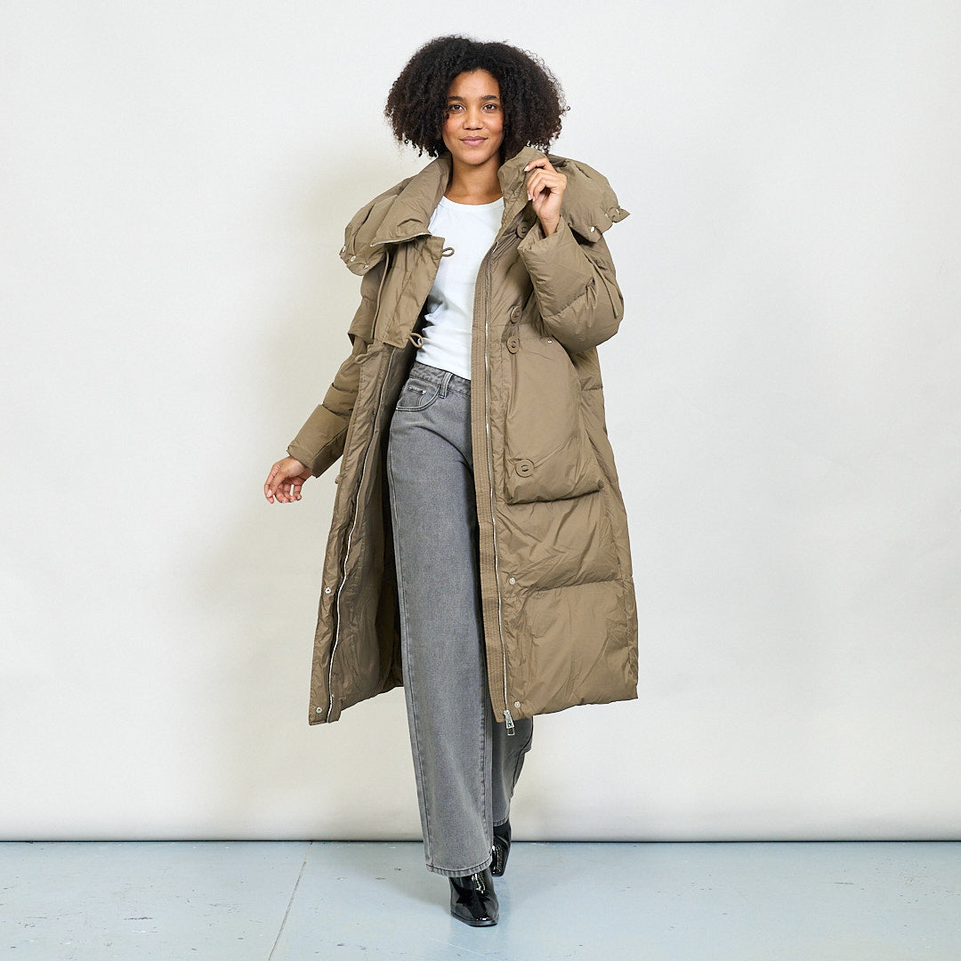 - Langer gepolsterter Mantel mit übergroßem Kragen