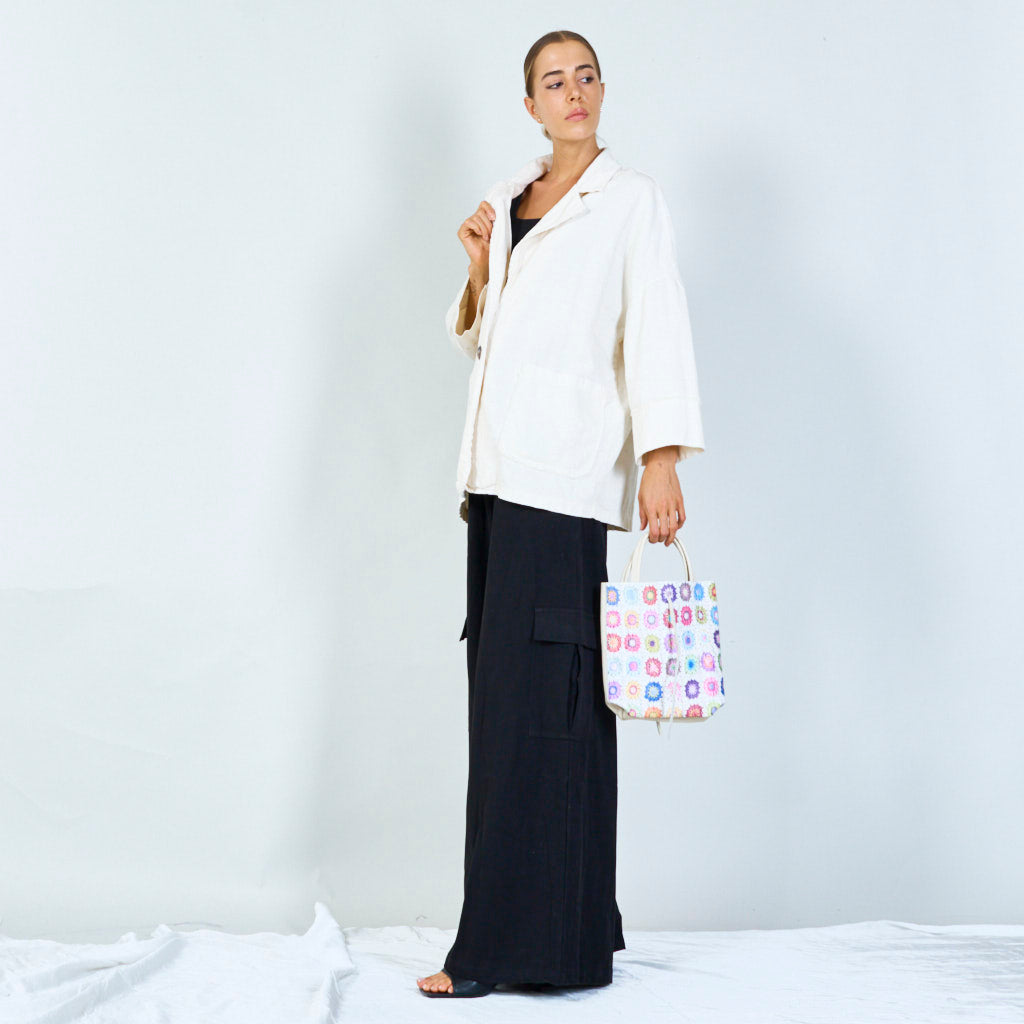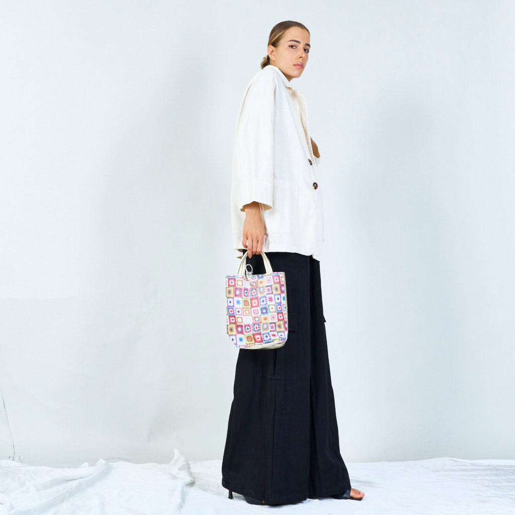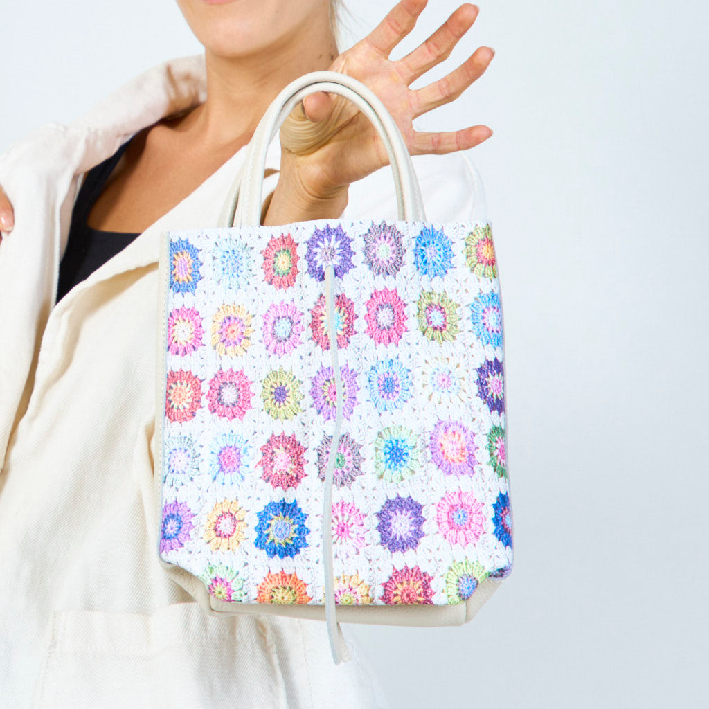 Bunte Häkelmuster -Einkaufstaschen mit metallischen Griffen Großhandel