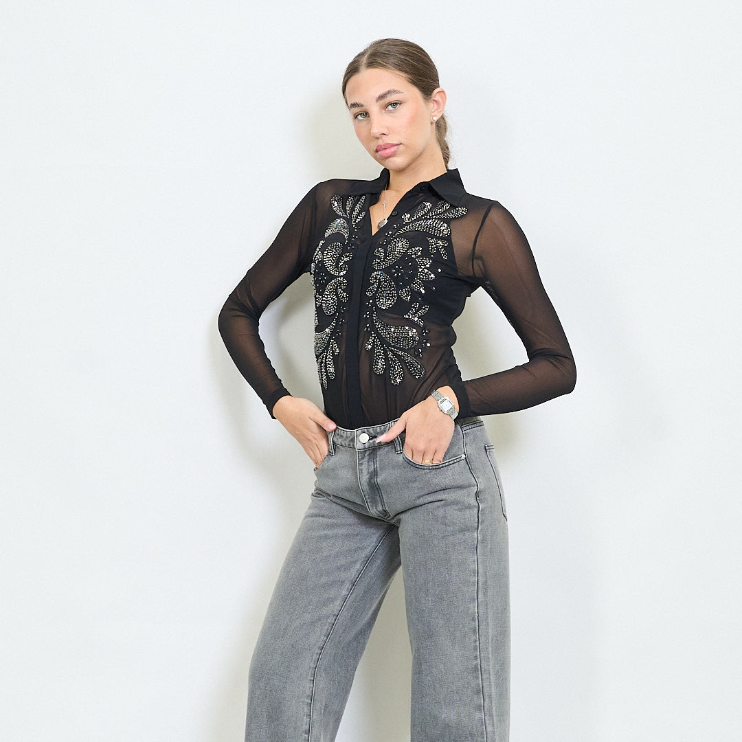 - Transparenter Netzstoff mit strukturiertem Hemdkragen