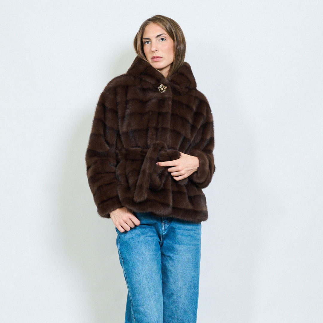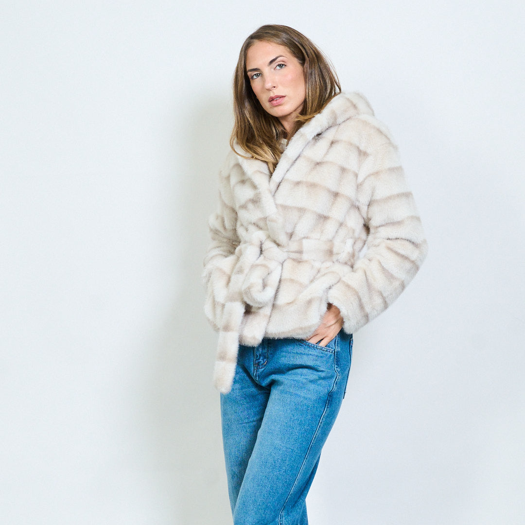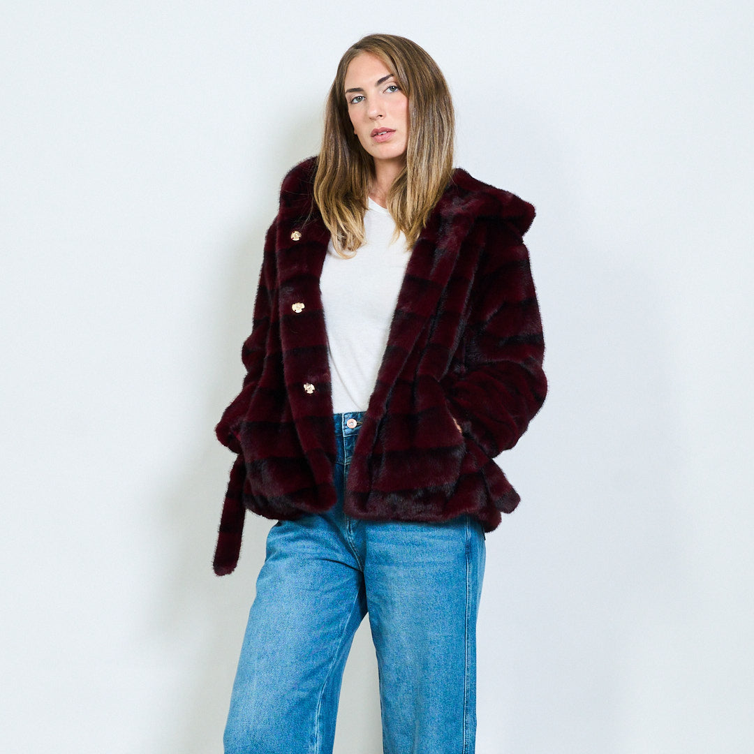 Gestreifte Kunstpelzschicht mit Kristallverschluss im Großhandel