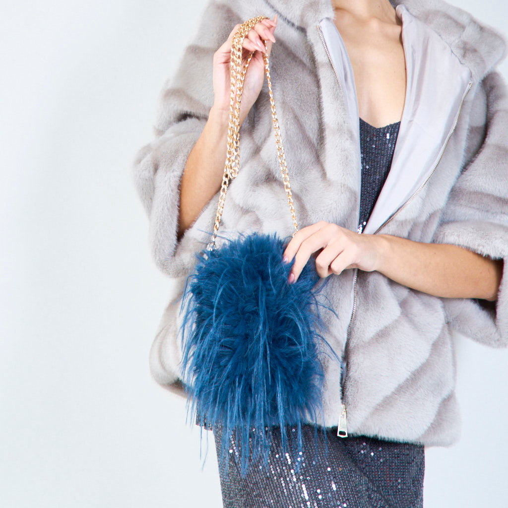 Kunstfell Mini -Crossbody -Taschen mit Kettengroßhandel