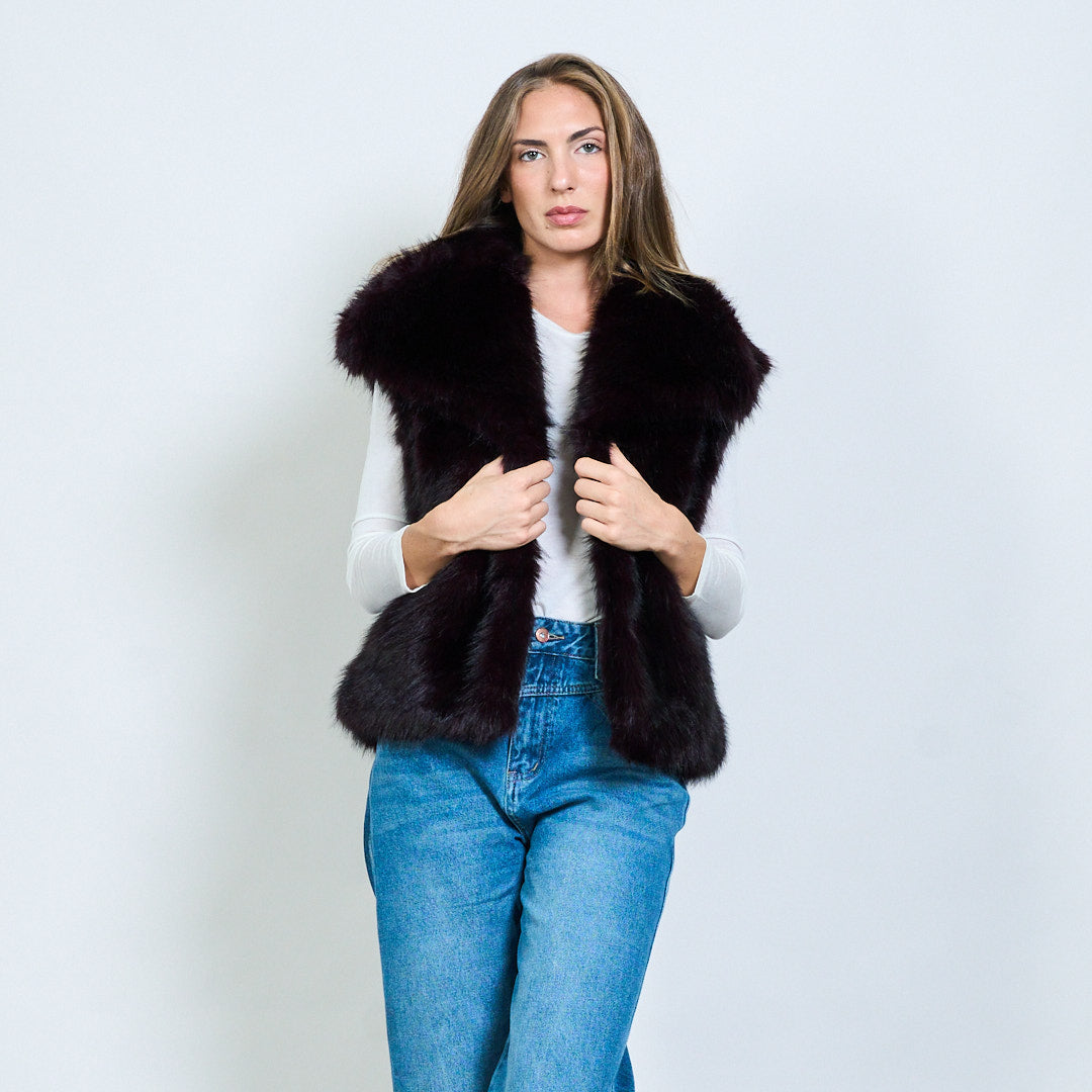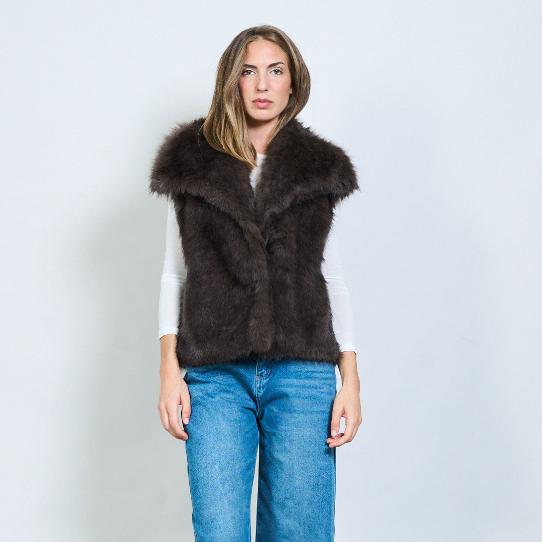 Langes Haar für Kunstpelzweste mit breitem Lappelkragen Großhandel