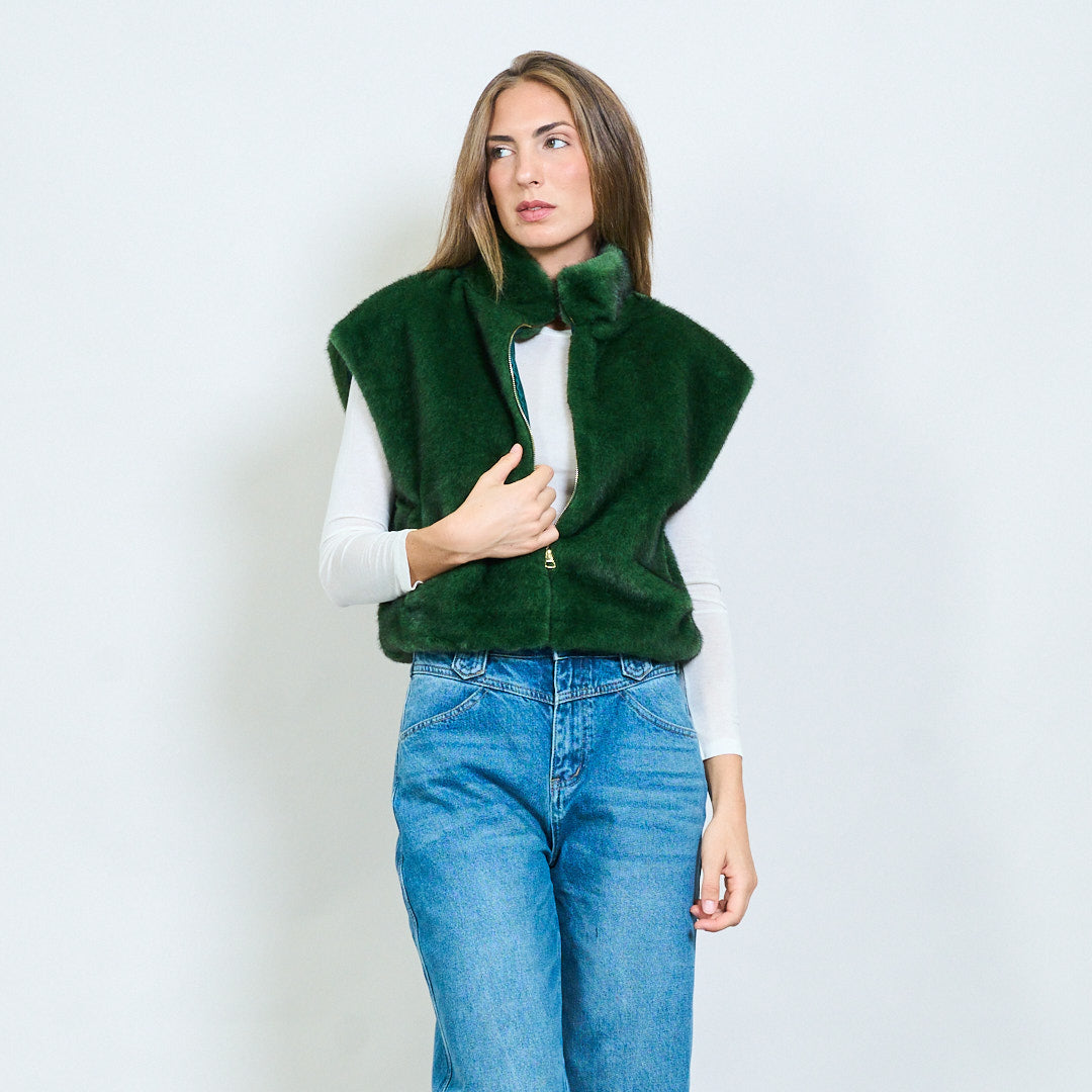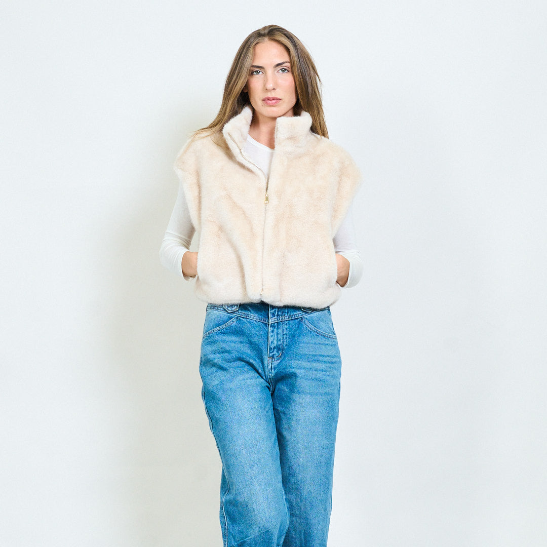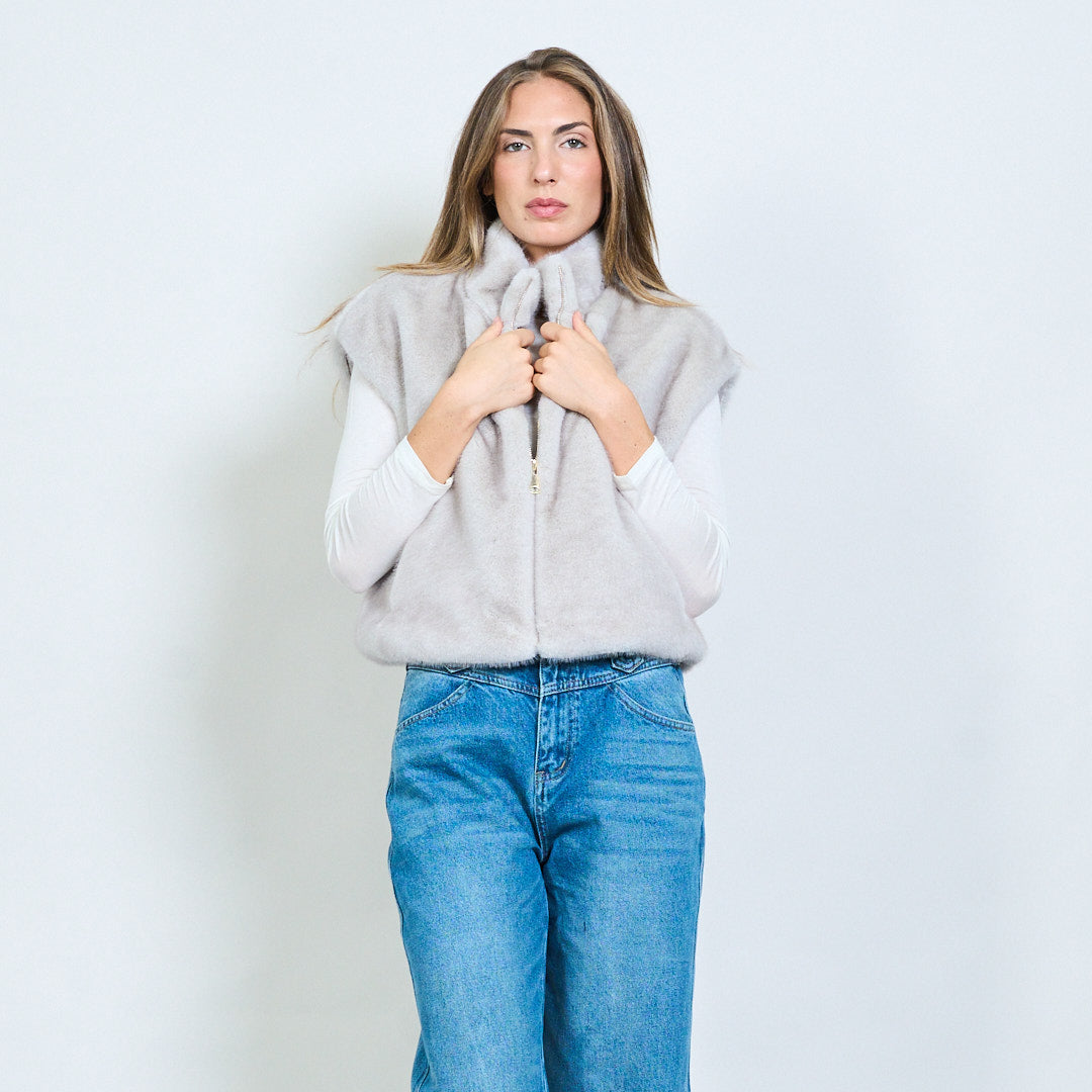 Minimalistische Kunstpelzweste mit gepolstertem Ständerkragen Großhandel